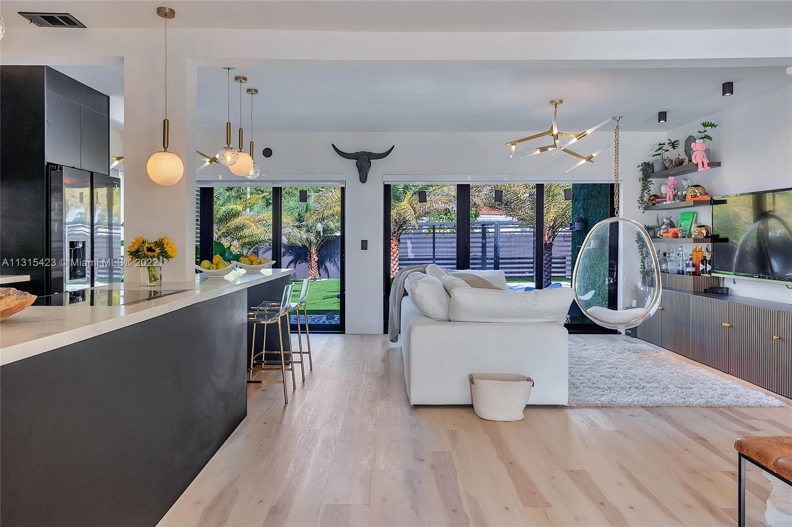 Rarely available a breathtaking renovated beauty. Clever design that truly maximizes this bright sophisticated cheerful space. No expense spared. Open floor plan. Gentle tones with striking accents. Kitchen reflects class and elegance. Living area spacious overlooking a dreamy backyard. Lovely primary suite. 4 th bedroom is perfect for in-laws quarters inclusive with private entrance and kitchenette. Move in and enjoy your home right away. Exterior lighting that accents the beauty and beyond of this custom home. 2 golf courses/la gorge country club. 1.1 miles from the beach. .2 miles to house of worship. Shops restaurants Like to travel. Port of Miami,airport. All at your fingertips. Fully mitigated and will receive all discounts for insurance. (Furnished)