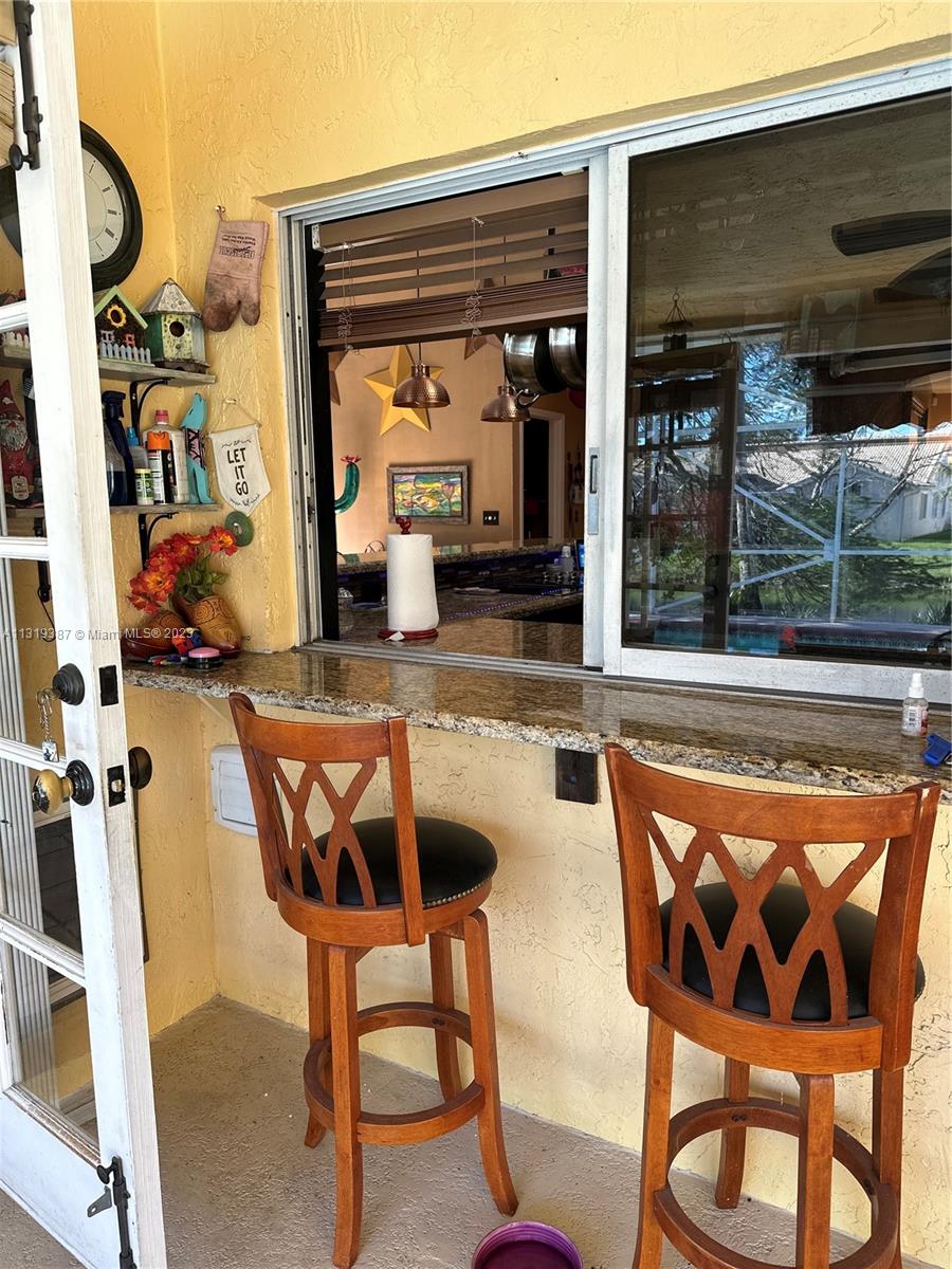 JACARANDA LAKES WATERFRONT WITH POOL. Breathtaking entrance revealing vaulted ceilings and six sets of French doors The lanai screen cage is extra-reinforced above hurricane guidelines. Clay/stone tile and wood floors throughout, Modern-rustic theme, Gigantic kitchen with updated granite counter tops stainless appliances. New bathrooms. Master bath is slamming with textured tile and shimmering copper tub! New roof 2007. Pool resurfaced in 2005. A/C 2013 Hurricane shutters, hurricane-rated garage door/skylight. Wide hallways, wide and generous bathroom space. Dual closets in master bedroom. PLENTY of storage. Home completely wired from the ceiling for all of your A/V needs, high quality professional speakers subwoofers in the ceiling of most rooms and patio. NO RENTAL RESTRICTIONS!