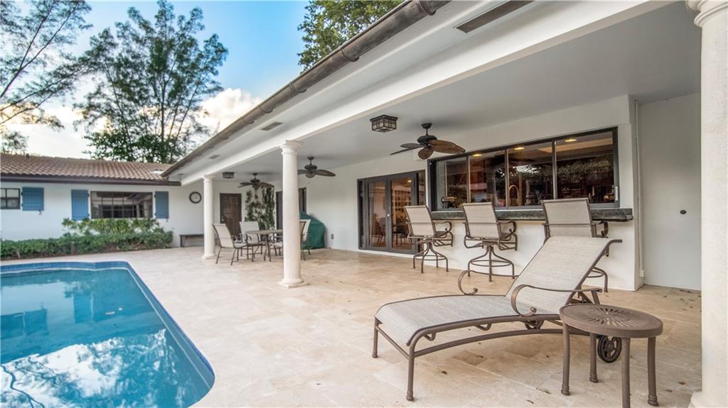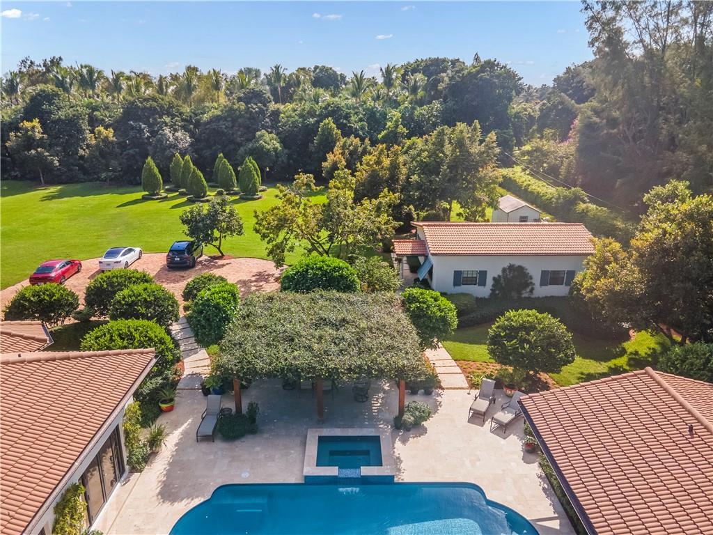 Elegant Mediterranean exterior ties in historic European Architecture with timeless style and charm. Expansive 3.67 acres of manicured & lighted landscape with pool, jacuzzi & hurricane rated pergola make this estate an entertaining paradise. 2 bedroom guest house boasts new Roof, Impact windows & upgraded electrical. Main House features West wing dedicated to 3 bedrooms, bath & a second master ensuite for maid/Nanny. East wing hosts the Master with attached sitting room/gym & Private stairs to dual office w/wet bar & patio. Ample room for entertaining with formal living, dining rooms & family room with fireplace off the eat in kitchen. Chef's dream kitchen w/Viking appliances, 2 Sub Zero refrigerators & 3 ovens. Complete house generator, Exquisite neighborhood, A+ Schools & much more!