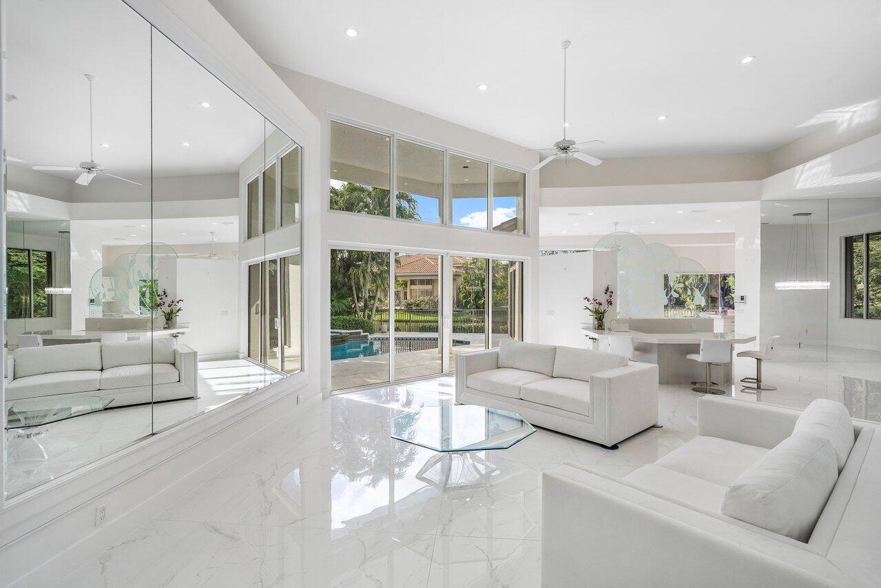 Stunning upgraded lakefront home, with soaring ceilings and floor-to-ceiling windows. The bright open floor plan, with beautiful views of the pool and lake, make this home perfect for entertaining or enjoying the Florida lifestyle. This large modern home features 4 bd/4br and an office. This neighborhood boasts meticulously manicured landscaping, oversized lakes, first-class amenities and 24-hour-maned guard gate.
