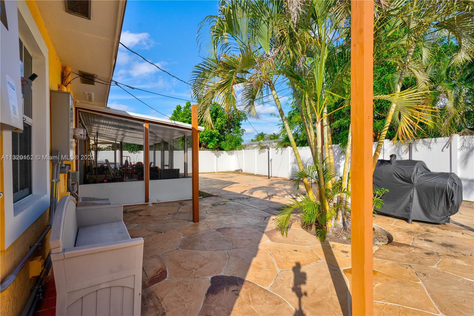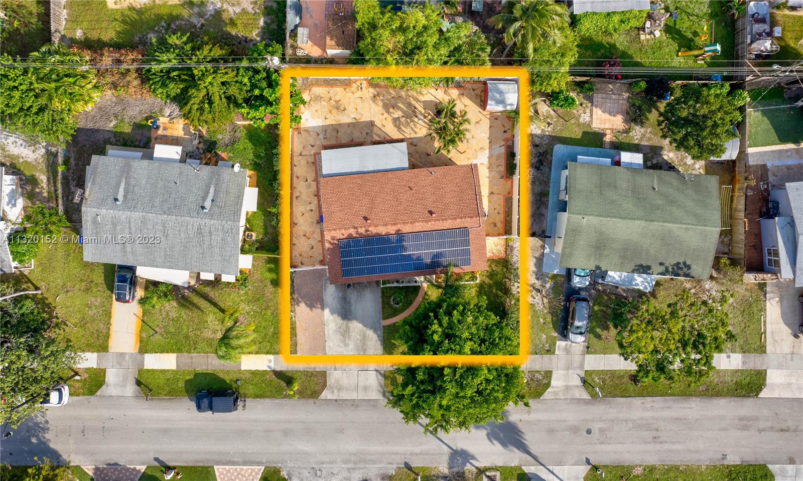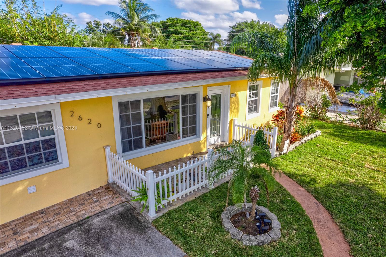 *True Sq Ft is 1,117 per Appraisal* Beautiful Completely remodeled home centrally located. All tiled with wood floor design in master bedroom. Crown molding. Newer kitchen with granite counter tops. Newer top of the line stainless steel appliances. All windows and doors are Hurricane Impact, remodeled bathrooms w/ marble & double sink in the master bathroom, flat ceiling w/ adjustable lighting. Roof is 2020. AC is 09/21. Tiled & screened in porch, great for entertaining. Remodeled front porch w/ tile. Fenced patio w/ designed floor and brand new electic gated entrance. Plenty of parking space on side and back of house for cars, boat/RV. *Solar panels w/ full battery back up included, will be paid in full at close of escrow. Check attachments for list of upgrades.
