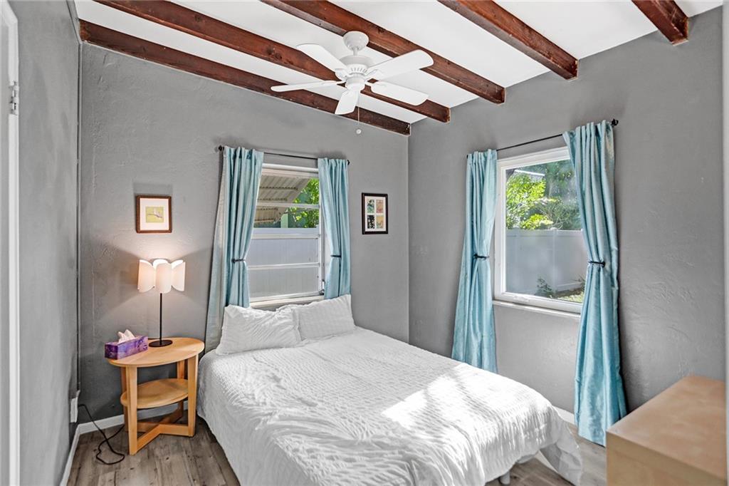Loaded with character this Mid-Century Shady Banks home offers vaulted exposed beam ceilings, large kitchen with real wood cabinets, fireplace, sunny dining area overlooking the backyard. 2 bed 1 bath plus a large unfinished bonus room could be a 3rd bed with potential to add 2nd bath. Big front and backyard, fully fenced, large shed/workshop with electric. Some windows are impact. AC 2015 Electric Panel 2016 Come explore this hidden gem of a neighborhood with mature oak tree canopies, 2 parks with volleyball tennis, walking paths and a nature preserve on the river - explore nature or drop a paddle board or kayak in. Conveniently located minutes to downtown, transportation, Las Olas and the beach. Tucked away with One way in-out and surrounded by the New River.