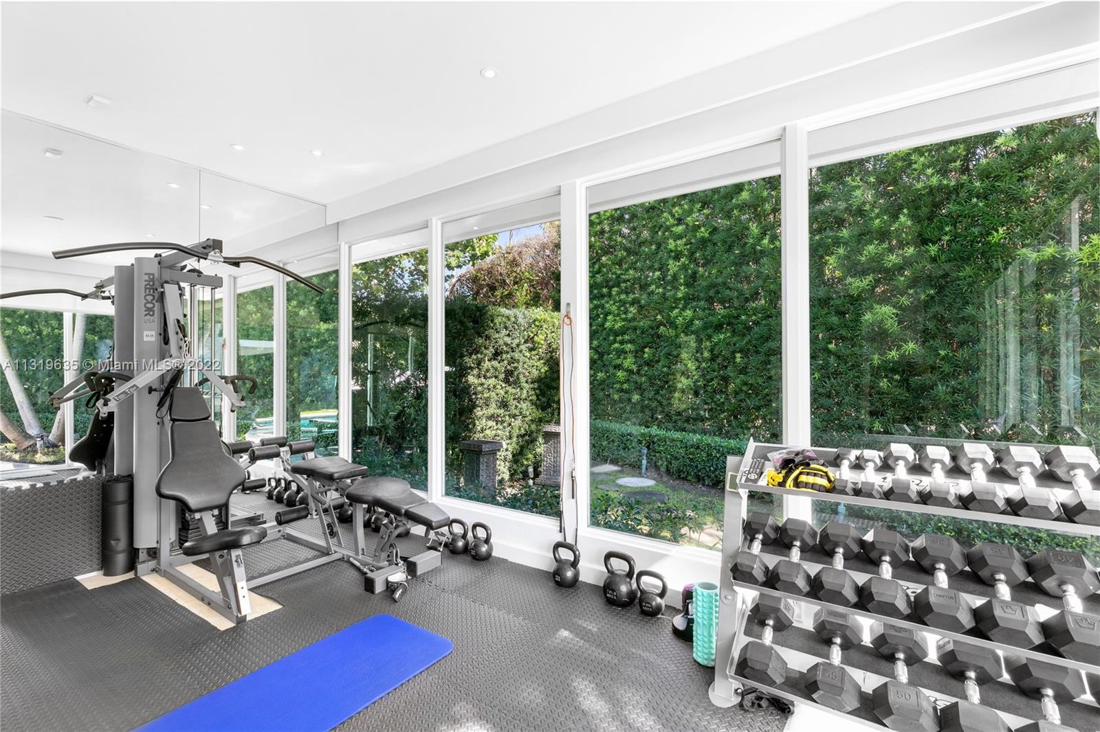Enjoy living on private, guard-gated La Gorce Island in this contemporary one-story home situated on an 11,979 square foot corner lot. This residence boasts 4 bedrooms, 4 bathrooms, 1 half bath, an open floorplan, 3,121 total interior square feet of living, light-filled living spaces with natural light pouring through floor-to-ceiling windows wrapping the living and dining rooms and a gym. The outdoors are perfect entertaining or enjoying your oasis with a heated saltwater pool with a spa, bbq, outdoor shower and a cabana overlooking the pool. The home is complete with a 2 car garage and maid’s quarters. Located in close proximity to the beach, world-class restaurants & all that Miami Beach has to offer.
