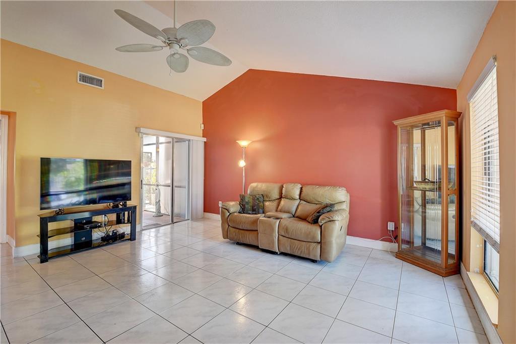 Reduced to sell!! Do not miss out! Charming extremely well maintained 2 bedrooms,2 bathrooms 1 car garage single family house. Spacious fenced in yard room for a pool. Oversized screened back porch with Jacuzzi in addition to a paved patio area. Located in a quiet & private area back-up to the lake & walking paths. Steps to the community pool, tennis courts & Basketball included in the HOA fees only $108.00 per month. NEW ROOF 2022. Tile & laminate flooring. Updated open kitchen, wood cabinets w/ self closed drawers. Tiled back splash. Stainless appliances. New Microwave & dishwasher. spacious master bedroom. A/C 2015. Water heater 2017. Washer & dryer in the garage. IMPACT ACCORDION SHUTTERS ON ALL WINDOWS. Great location minutes to HWYS, shopping & restaurants. Welcome Home! MUST SEE!