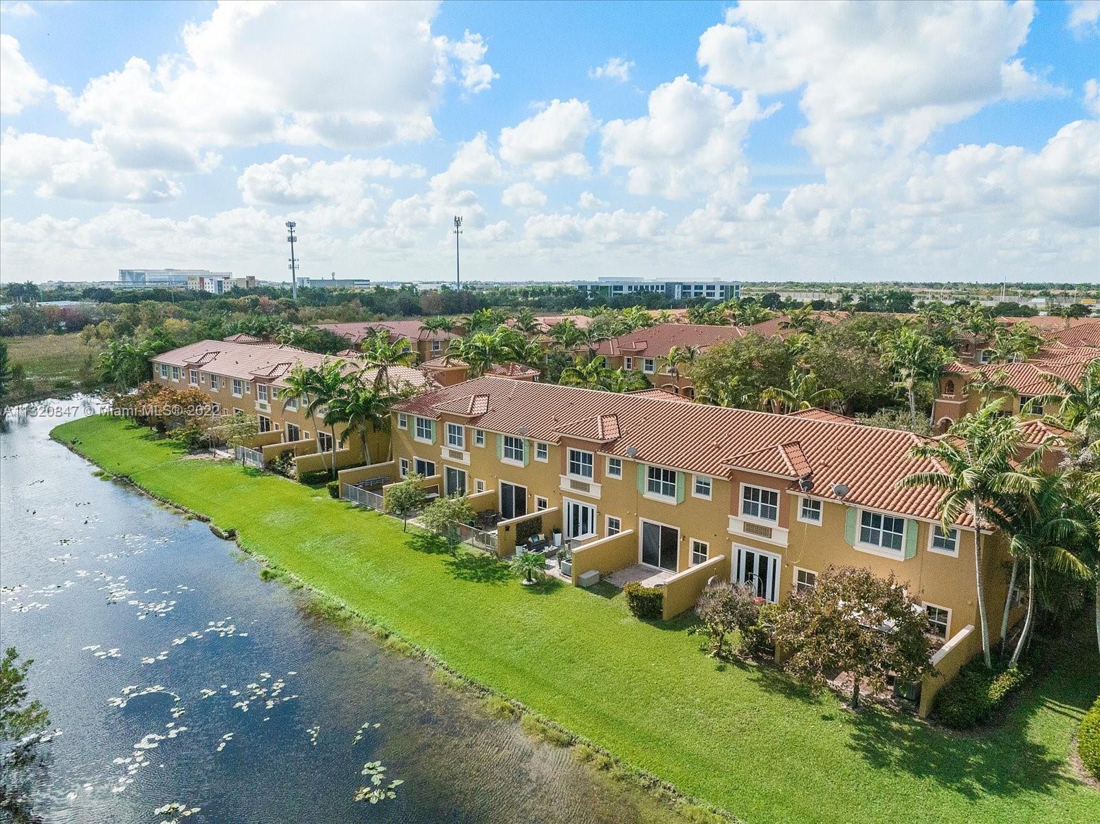 Beautiful 2 Bedroom 2.5 Bathroom townhome in the highly sought-after community of Pembroke Cay. The home is move-in ready, features tile flooring throughout with laminate on the stairs, AND has picturesque water views with NO HOMES BEHIND IT to ruin the view. The kitchen has Granite Countertops, Stainless Steel Appliances and is open to the family room. With high ceilings and oversized windows, the home is flooded with natural light. This gated community offers a beautiful pool and playground area. Conveniently located close to the Shops at Pembroke Gardens Mall with plenty of shopping and dining options, schools and parks. **Realtors see supplemental remarks