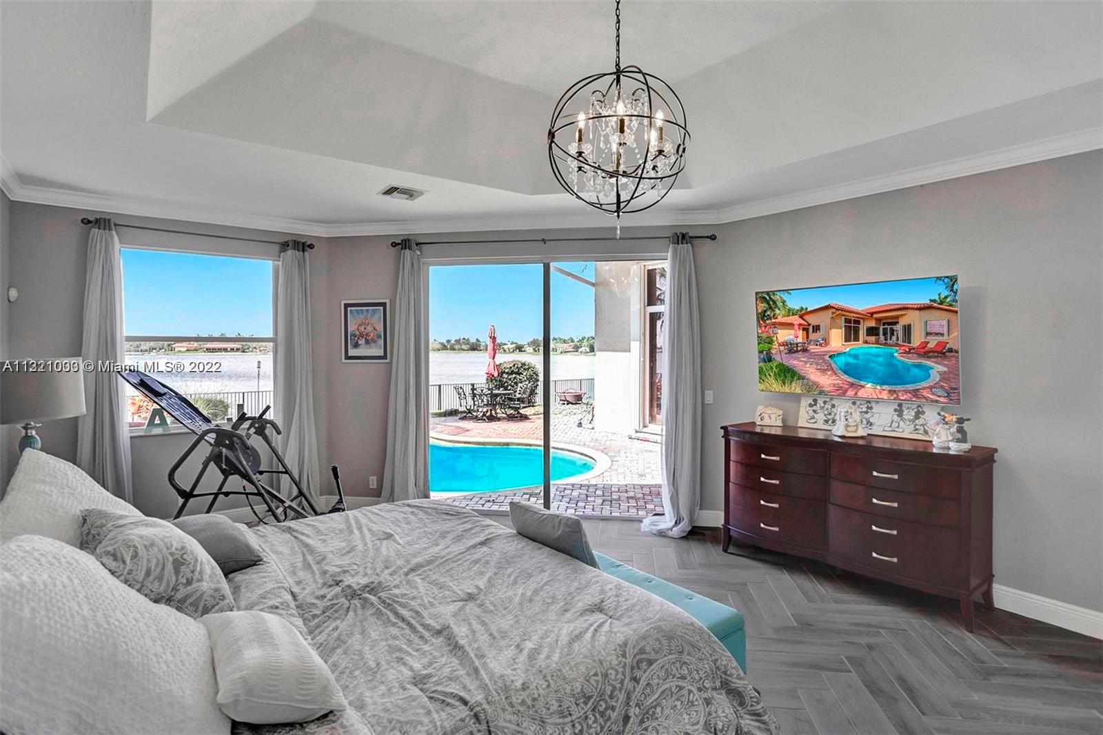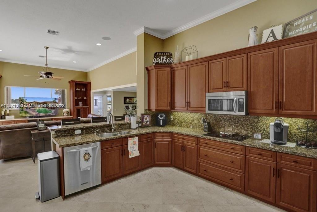 Gorgeous single-story lake home w a freeform pool in the highly sought-after neighborhood of Marisol at Sunset Lakes. Exterior features a brand-new roof, hurricane impact windows, a fenced in backyard & amazing, lush landscaping throughout. Interior features a grand foyer, freshly painted warm neutral colors, marble flooring throughout all common areas, upgraded crown moldings & baseboards. Master bedroom features new tile w wood grain texter, amazing lake views, & two walk in closets. Gourmet kitchen includes granite counter tops, real wood cabinetry, & SS appliances. Amazing lake views from nearly every room. Pool table in game room is included. Game room can easily be converted into 6th bedroom. Amenities include state of the art gym, volleyball and basketball court & much more!