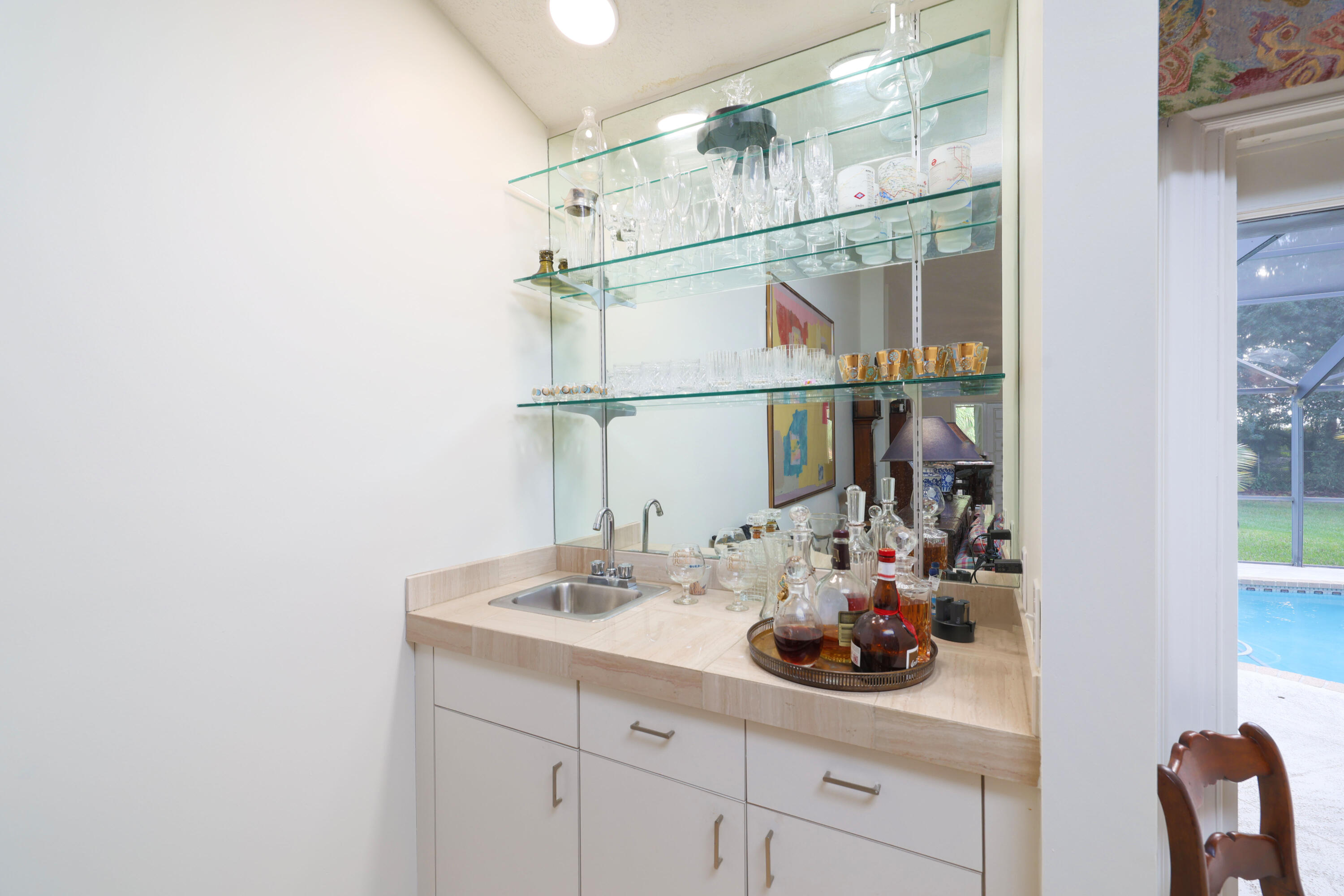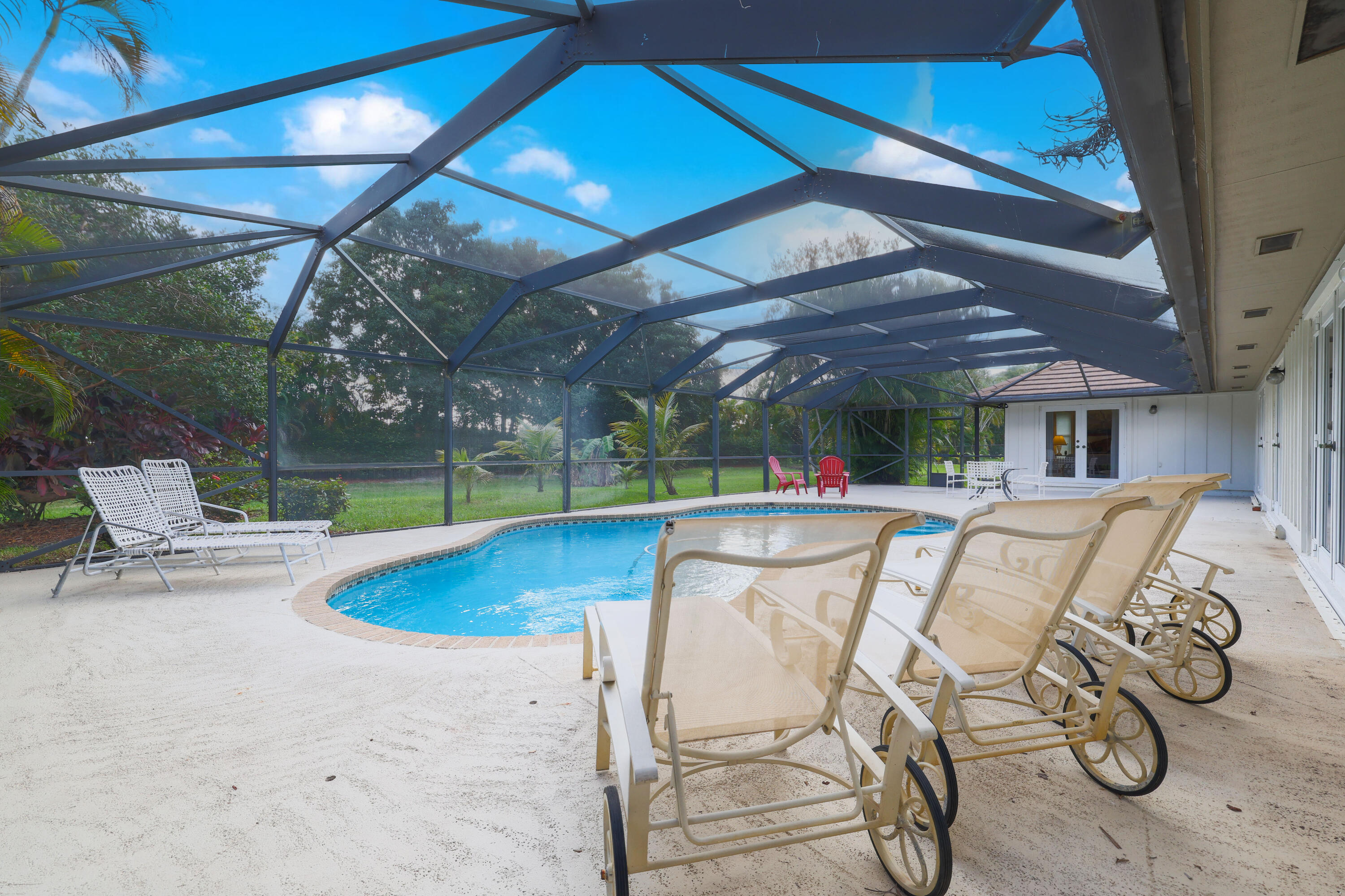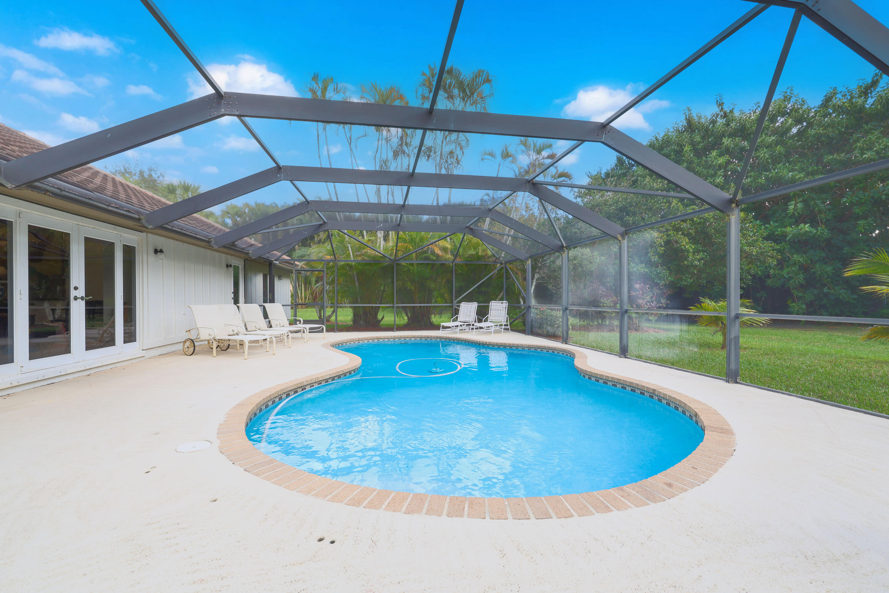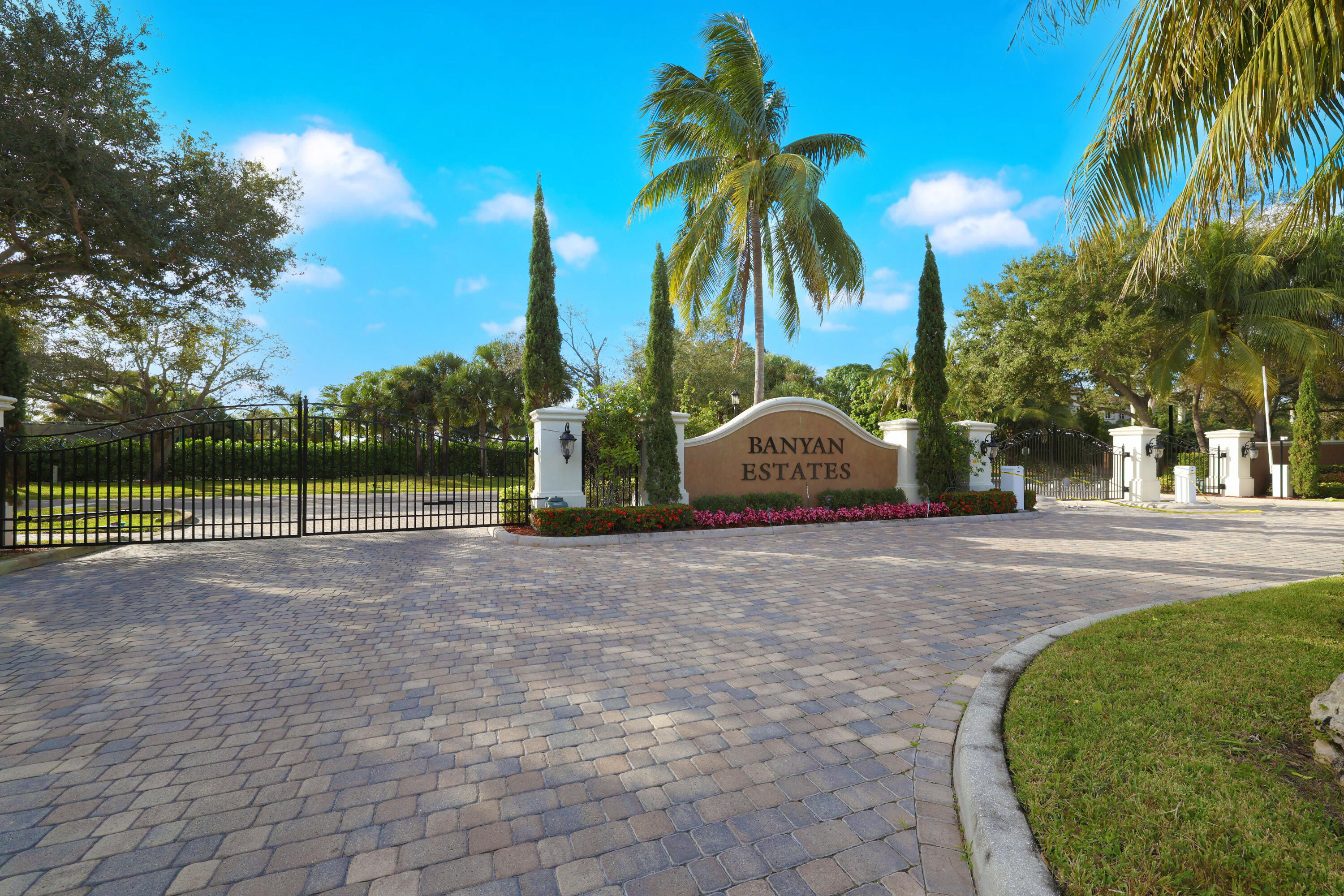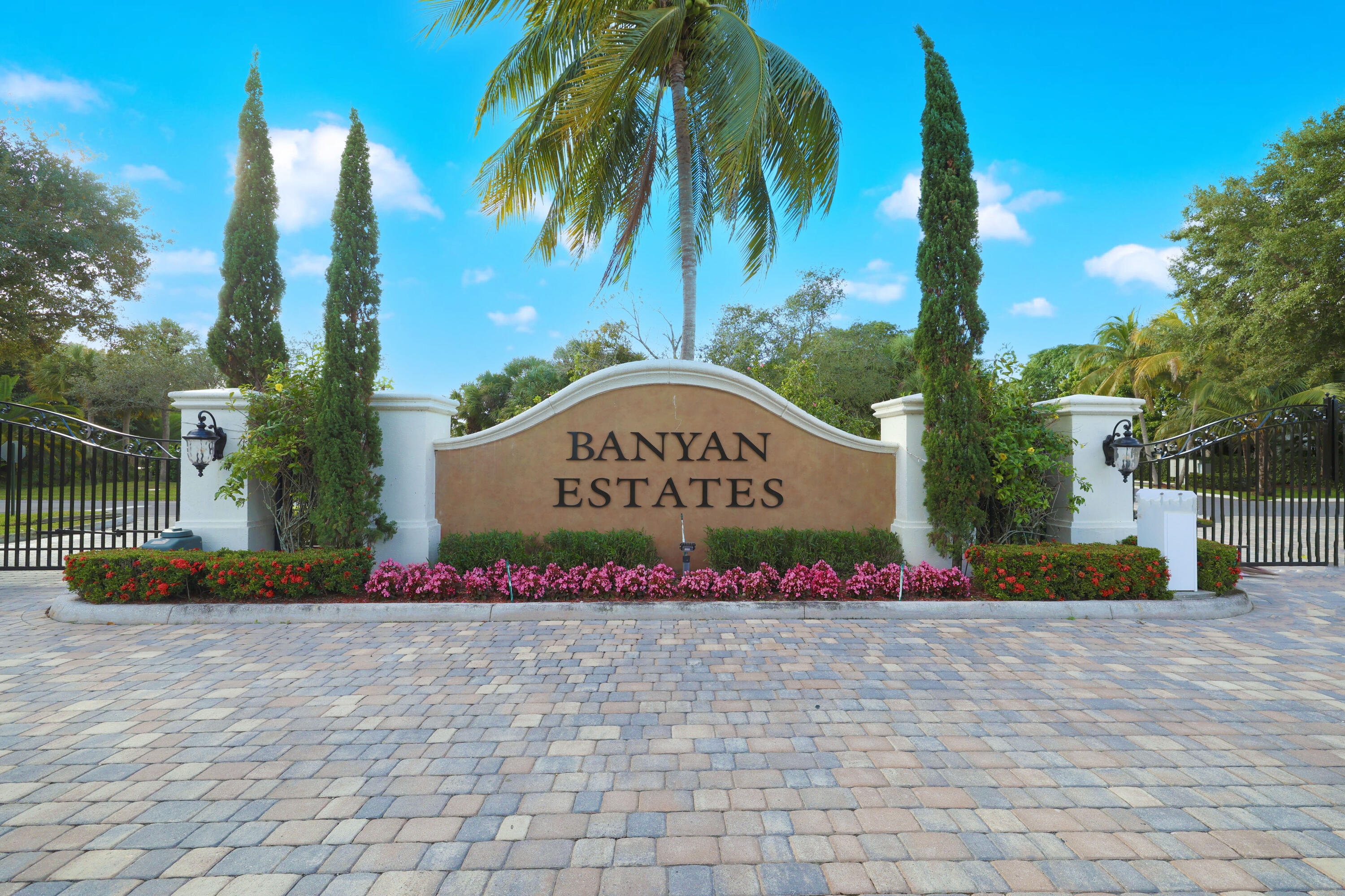 One owner, custom home in the gated community of Banyan Estates! 5BR/3.5BAestate home offers quality construction, impact windows, granite/marble tile counters & custom cabinets! The main living space flows nicely making it perfect for entertainment. Travertine marble tile throughout living areas & recent Kronoswiss planks in 3 bedrooms. Great 2-waysplit plan with family room, 2 oversize bedrooms & bath. Beautiful gourmet kitchenfeaturing new LG stainless appliances, granite counter tops, ceramic tile floors & beveragecooler. Spacious master suite has 2 large closets. 3 AC zones keep you comfortable all year. On 1.01 acres and backing up to the private golf course makes the backyard a private oasis, perfect for floating in your 35,000 gallon pool surrounded by mature trees & a gard