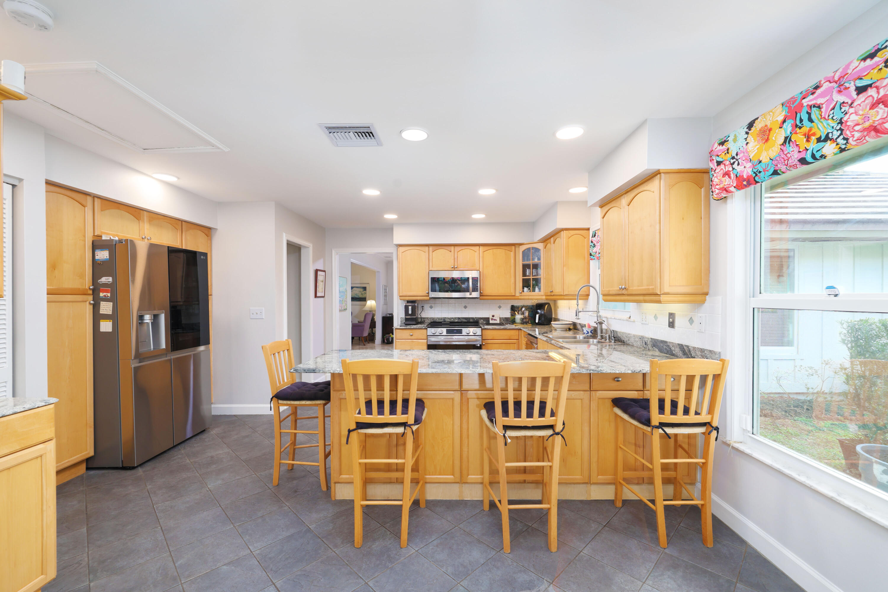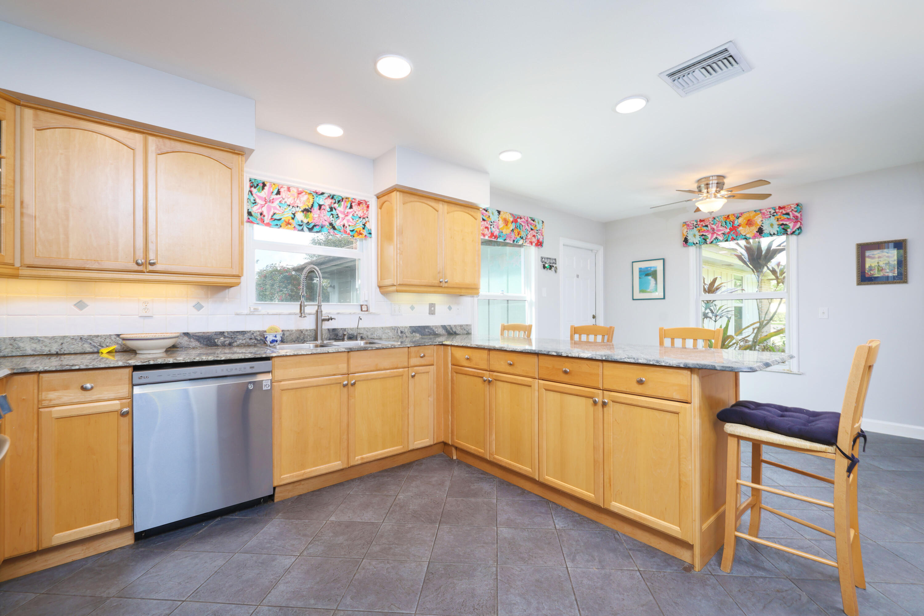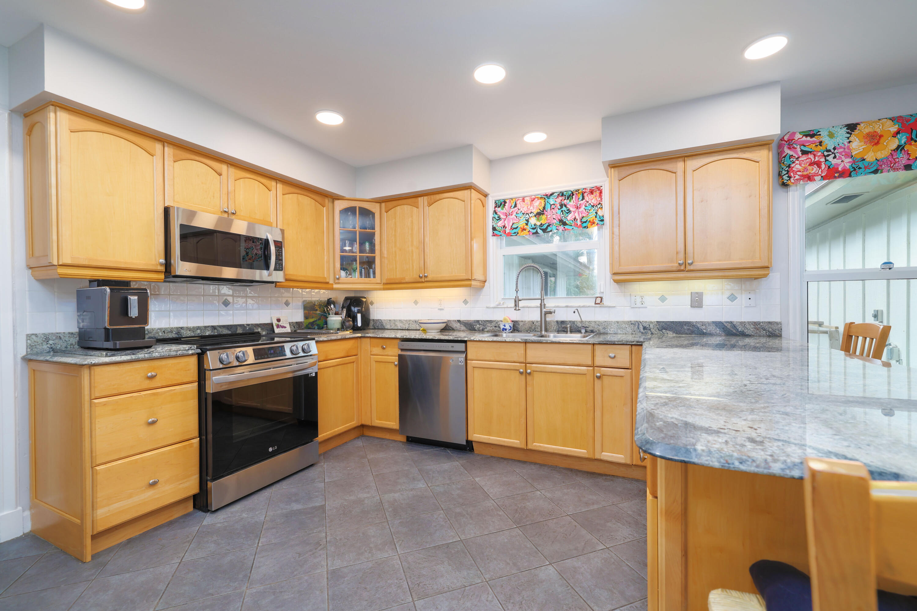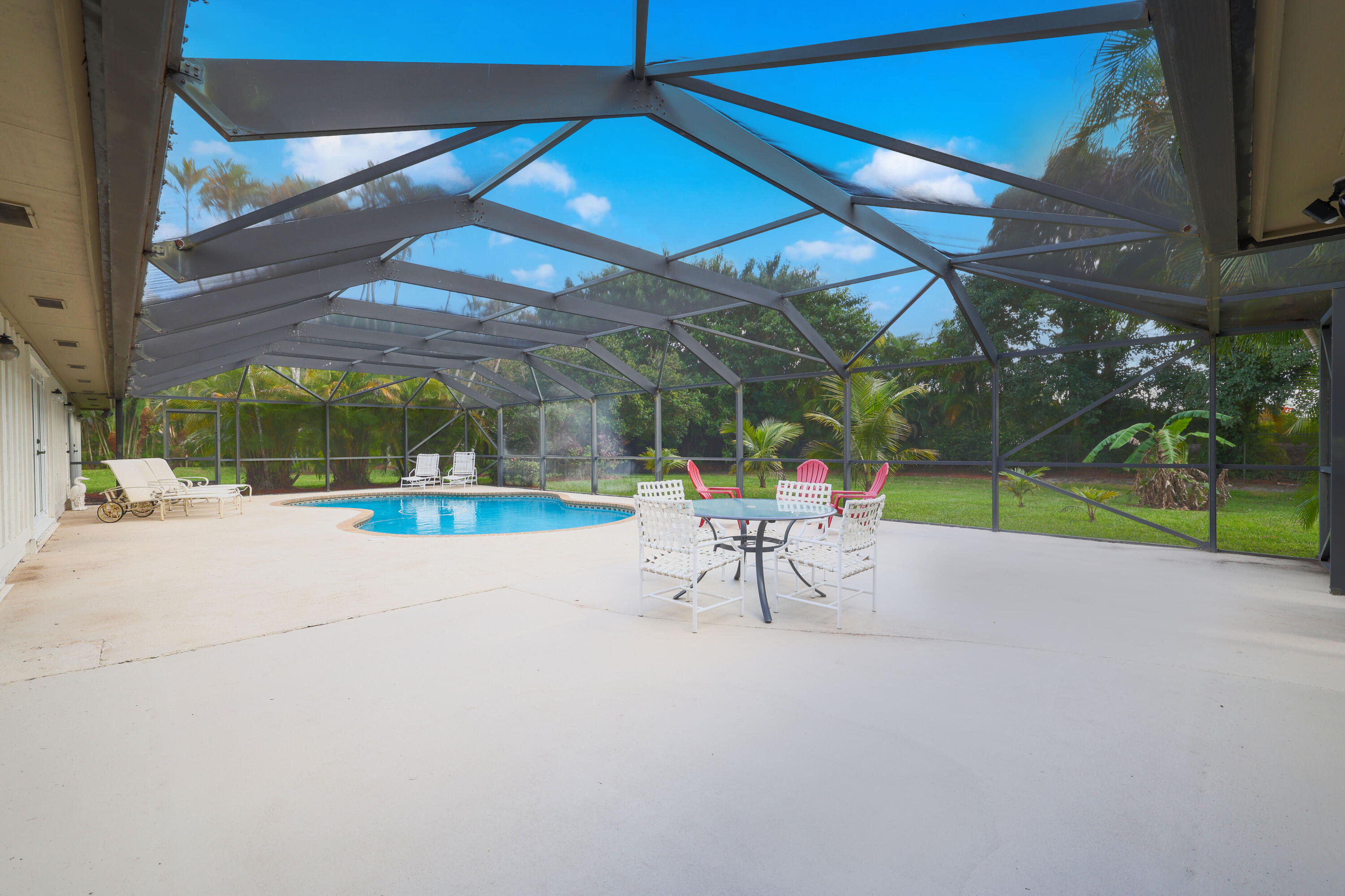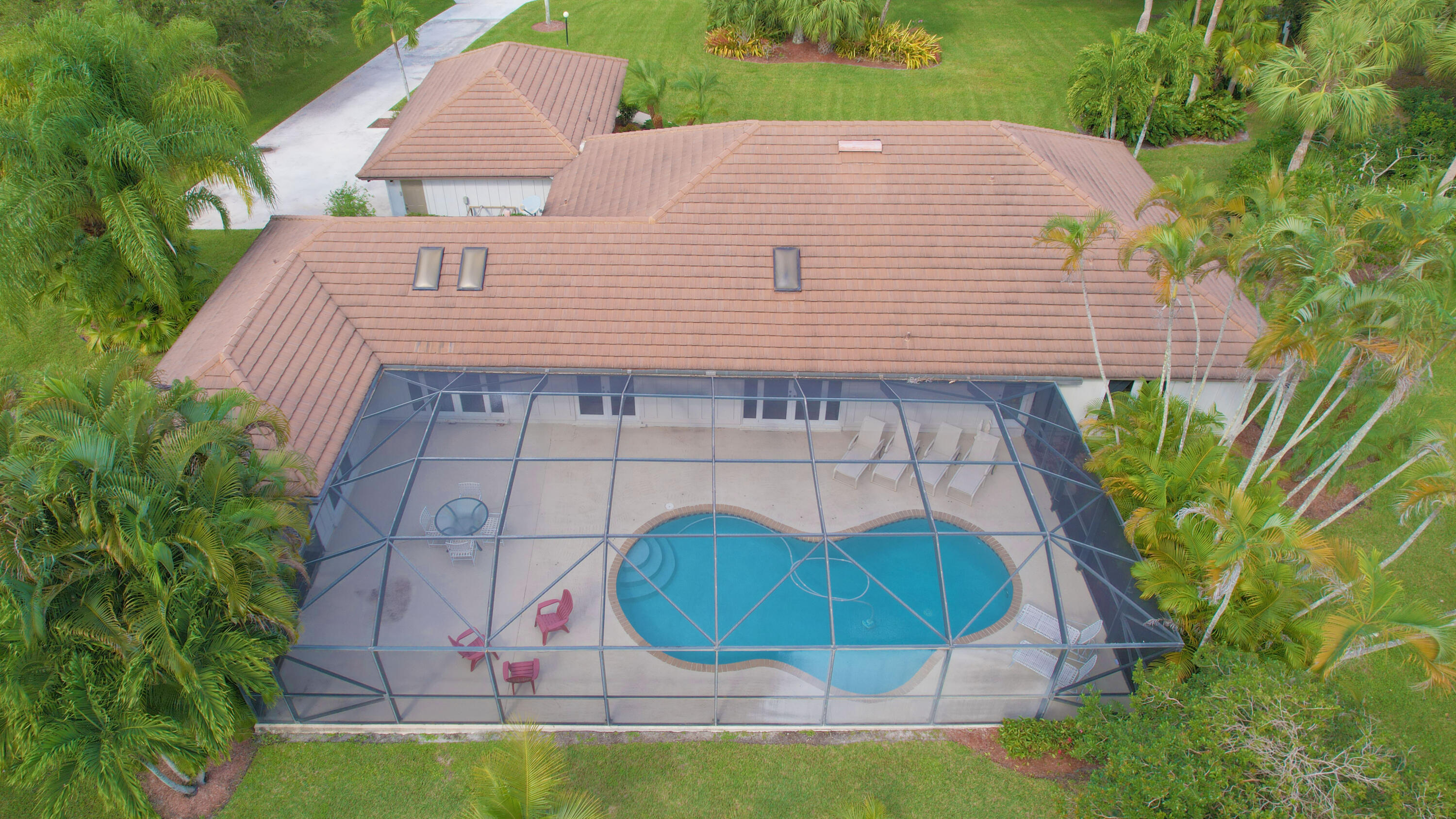 One owner, custom home in the gated community of Banyan Estates! 5BR/3.5BAestate home offers quality construction, impact windows, granite/marble tile counters & custom cabinets! The main living space flows nicely making it perfect for entertainment. Travertine marble tile throughout living areas & recent Kronoswiss planks in 3 bedrooms. Great 2-waysplit plan with family room, 2 oversize bedrooms & bath. Beautiful gourmet kitchenfeaturing new LG stainless appliances, granite counter tops, ceramic tile floors & beveragecooler. Spacious master suite has 2 large closets. 3 AC zones keep you comfortable all year. On 1.01 acres and backing up to the private golf course makes the backyard a private oasis, perfect for floating in your 35,000 gallon pool surrounded by mature trees & a gard
