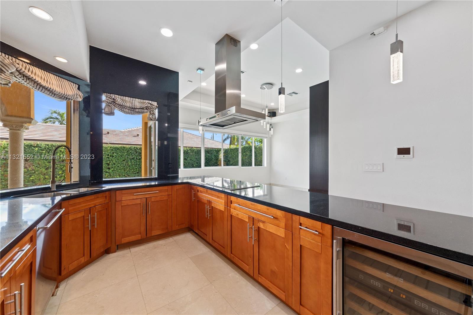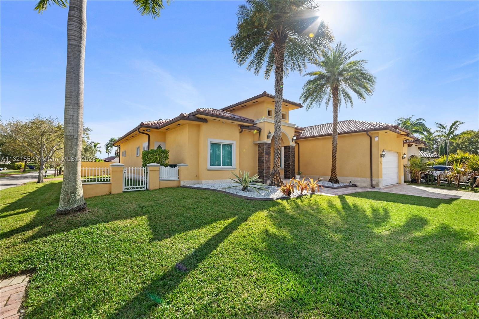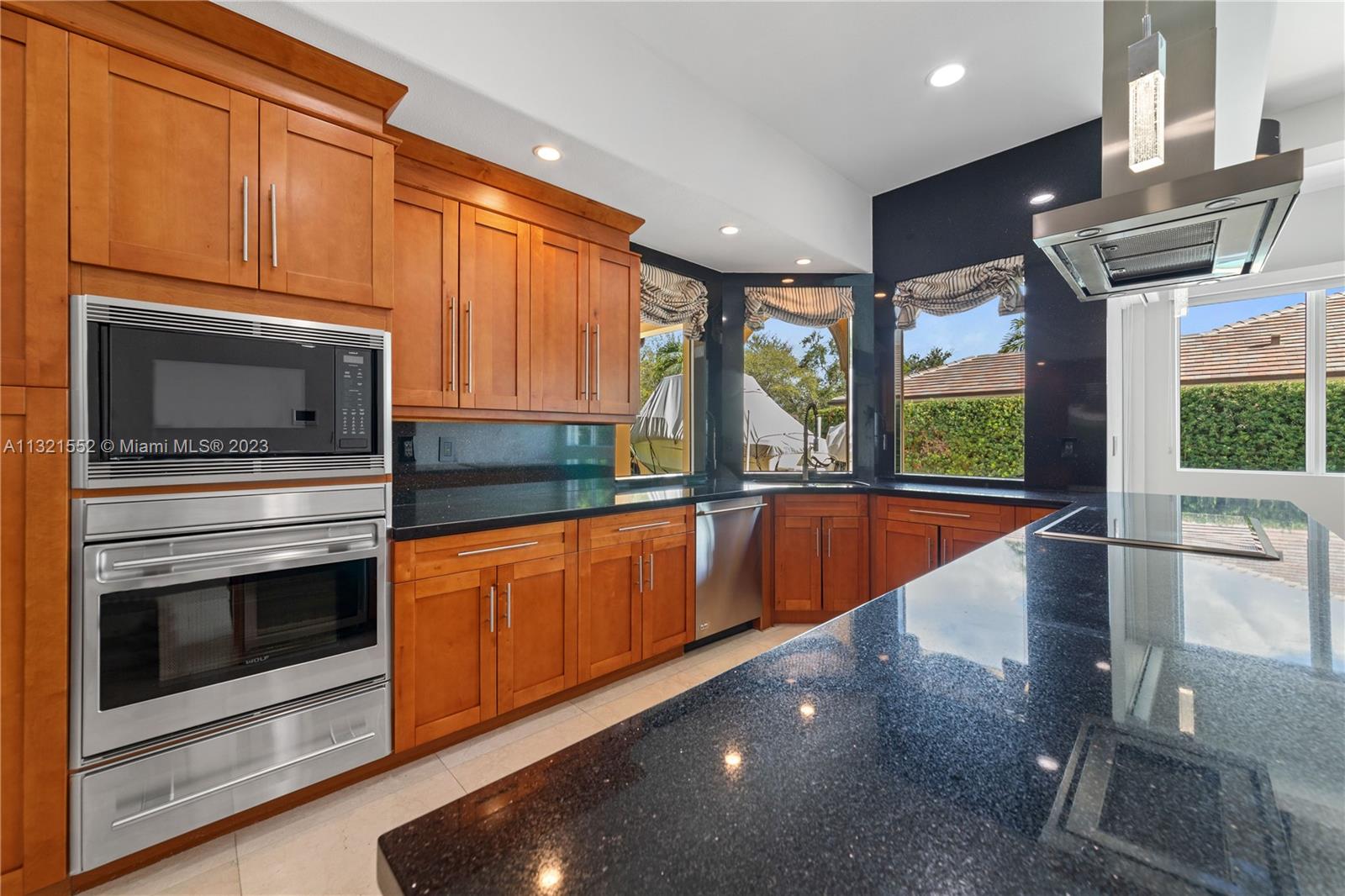 Beautiful, 4 bed/3 bath, single family home located on a large, corner lot in the Vanderbilt Park area of Doral. Home is set back on a hill with double doors opening to a spacious living area with high ceilings and there is a separate dining, kitchen and family room. Kitchen is finished with granite countertop, lots of windows, wood cabinetry and stainless steel appliances equipped with built in wall oven, microwave and warming drawer with wolf range and subzero refrigerator. Master bedroom has a separate sitting area and ensuite bath/closet, plenty of storage space and leads out to the pool/garden. Top of the line security system, flood lights, surround sound and covered patio area with pool. Move in ready/space for a boat. Close to A-rated schools, highways and restaurants.