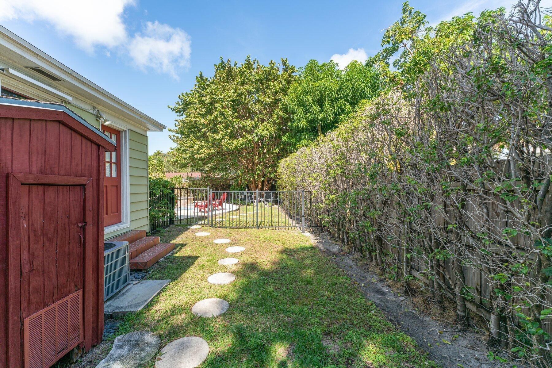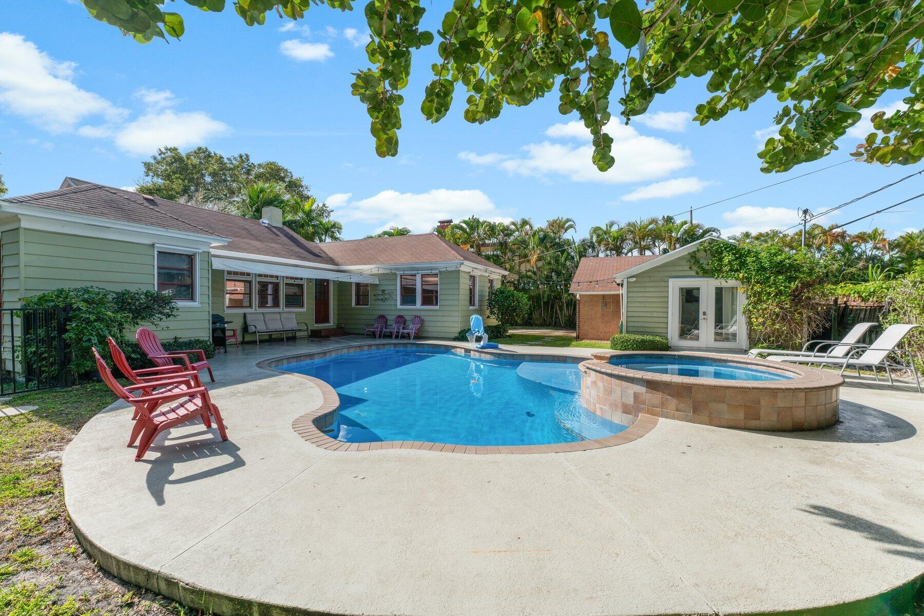 Located in the enchanting Historic Distric of West Palm Beach and only 5 minutes away from the beach is this charming home built in 1941. The main house consists of 2 large bedrooms, a formal dining room and living room with beautiful original hardwood flooring throughout, one spacious updated master bathroom, updated kitchen with stainless steel appliances, granite counter-tops, wood burning fire-place, vaulted ceilings, cedar wood closets in both bedrooms. Out back overlooking the pool, is a cozy little cottage with 1 bedroom, 1 large bathroom, a seperate living area with a washer/dryer, and a kitchenette. Gated driveway with space for a boat or RV. In ground heated salt water pool just recently resurfaced, brand new AC. Perfect for an airbnb, winter get away, or place to call home.