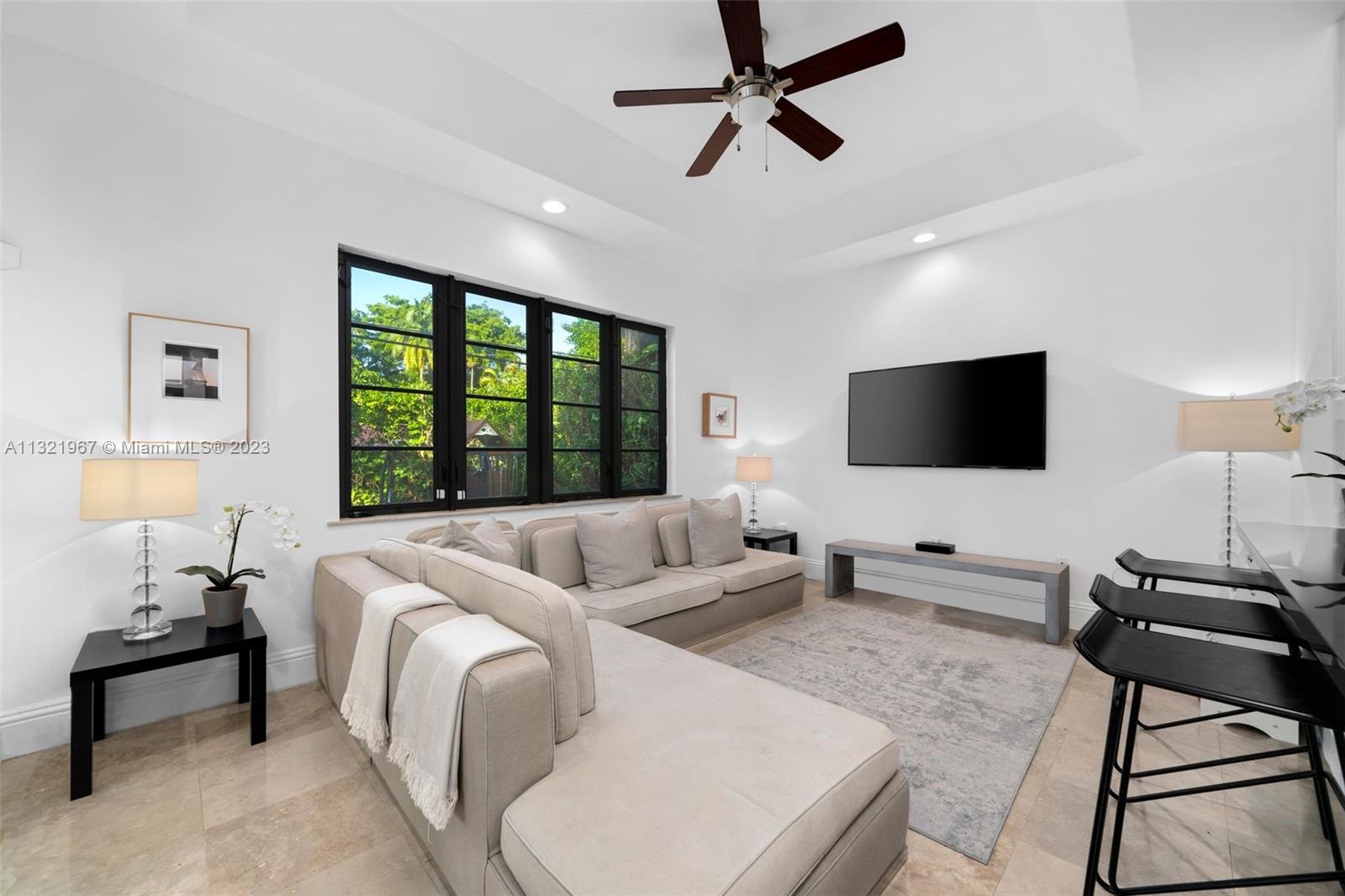 Located in the heart of Coral Gables, this 4-bedroom, 3-bathroom 2,861 SF home offers a spacious floorplan with oversized rooms and high ceilings. The impeccably designed two-story residence has an open layout with a grand foyer entry leading to the living room and formal dining room. The beautiful kitchen overlooks a family room, with views of the stunning backyard. The second-floor primary suite features a spectacular and sizeable terrace overlooking the pool and garden. The outdoor space is perfect for entertaining, with an expansive covered patio, built-in barbeque, large pool, artificial turf and plenty of landscaping for optimal privacy. Additional features include impact windows and doors. Close to Merrick Park, Miracle Mile and the Biltmore Hotel and golf course.
