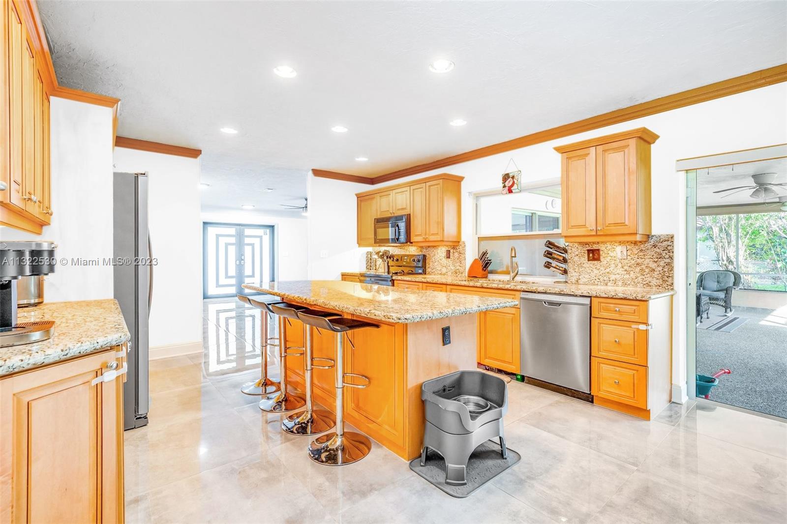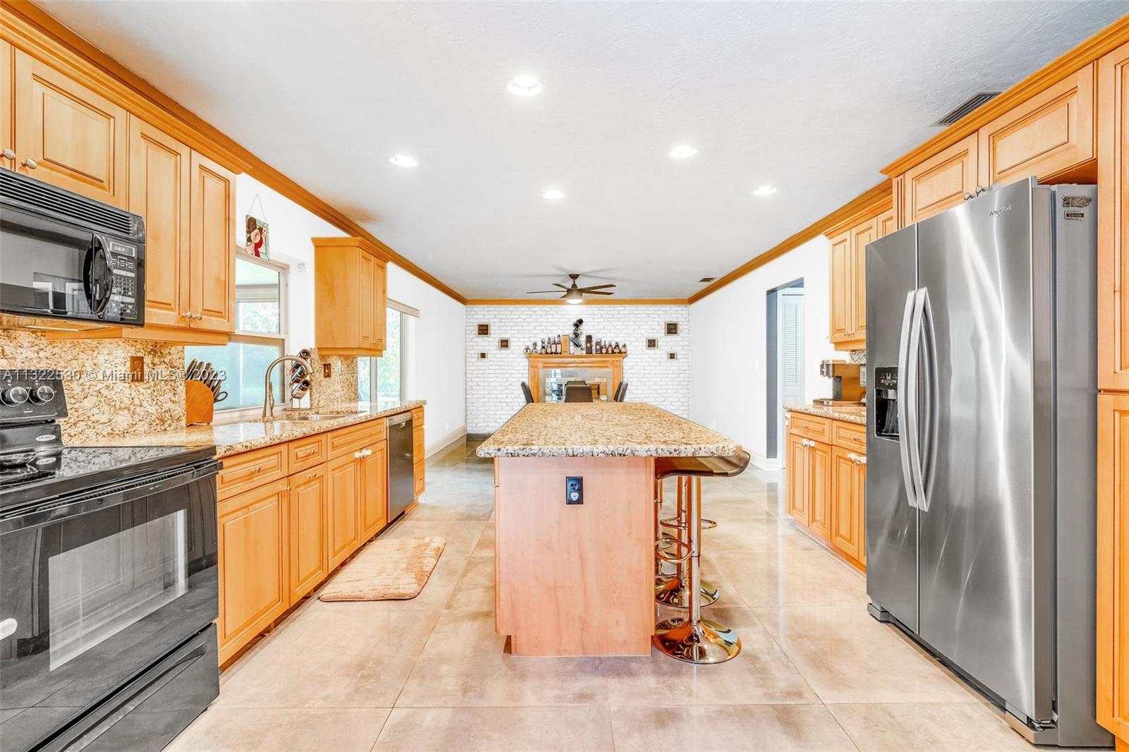 Gorgeous 3 bed / 2 bath waterfront property on a cul-de-sac in Coral Springs with a Brand New Roof installed December 2022 and Brand New A/C. This home also features a split bedroom floorplan, family room with wood-burning fireplace, Upgraded spacious kitchen with grainte counter tops & center island, wood cabinets & SS appliances (Newer Refrigerator replaced in 2019). Premium Porcelain tile imported from Spain flowing through the entire home. Beautifully remodeled bathrooms. Hurricane Impact front door and panels for all other openings. The Electrical panel replaced 2019. HUGE 1/4 acre fenced yard with more than enough room for a pool and a 600+ sqft screened-in patio. NO HOA! Schedule Your Private Tour Today! (Interior walls colors are digitally changed from actual paint colors to white)