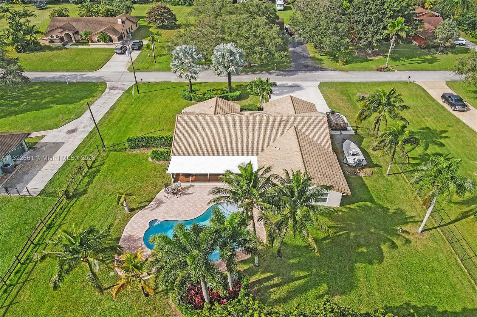 This immaculately maintained updated 4/2.5 pool home sits on almost an acre and has no HOA. The huge backyard, heated pool and screened patio are perfect for entertaining. The home features impact windows throughout. Kitchen appliances, including double oven were replaced in 2018. Sprinkler, pool and 2 well pumps were replaced in 2018. The pool heater is under warranty. Water filtration system with softener. Extra storage shed and gazebo with new floor installed in 2022. Home is on a quiet cul-de-sac street. There is plenty of room for boats, RV, and work trucks. The long driveway will hold 8 cars. Home was recently painted inside and out in 2022.