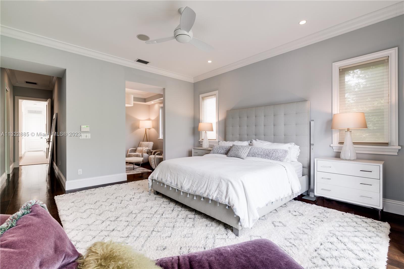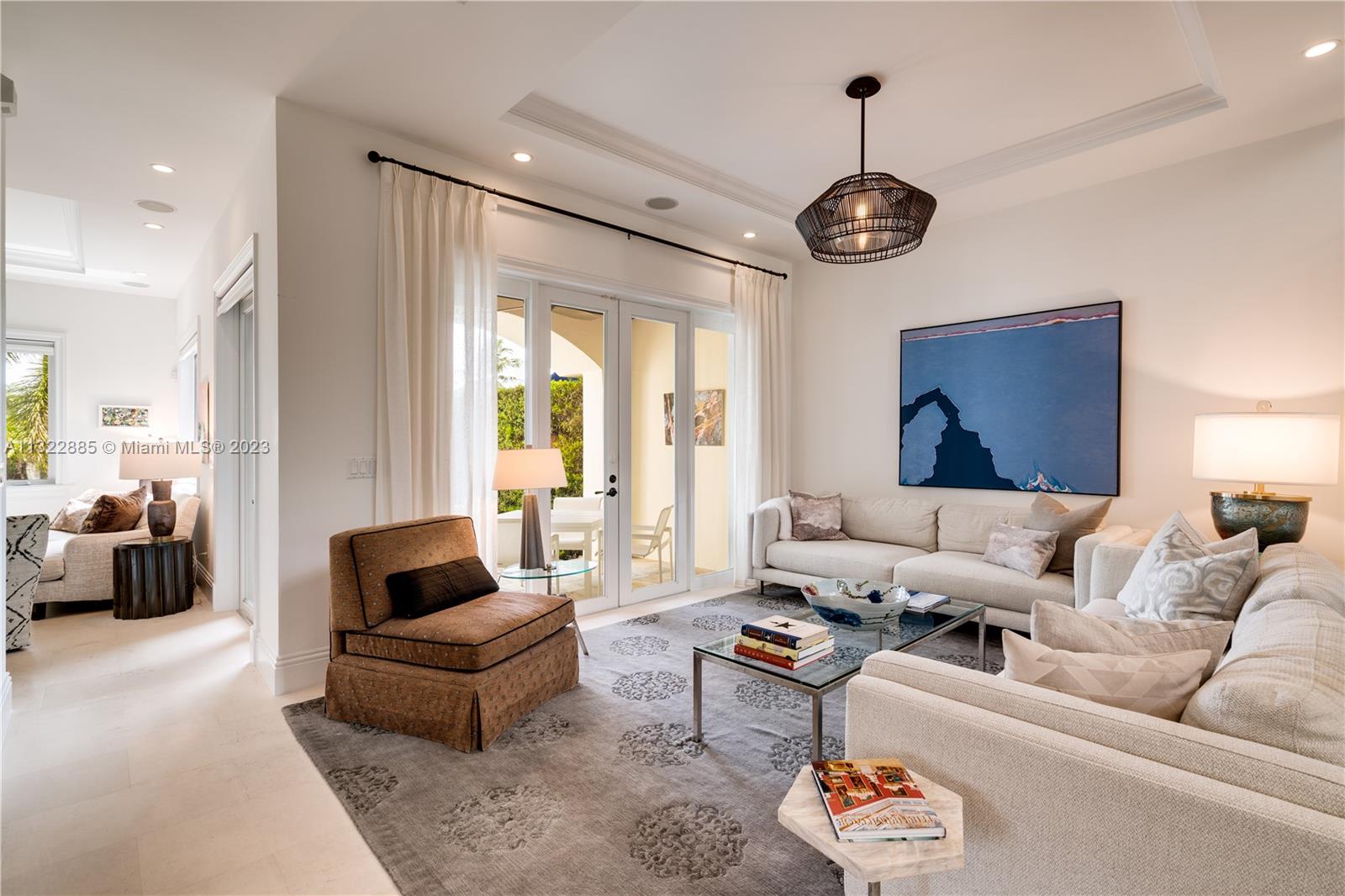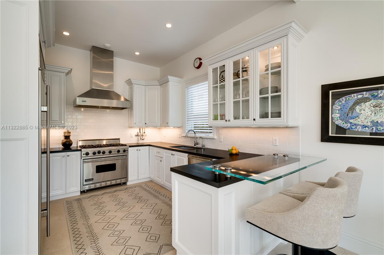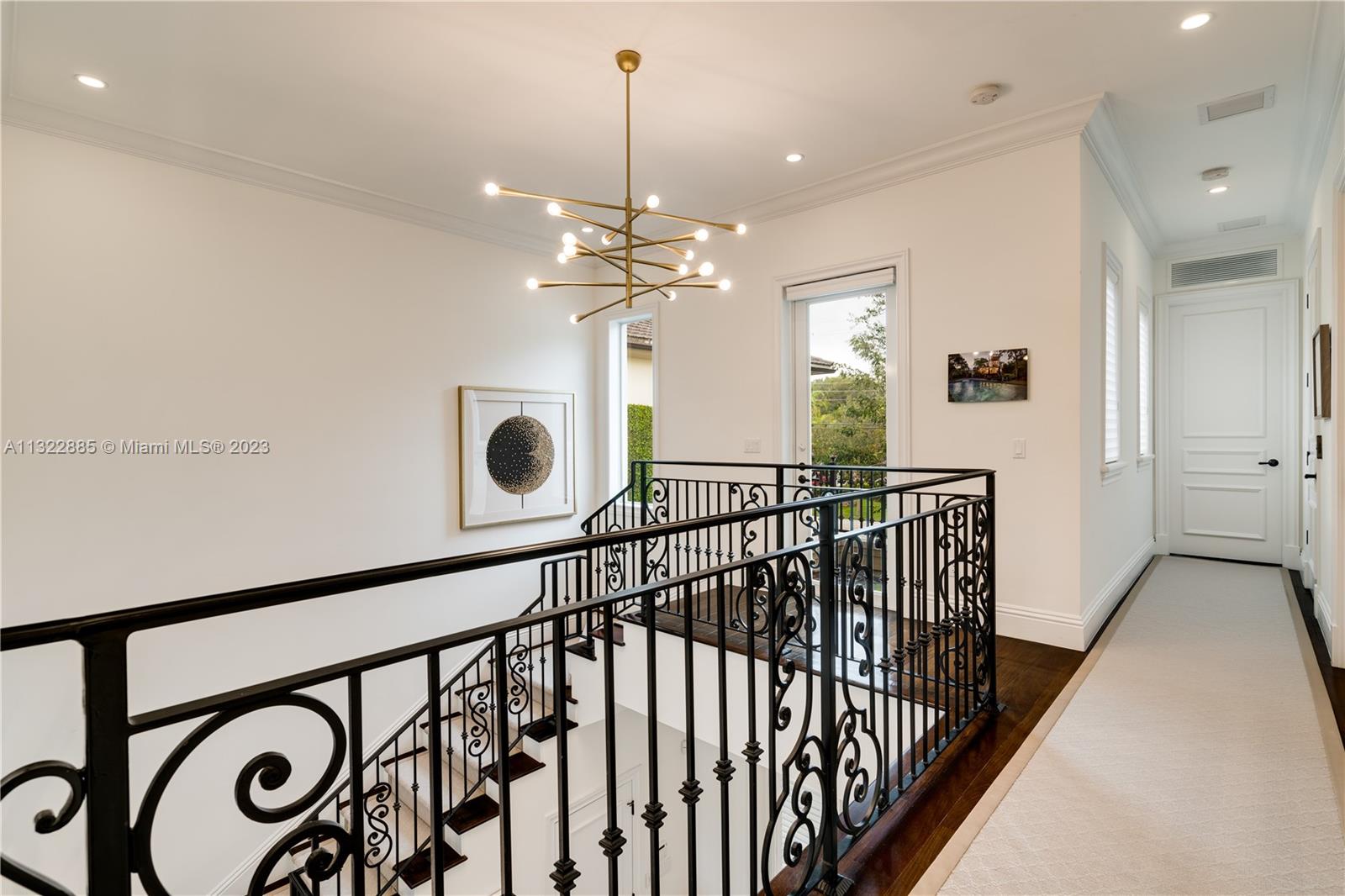 Absolutely stunning Coral Gables waterfront property offers a luxurious and private retreat. This 4 bed/4.5 bath 2-story home has upscale designer finishes throughout and is equipped with an elevator for easy living. The covered patio, pool & enticing private dock are perfect for watching the manatees at dawn or dusk. The kitchen boasts a 6-burner Viking gas range as well as a Sub-zero Refrigerator and Miele dishwasher, inviting cooking and entertaining as it integrates with the family room. The primary suite w/wood floors, large walk-in closet, separate sitting area, and private balcony overlook the waterway. The sublime primary bath features Carrera marble, double sinks w/separate tub & shower with Waterworks fixtures. Walking distance to Riviera Country Club. A Very Special Home.