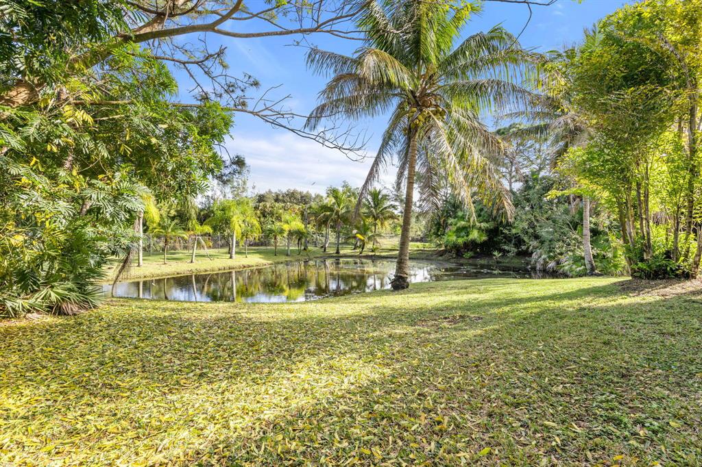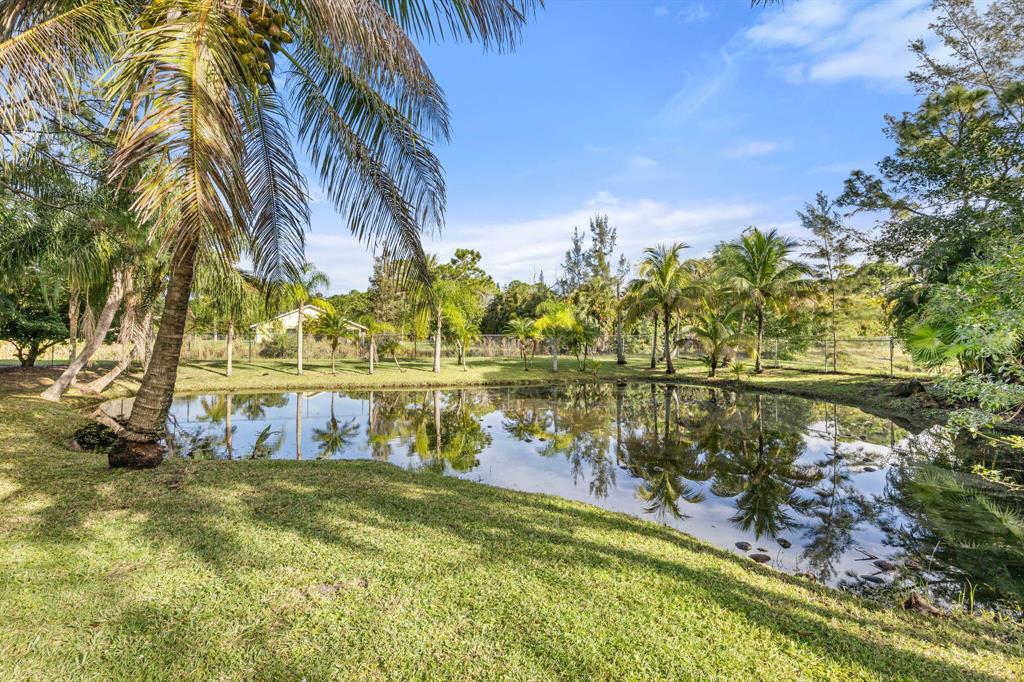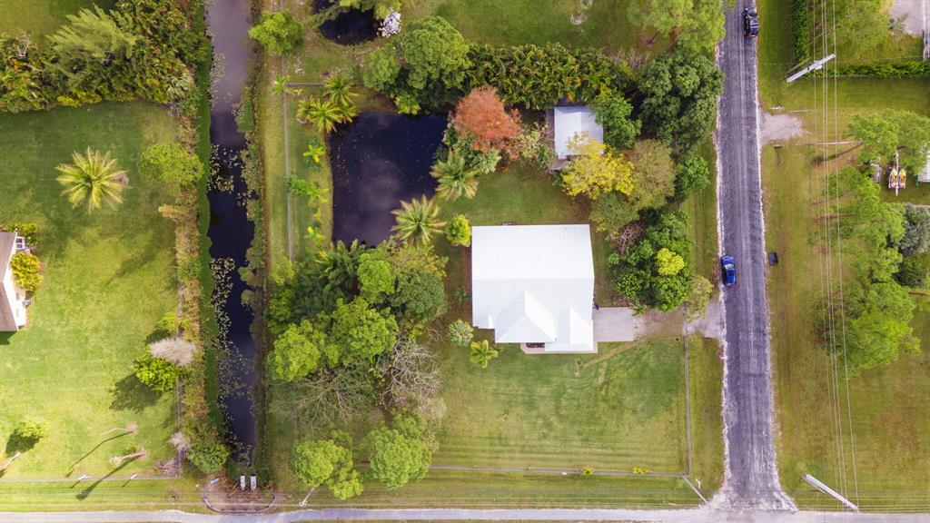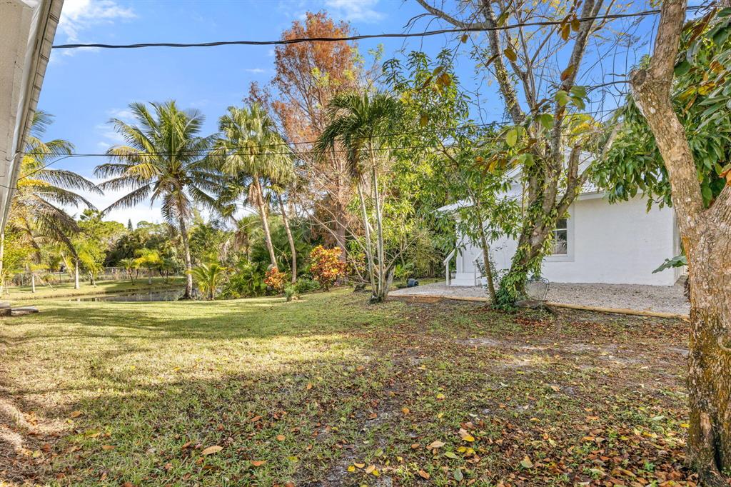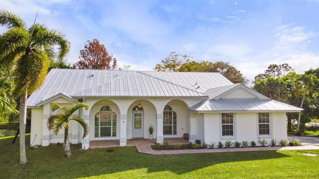 Elegant home situated on oversized lot in The Acreage. Step inside this meticulously maintained and upgraded home and fall in love with it's open spaces, 4 bedrooms, 2.5 baths, plus private Guest House with full kitchen and bath. Light and bright corner lot, with tastefully renovated kitchen, granite countertops, all new stainless steel appliances, freshly painted, new AC, and brand new METAL ROOF.Relax on your large, screened in back porch and enjoy the generous backyard with serene pond. A full sprinkler system is in place to meticulously maintain the lush, mature landscaping and wonderful fruit trees such as mango, avocado, banana, lychee and more. The private studio guest house has an upgraded kitchen and brand new full bath. The perfect space to customize to your lifestyle.