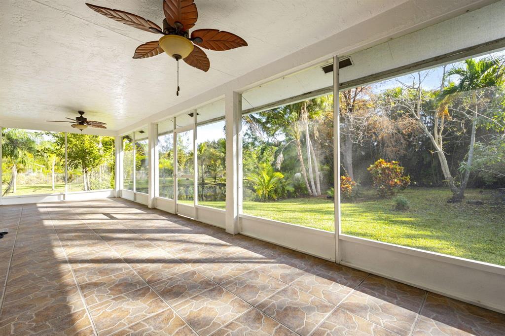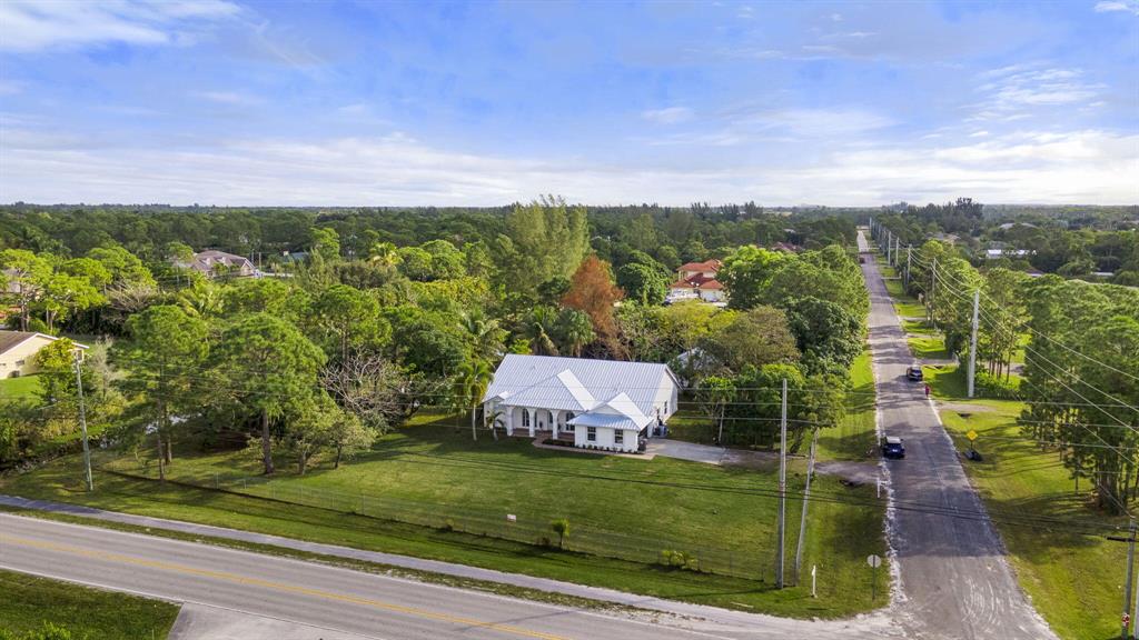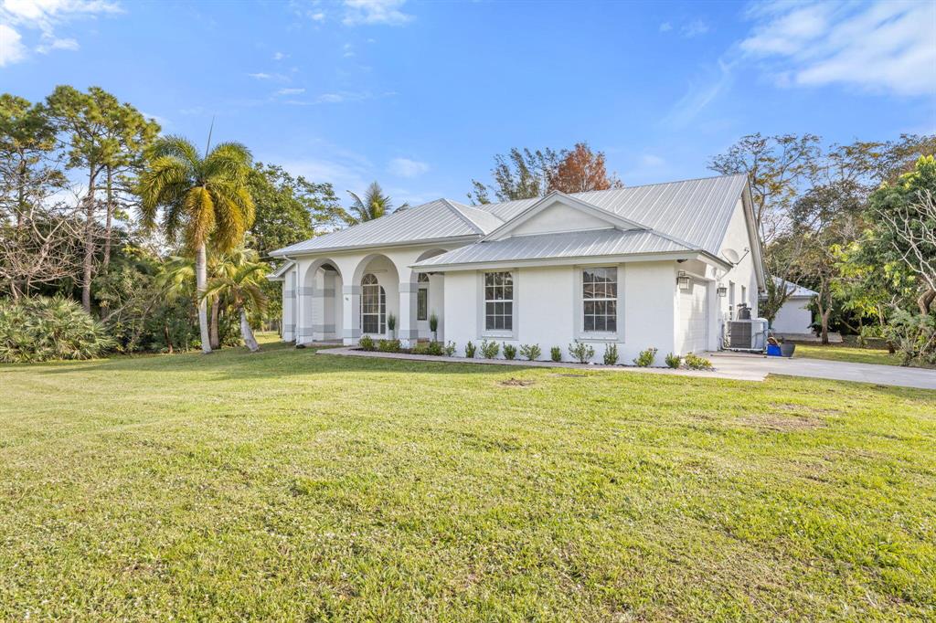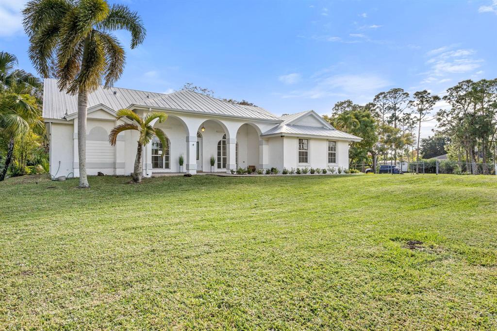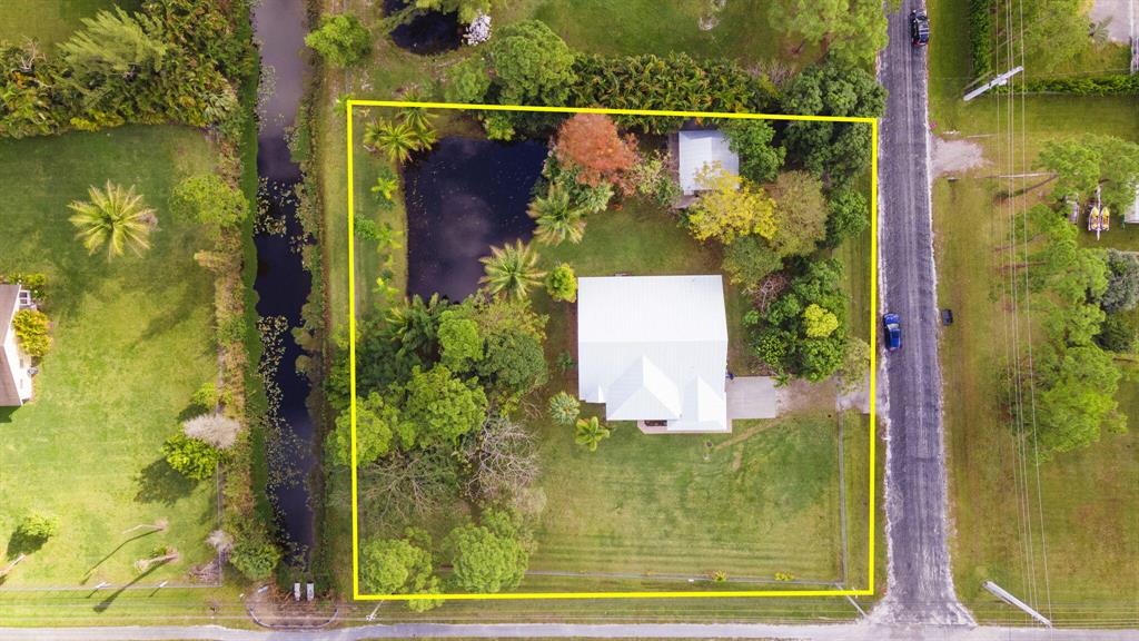 Elegant home situated on oversized lot in The Acreage. Step inside this meticulously maintained and upgraded home and fall in love with it's open spaces, 4 bedrooms, 2.5 baths, plus private Guest House with full kitchen and bath. Light and bright corner lot, with tastefully renovated kitchen, granite countertops, all new stainless steel appliances, freshly painted, new AC, and brand new METAL ROOF.Relax on your large, screened in back porch and enjoy the generous backyard with serene pond. A full sprinkler system is in place to meticulously maintain the lush, mature landscaping and wonderful fruit trees such as mango, avocado, banana, lychee and more. The private studio guest house has an upgraded kitchen and brand new full bath. The perfect space to customize to your lifestyle.