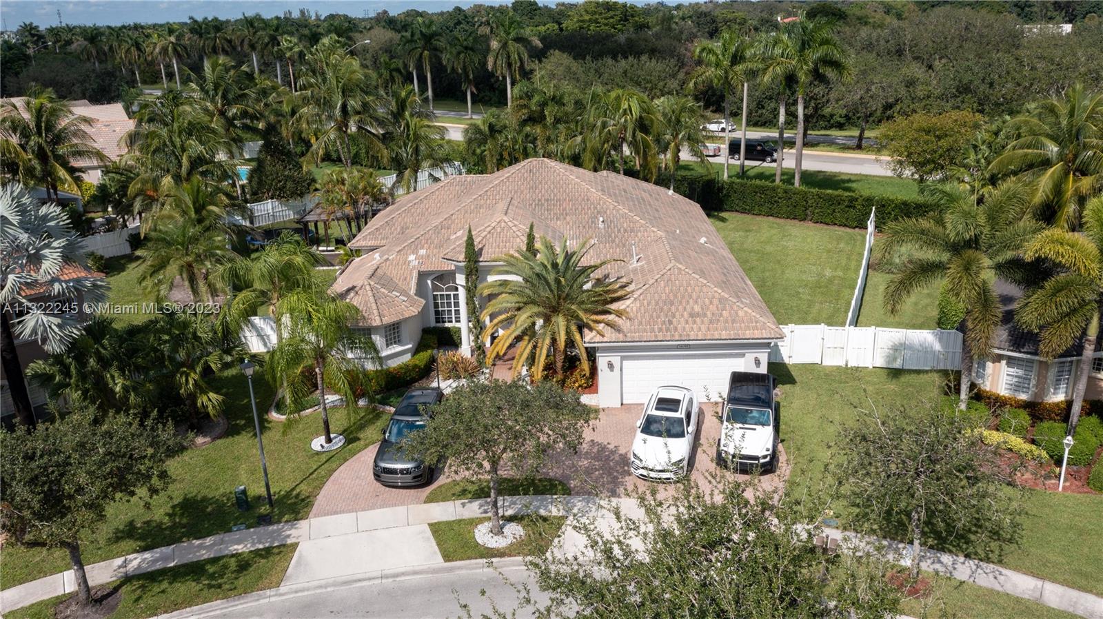 COMPLETELY RENOVATED MONTEREY MODEL, DESIRABLE 3 WAY SPLIT FLOOR PLAN, 4 BEDROOMS+DEN (THEATER ROOM) PRIVATE MAN CAVE ROOM, 3 UPDATED BATHS, ELEGANT MASTER SUITE W/UPGRADED BATHROOM 2021 AND CALIFORNIA CLOSETS, GRANITE KITCHEN W/SS APPLIANCES, WOOD CABINETS, MARBLE FLOORS ON MAIN AREAS LAMINATED WOOD FLOORS ON BEDROOMS, 2 AC UNITS 2018,ACCORDION SHUTTERS, CONCRETE LANDSCAPE BORDERS, EXTERIOR LIGHTING WITH BEAUTIFUL POOL, BACKYARD WITH SPECTACULAR PARADISE PAVERED PATIO WITH LARGE COVERED PORCH AND LUSH TROPICAL LANDSCAPING, SUMMER KITCHEN, HALF BASKETBALL COURT, BATTING CAGE PACKAGE. PREMIUM SIZE LOT OVER 18,000 SF CORNER WITH CIRCULAR DRIVEWAY. GATED COMMUNITY RESORT STYLE CLUB HOUSE, HEATED POOL, SPA, FITNES CENTER, TENNIS AND BASKETBALL COURT.HOA INCLUDES CABLE-HIGH SPEED INTERNET ALARM