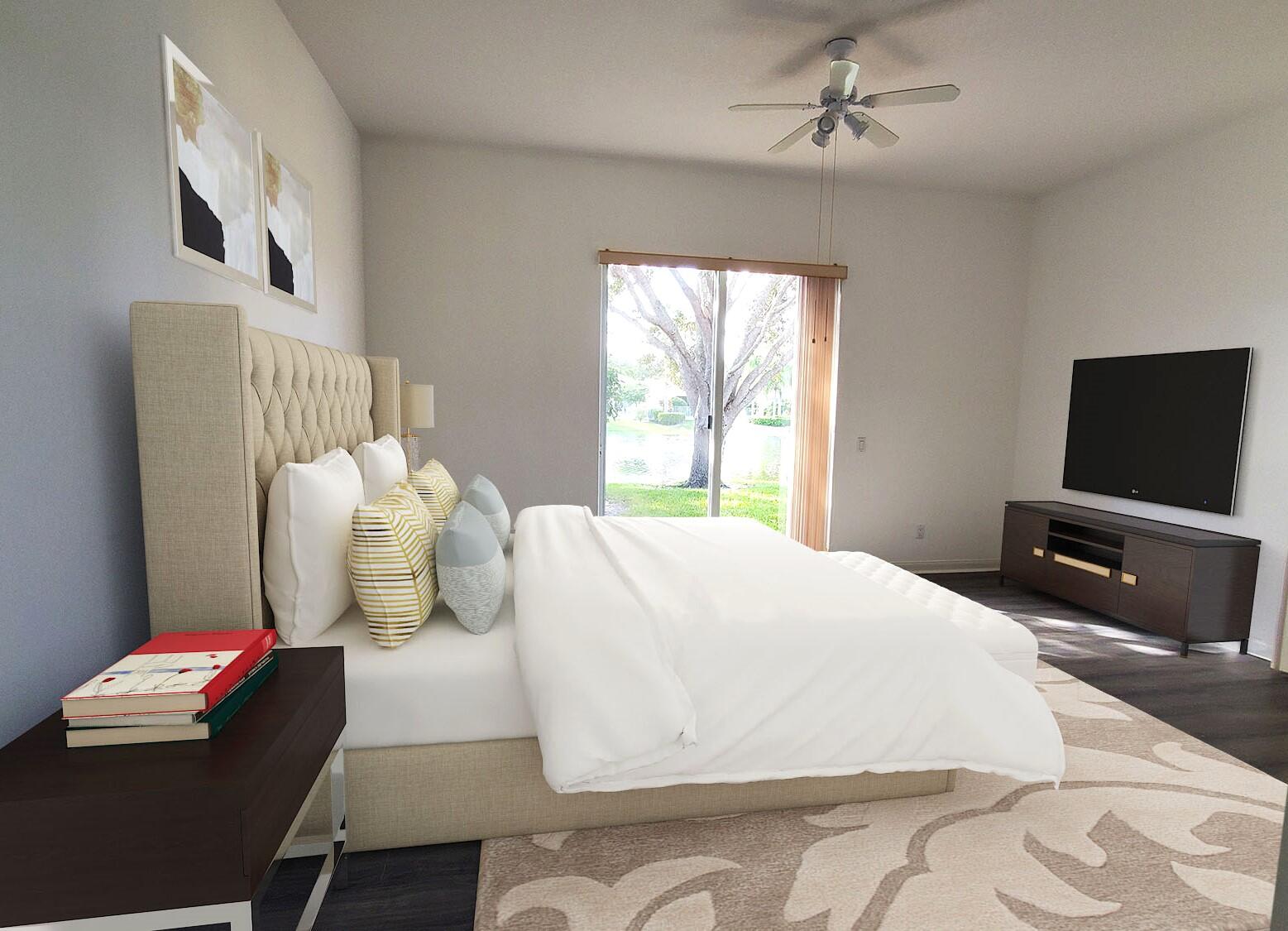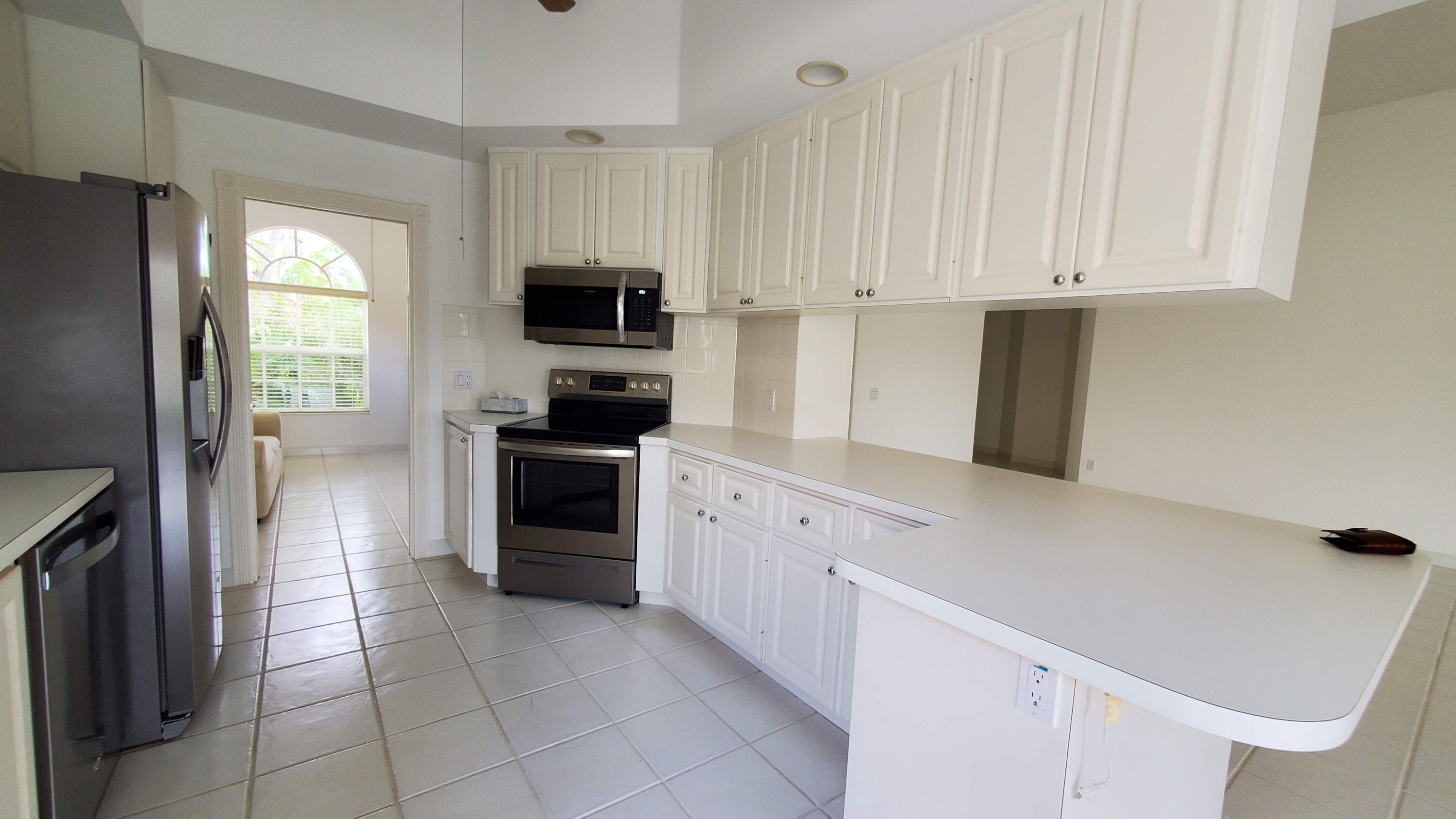 This immaculate, updated, 3-bedroom and 1- Den-Office, high ceiling rambler on a wide lake, in the highly sought-after, 24-hour man-gated, River Walk community in Palm Beach with manicured lawns, scenic parks, stone arch bridges, a lovely community club house, restaurant, tennis, pickle ball, yoga, post office, hairdresser, restaurant a gorgeous open and closed swimming pools. The house is located close to 95 and Turnpike, restaurants and shops of West Palm Beach, Worth Avenue and Palm Beach Island, and Palm Beach International Airport. The house has all brand-new range and oven, micro-wave, dish washer, new disposal. House is unfurnished. The A/C unit is only 6 years-old, the water heater is only 7 years-old. HOA Fee includes Infinity fiber optic internet also.