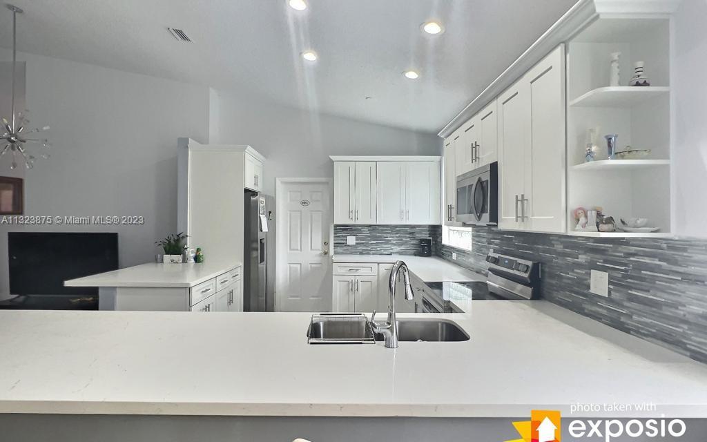 Stunning 3/2 home with a 2 car garage, located in the beautiful Grand Palm Community in Pembroke Pines, gated community. The entire house has been completely remodeled, with new kitchen wood cabinets, quartz counters, and stainless steel appliances New Roof, tall ceilings, and chandeliers. Tile, and vinyl waterproof floor throughout, Family Room, New AC, Bathrooms completely renovated. Painted, new electric installations, backyard a place for relaxation. Association included, landscape, cable, and internet Don't miss seeing it. Great for new buyers. Easy to show, but need to call the listing agent before showing.