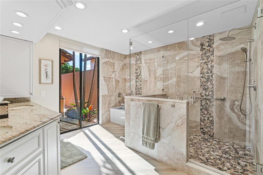 This home is a standout! Updated, open & bright home with a fabulous lanai, pool area with lake view, & a beautifully landscaped courtyard entrance! Interior pics will be added soon! The living area has high ceilings & is full of natural light. Large primary bedroom suite on the 1st floor & two spacious bedrooms, a Jack-and-Jill bath, plus a loft area upstairs. The updates include wood-look ceramic tile throughout the 1st floor, crown molding, updated kitchen, updated primary bath, newer a/c units & water heater, many impact windows & doors, an upgraded alarm system, smooth ceilings, an awesome neutral interior paint & more! Boca Pointe is gated & in a great central location. Walk to shops, restaurants, & houses of worship. Excellent schools! Club membership is not required.