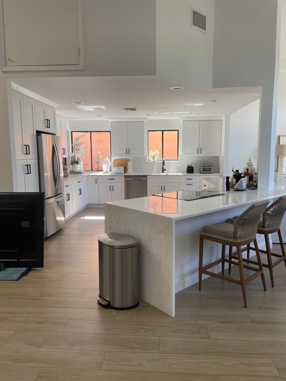 Villa Flora of Boca Pointe!! Renovated one story, single family home in desirable Villa Flora of BOCA POINTE. Brand new roof, brand new A/C, brand new stainless steel appliances. Italian porcelain plank flooring throughout. Completely open kitchen with white cabinetry and natural stone quartzite countertops with matching backsplash and waterfall edge. Custom built closets new doors and new hardware. Bathrooms encompass Italian porcelain flooring throughout as well as quartz countertops. BOCA POINTE is a NON mandatory equity membership community. You can get pricing for social and golf memberships.