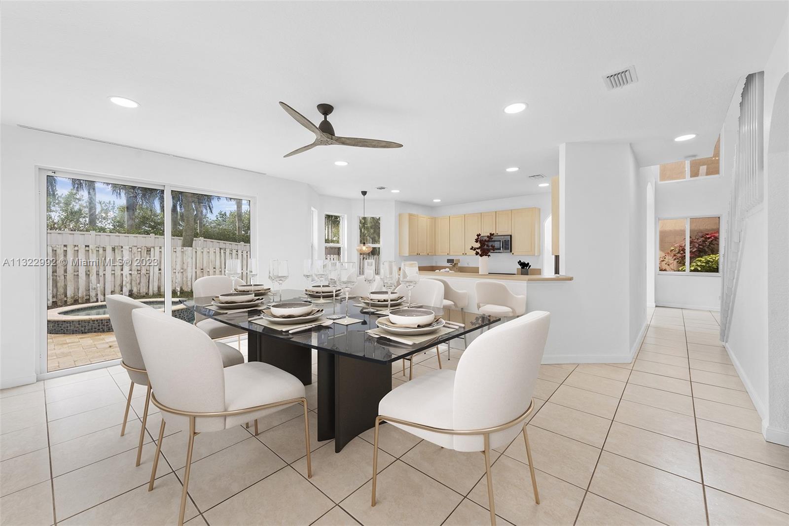 Amazing move-in-ready home in gated and desired Monarch Lakes community. 5BR/3BA home with large open layout kitchen/living area and new appliances throughout. Greatly distributed, light filled master suite, new bathroom and large walk in closet. 1 bedroom on the ground floor and 4 bedrooms upstairs including Master. All impact proof windows and doors updated in 2022. A beautiful garden and newly resurfaced pool and Jacuzzi welcomes you in the backyard. All plumbing updated and repiped throughout in 2022 along with new pool heater. New AC from 2021. Two car garage and large laundry/utility room. This home is conveniently located near great restaurants, entertainment and major highways. Priced to sell!
