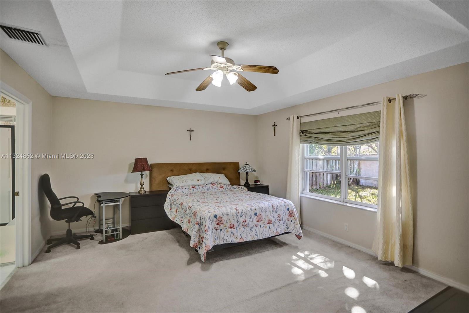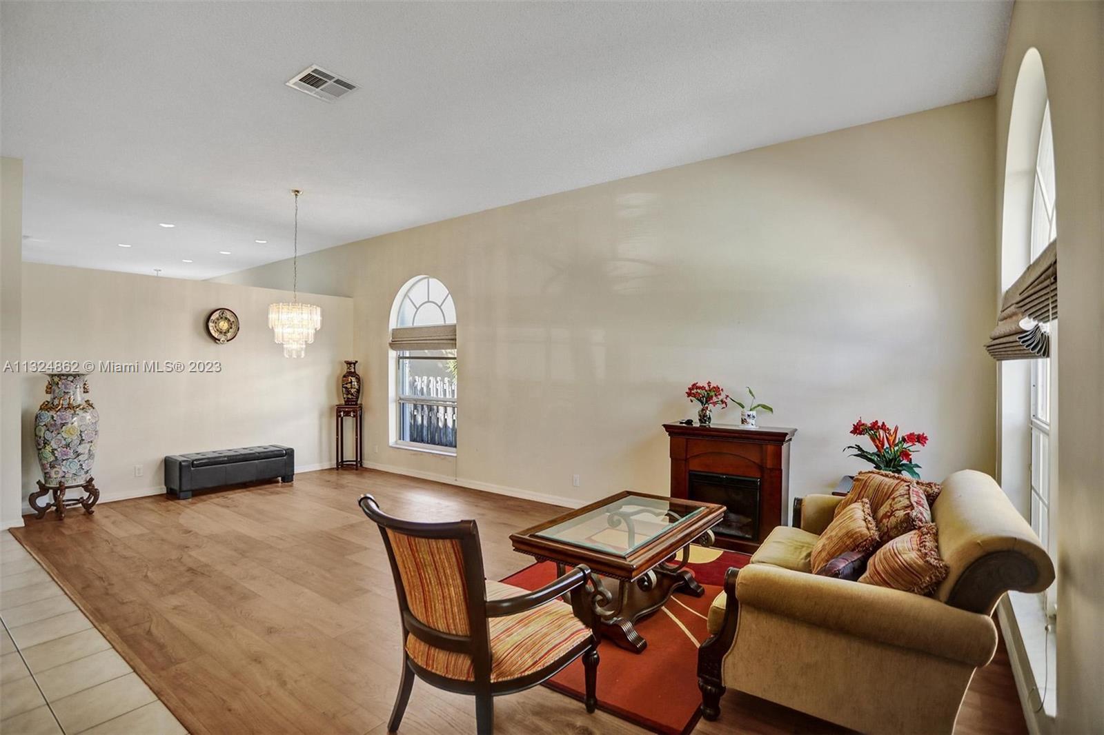 Nice 3 bed/2.5 bath home for sale in the highly sought-after gated community of Pembroke Falls. Featuring a split floor plan, this home includes an updated kitchen with Quartz countertops, white cabinetry, and a kitchen island. The master bedroom has tray ceilings and a large walk-in closet. A large living room/dining room combo and an additional family room with a breakfast nook provide ample space for entertainment. The home also boasts high ceilings, a newer A/C, and water heater, and accordion shutters throughout. Enjoy a large fenced backyard with plenty of space for outdoor activities. The community offers 4 manned security gates, a resort-style rec center, large community pool, 8 tennis courts, gym, and round-the-clock security.