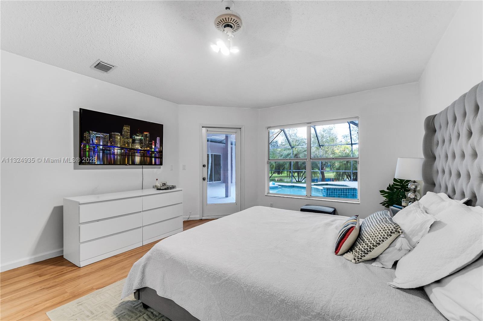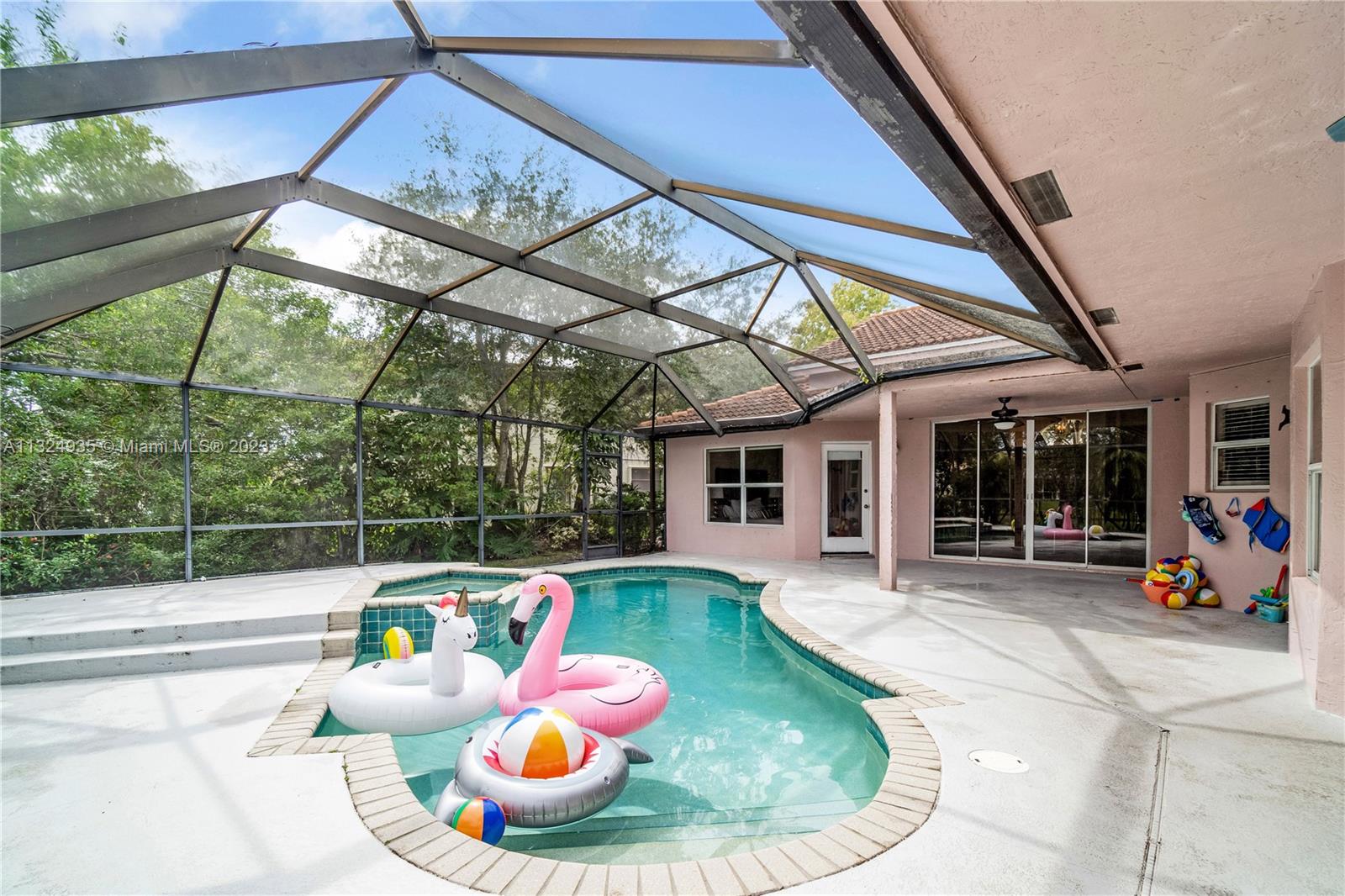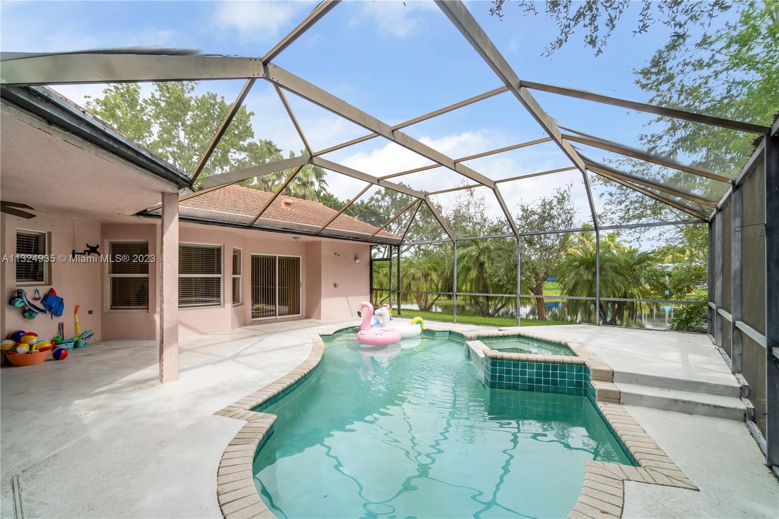 Priced to Sell. Stunning home with tranquil lake views in exclusive Sunset Springs community. The home offers an open living room and dining room, upgraded kitchen, family room and screened pool terrace enveloped by a lush tropical landscape. The expansive windows and doors filter lots of natural light and invite relaxation with generous living spaces and a seamless flow allowing for integrated indoor and outdoor living. The spectacular 1/4-acre setting affords you privacy and tranquil lake views from the pool terrace and is perfectly designed for both grand entertaining as well as intimate family living. It is truly a must see to appreciate in one of the most desirable neighborhoods.