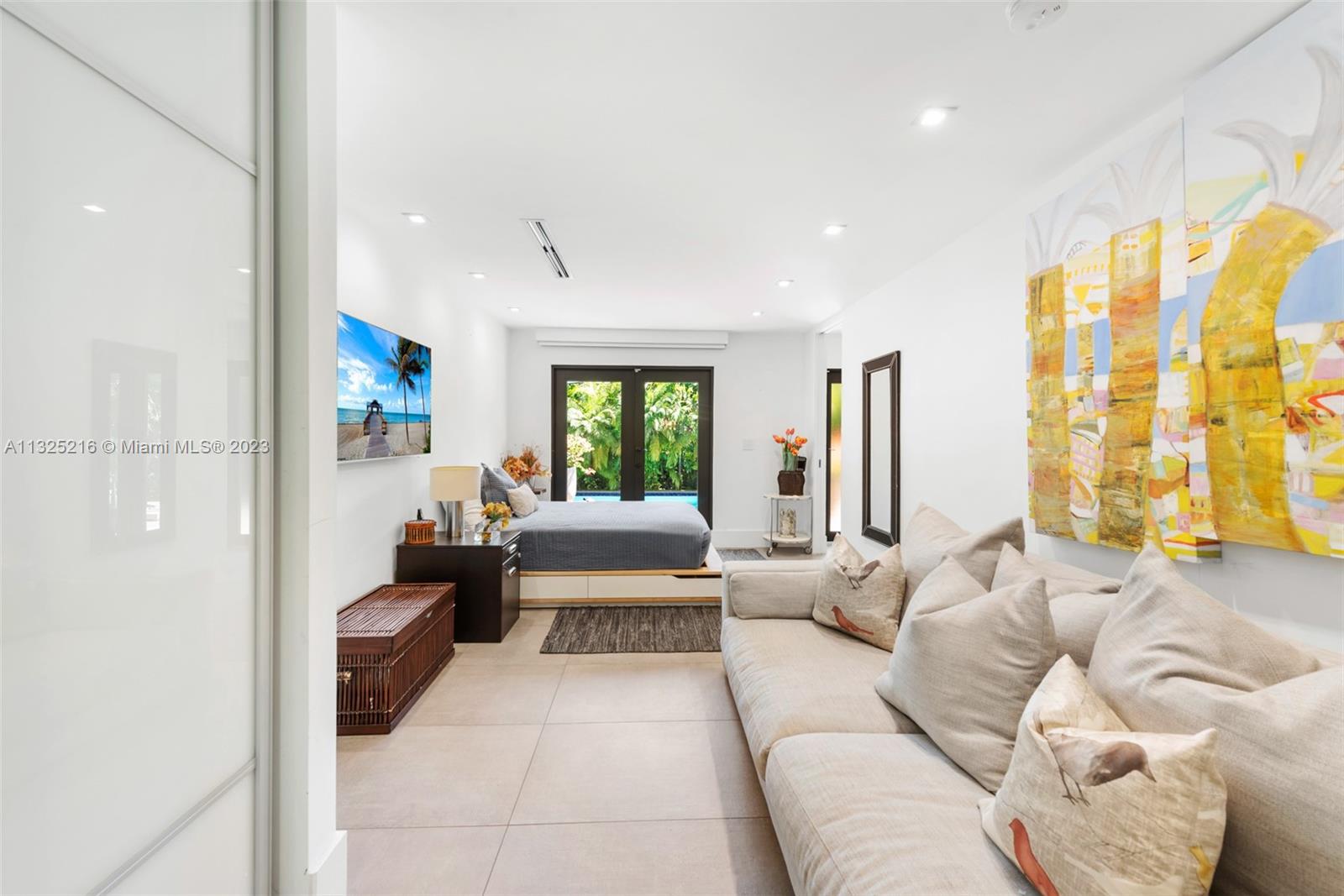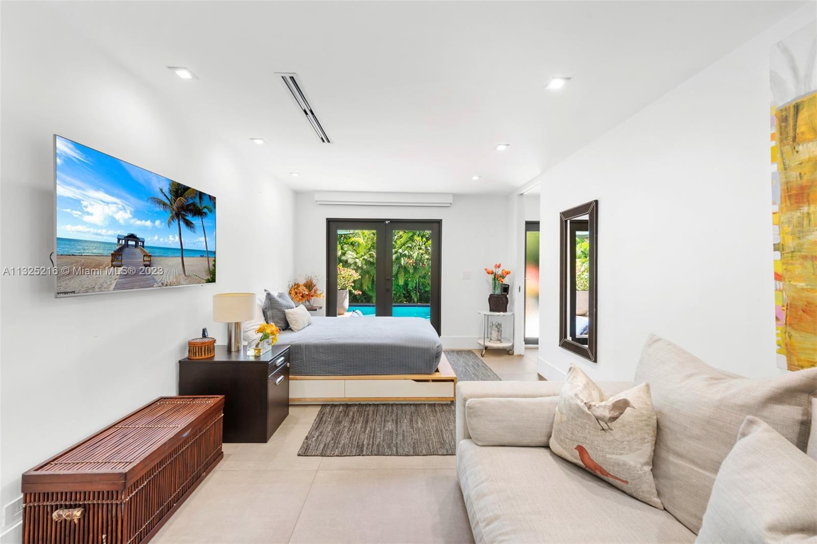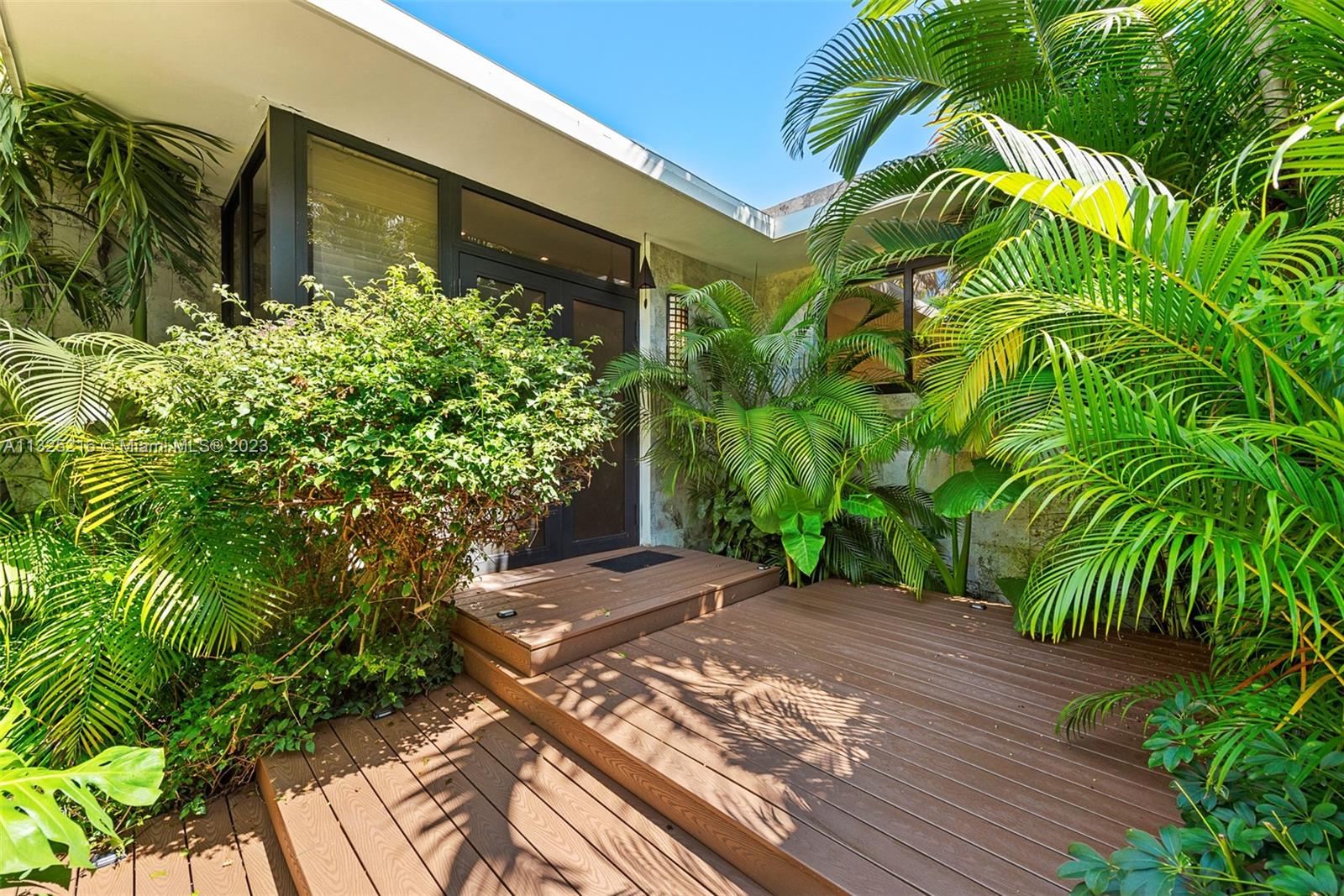 Beautiful Mid-Century oasis home surrounded by tropical lush gardens located on Miami Beach's premier guard gated Sunset Island I. Beautifully manicured entrance welcomes you to this light-filled, elegant one story 3BD/3BA home featuring 2,470 SF of interior living all facing the stunning expansive pool area with chic brand new hardwood deck with multiple entertaining areas, accessed from all bedrooms. Entirely updated home with natural light flowing throughout the home highlighting the spacious living room, high ceilings and contemporary gourmet gas kitchen with direct views of the serene green and lush outdoors pool and front areas. Easy to show.