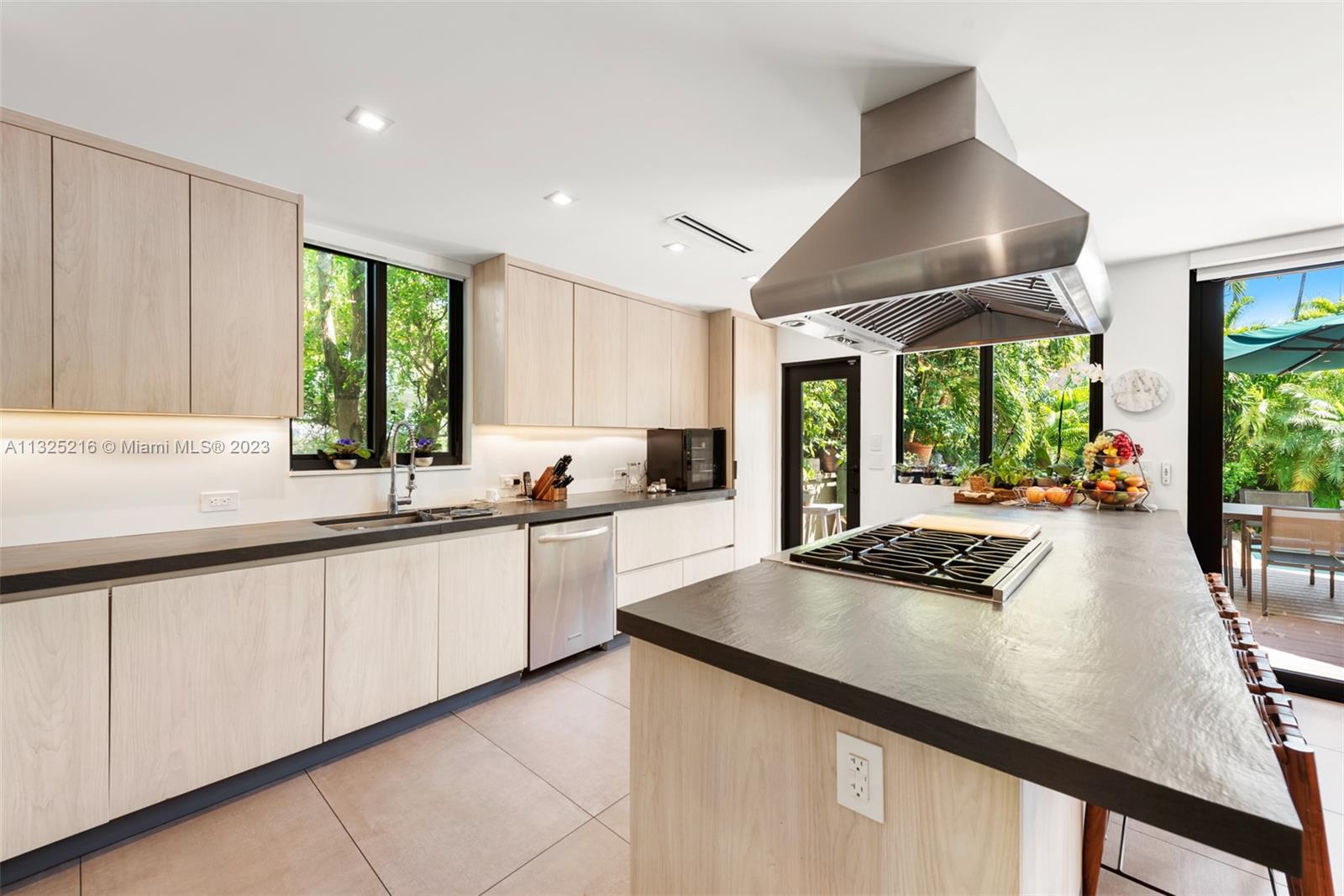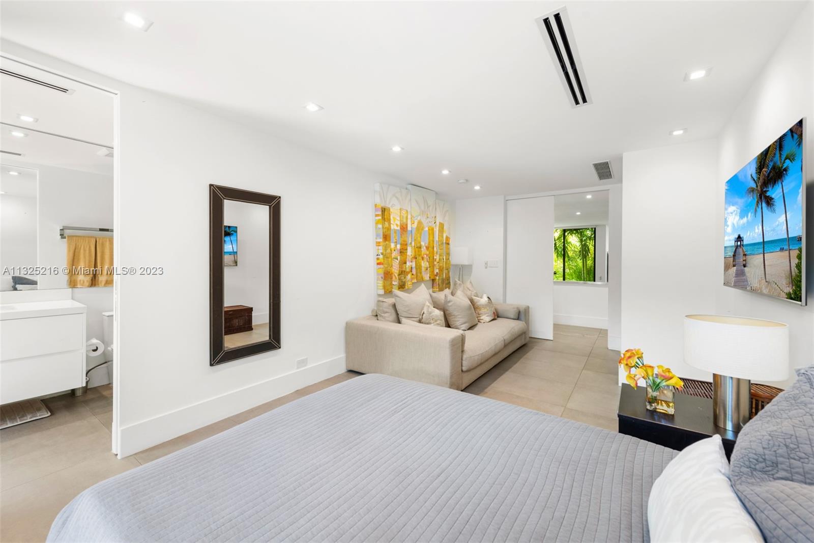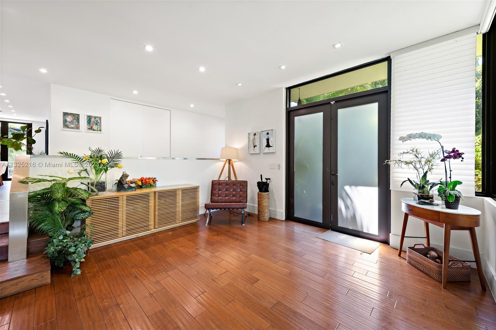 Beautiful Mid-Century oasis home surrounded by tropical lush gardens located on Miami Beach's premier guard gated Sunset Island I. Beautifully manicured entrance welcomes you to this light-filled, elegant one story 3BD/3BA home featuring 2,470 SF of interior living all facing the stunning expansive pool area with chic brand new hardwood deck with multiple entertaining areas, accessed from all bedrooms. Entirely updated home with natural light flowing throughout the home highlighting the spacious living room, high ceilings and contemporary gourmet gas kitchen with direct views of the serene green and lush outdoors pool and front areas. Easy to show.
