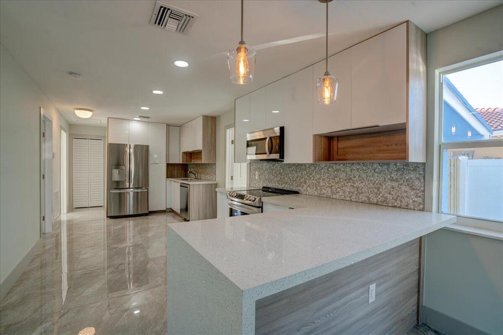 BRAND NEW!! Completely renovated single family CBS home in the Historic District of Northwood. THIS HOME FEATURES large 33*33 porcelain tile throughout house. The kitchen includes luxury European cabinets, smart stainless steel appliances, waterfall quartz counter top. Updates includes, recessed lighting and seamless walk in shower. Freshly painted inside and out, new landscaping including new sprinkler system with fully enclosed privacy fence. Additionally impact windows and doors and custom walk in closet. Located just minutes from the Intracoastal waterway, Palm Beach Outlets, Palm Beach International Airport, I-95 and other major thoroughfares.
