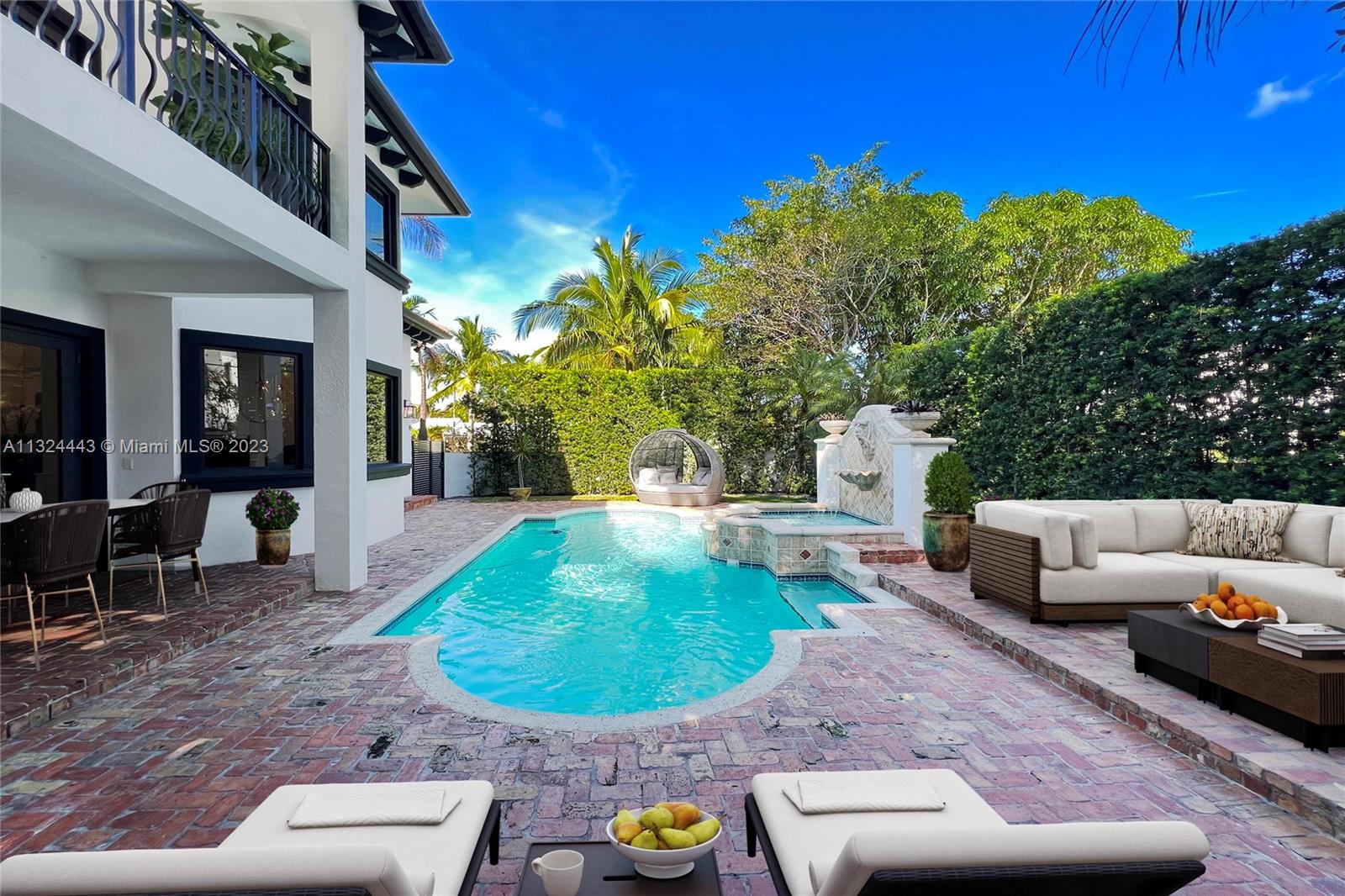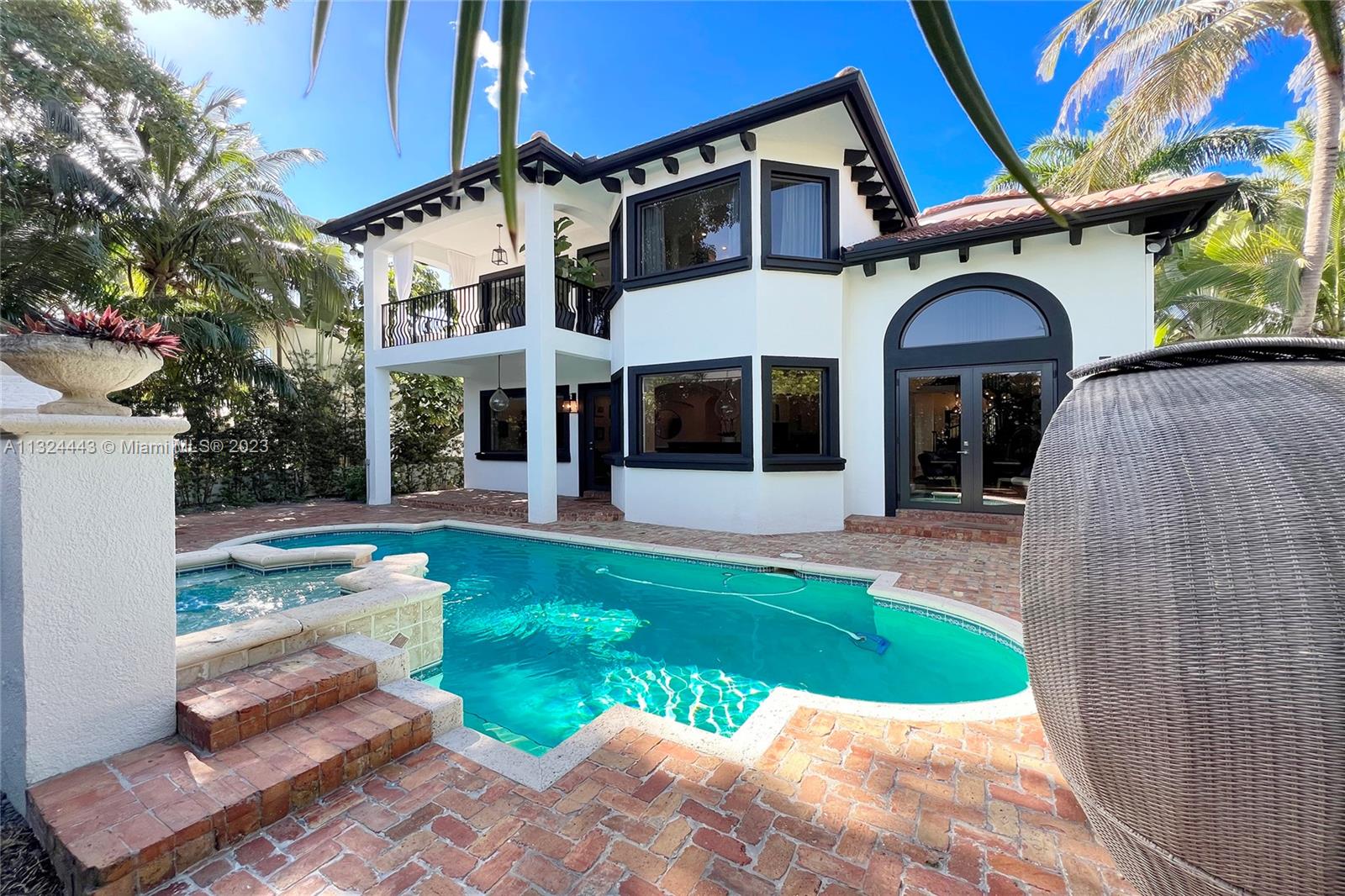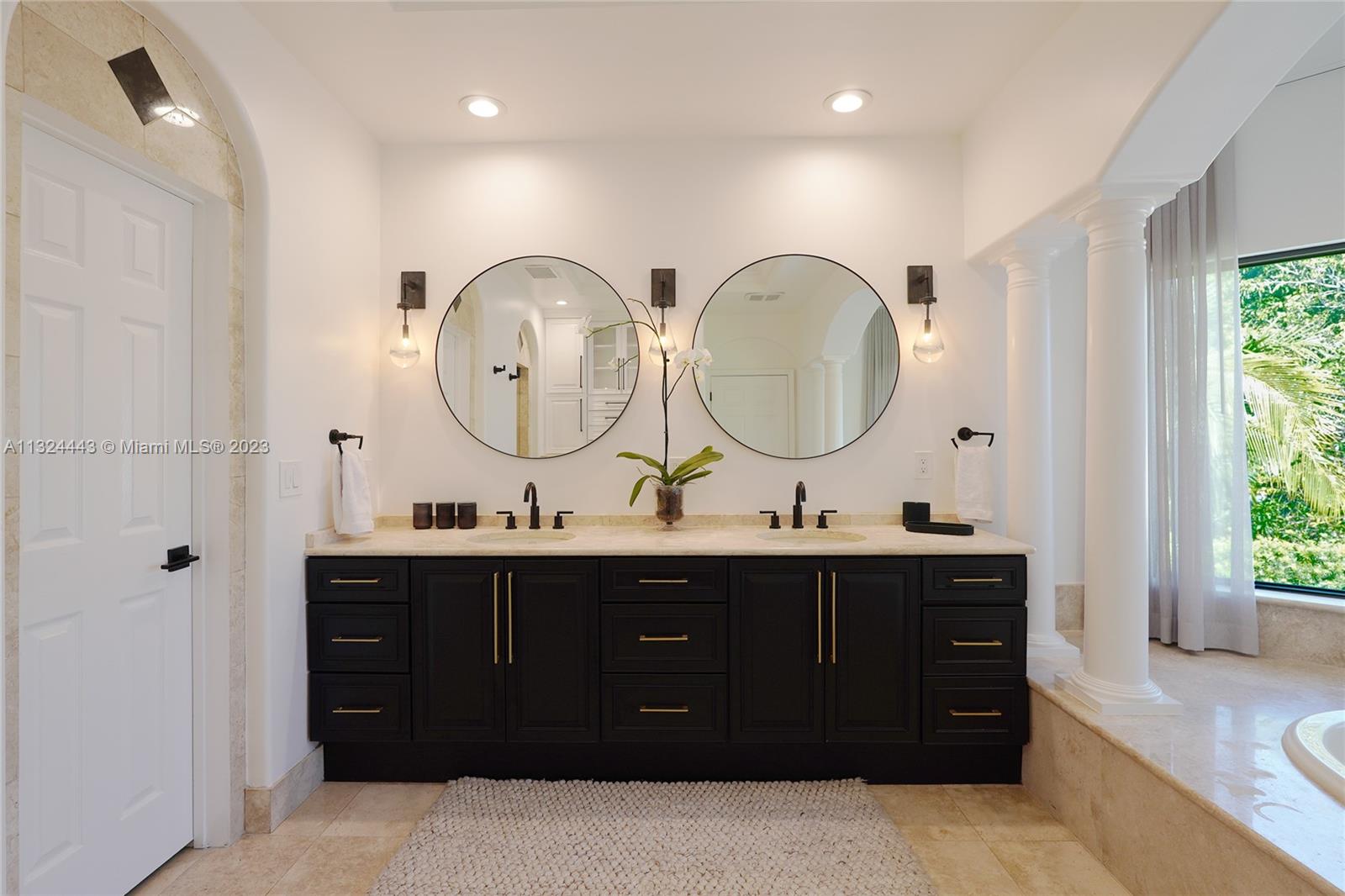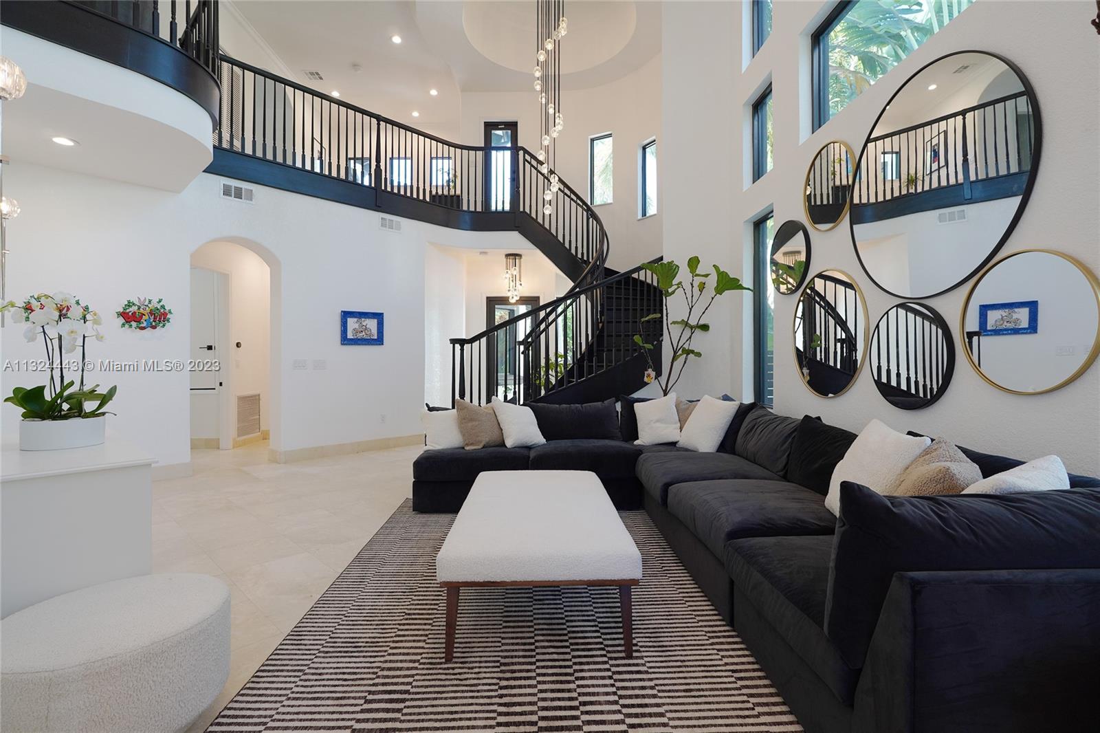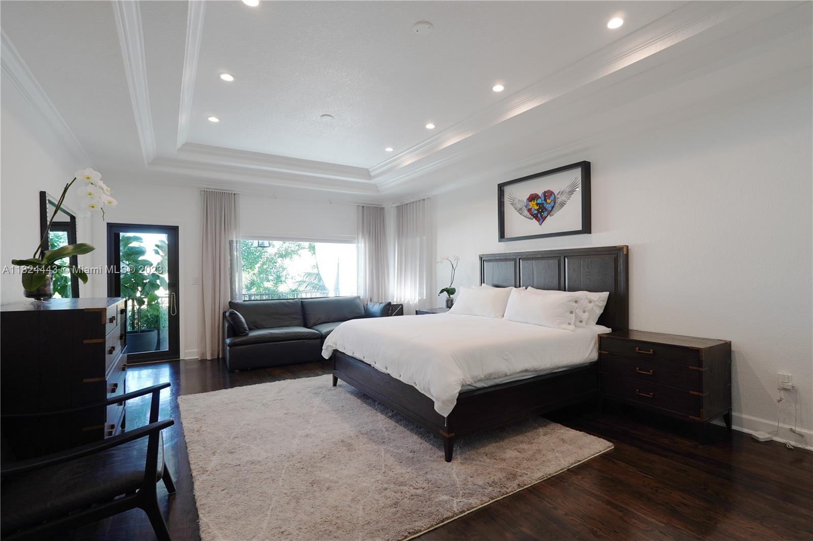 Beautifully remodeled 2 story Spanish Mediterranean home on prestigious La Gorce Drive. This residence boasts an open flow concept with 5 bedrooms, 4 bathrooms, formal and informal living spaces, 13ft ceiling heights, hardwood floors, an abundance of natural light, open eat-in kitchen, separate breakfast nook, & laundry room. The spacious primary bedroom features a private balcony overlooking the pool, walk-in closets, double vanity, and a large steam shower. Upgrades include new exterior lighting, impact doors & windows, pool heater, pool pump, sprinkler system, and more. A car collectors dream 4 car climate-controlled garage w/ garage lift. Private landscaped backyard offers a heated saltwater pool & spa perfect for entertaining.