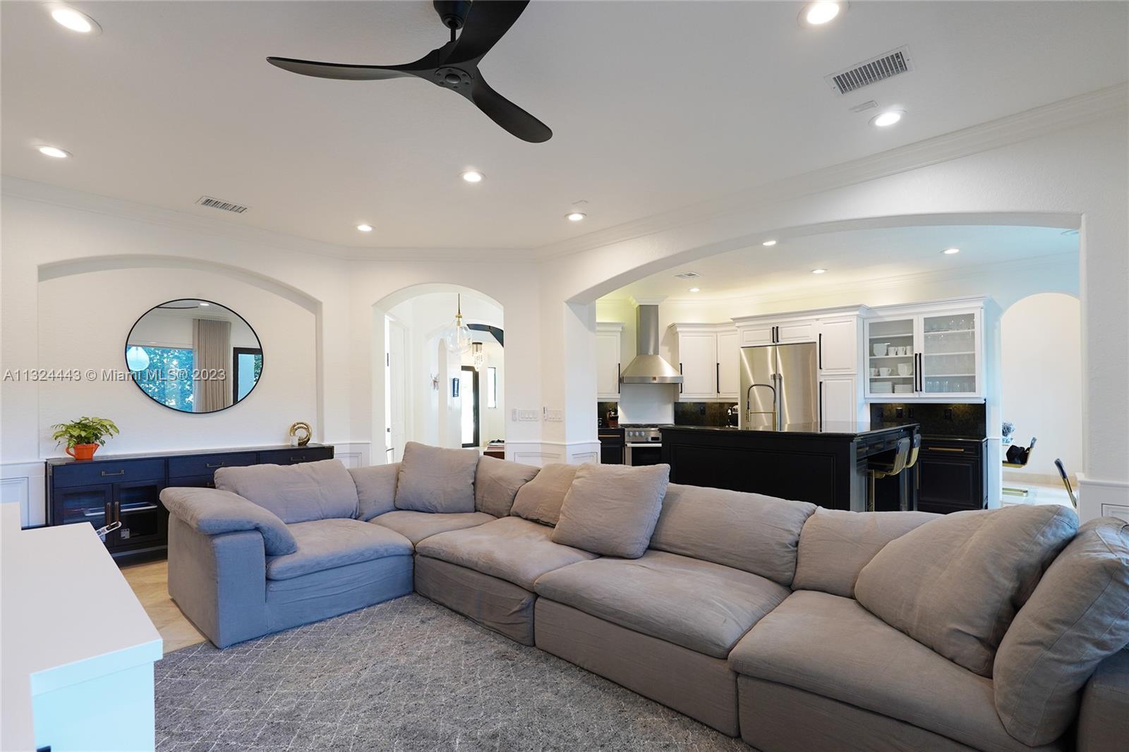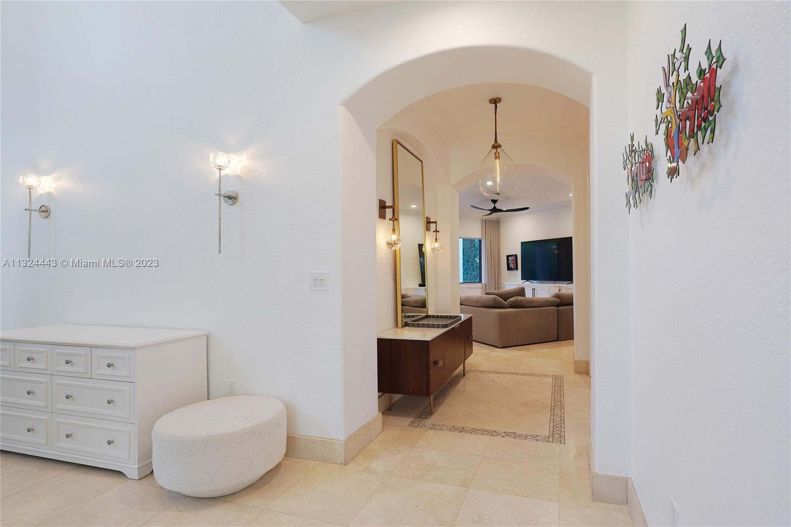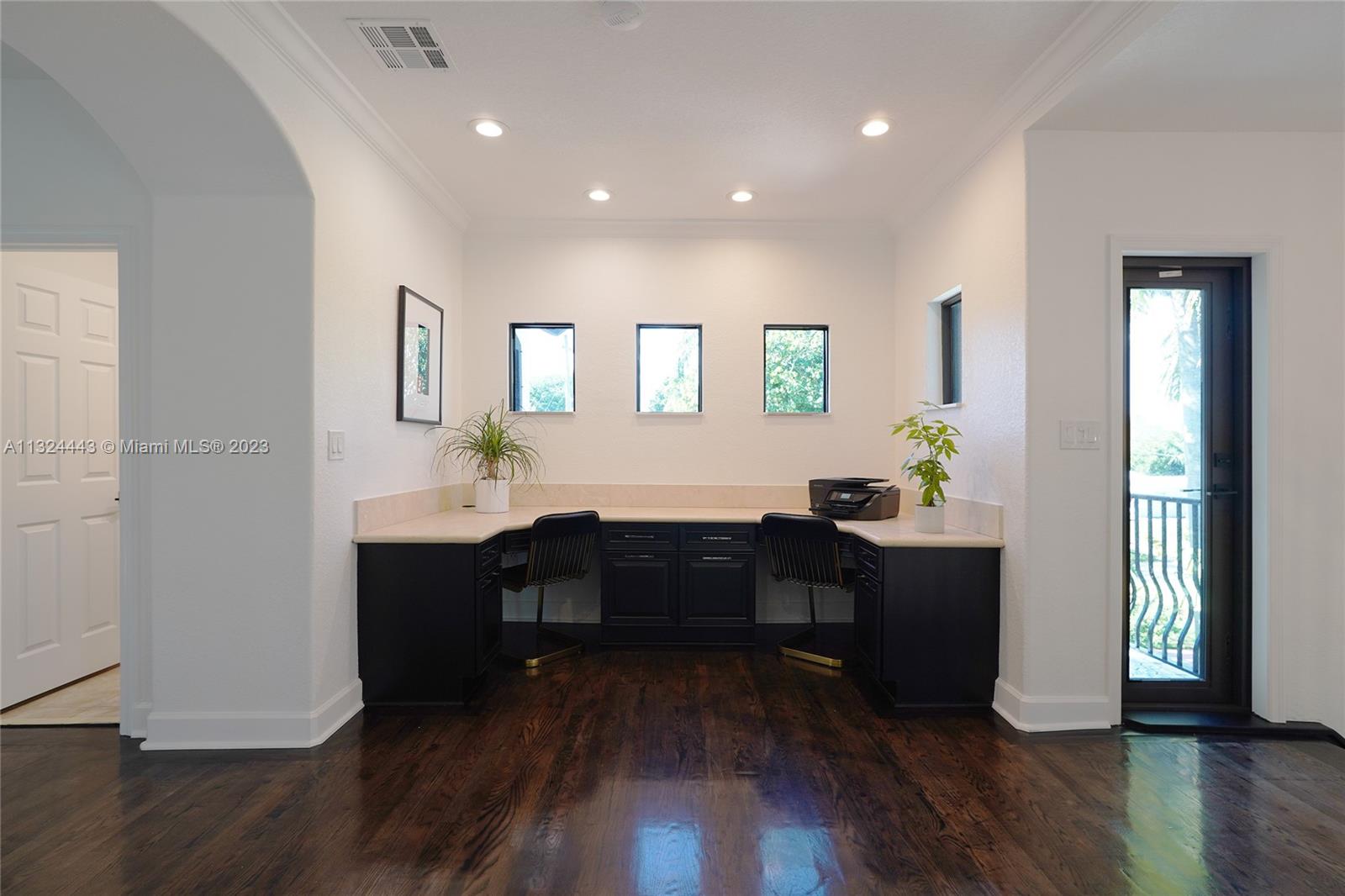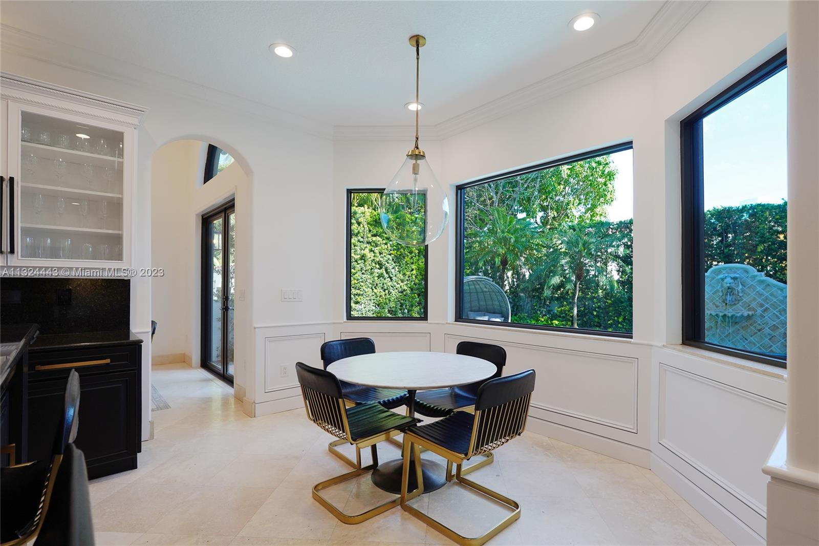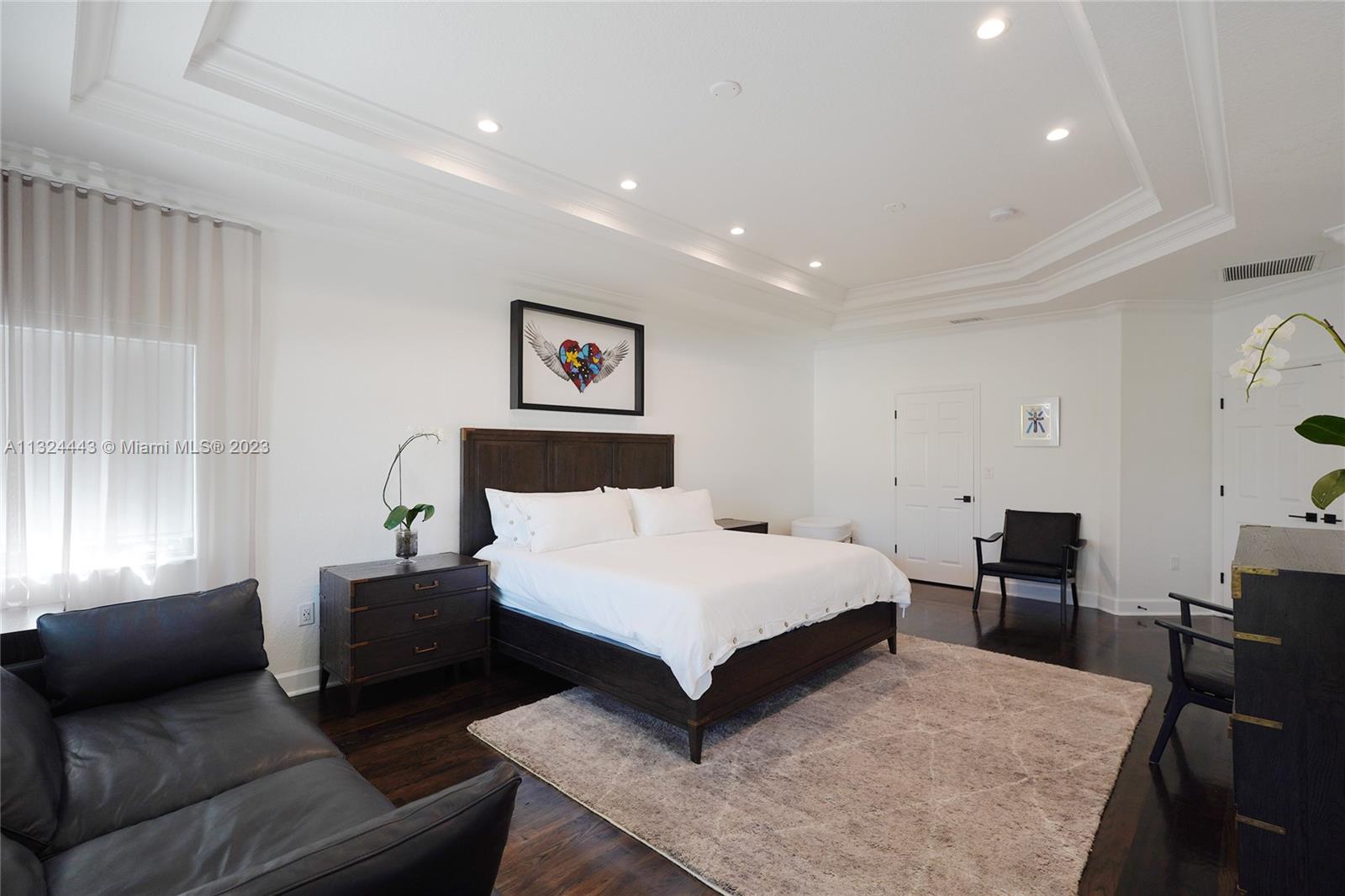 Beautifully remodeled 2 story Spanish Mediterranean home on prestigious La Gorce Drive. This residence boasts an open flow concept with 5 bedrooms, 4 bathrooms, formal and informal living spaces, 13ft ceiling heights, hardwood floors, an abundance of natural light, open eat-in kitchen, separate breakfast nook, & laundry room. The spacious primary bedroom features a private balcony overlooking the pool, walk-in closets, double vanity, and a large steam shower. Upgrades include new exterior lighting, impact doors & windows, pool heater, pool pump, sprinkler system, and more. A car collectors dream 4 car climate-controlled garage w/ garage lift. Private landscaped backyard offers a heated saltwater pool & spa perfect for entertaining.