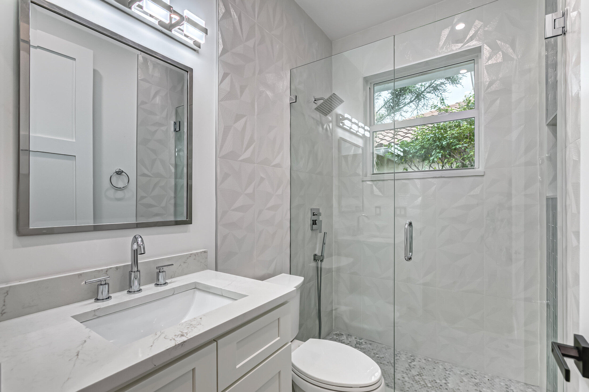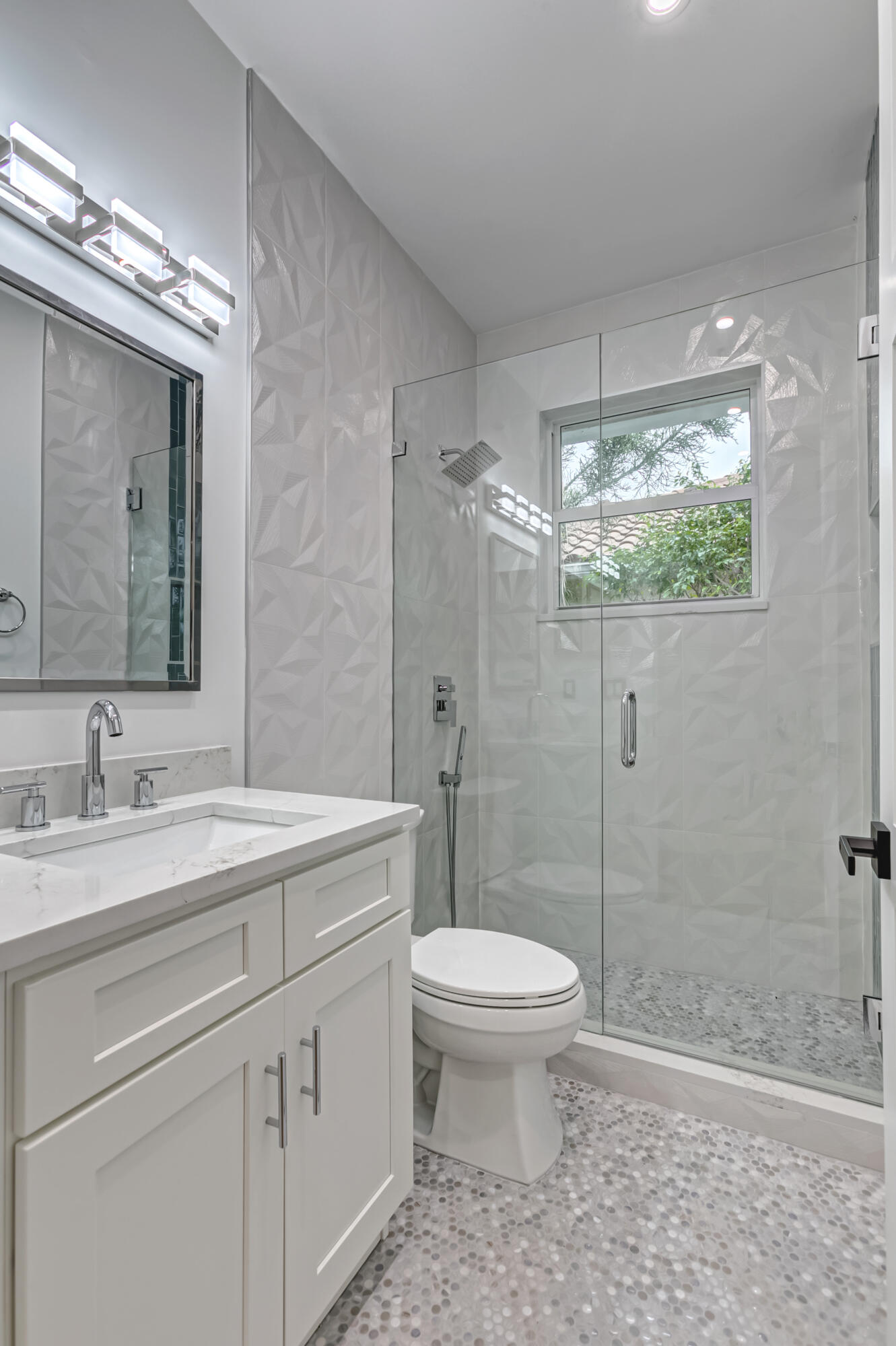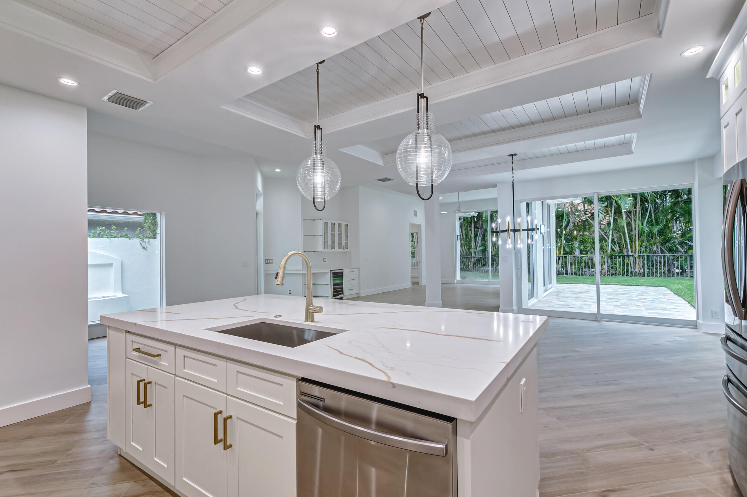 Masterfully designed, this exquisite home has been COMPLETELY renovated with impeccable craftsmanship throughout every detail. Privately nestled in the exclusive enclave community of REGENTS PLACE, this single-story residence is ideal for today's contemporary lifestyle. This reimagined home was enlarged to allow for nearly 2,100 SF and features 3 bedrooms including incredible master suite, 2 full bathrooms plus powder room, 2 car garage, separate living and dining rooms, expansive kitchen surrounded by all new impact windows and doors. From the moment you enter through your private gate, this inviting home feels like your own exclusive paradise. Designed with precision and perfection, this exquisite open floor plan is adorned with soaring ceilings, stunning Woodville natural tile flooring,