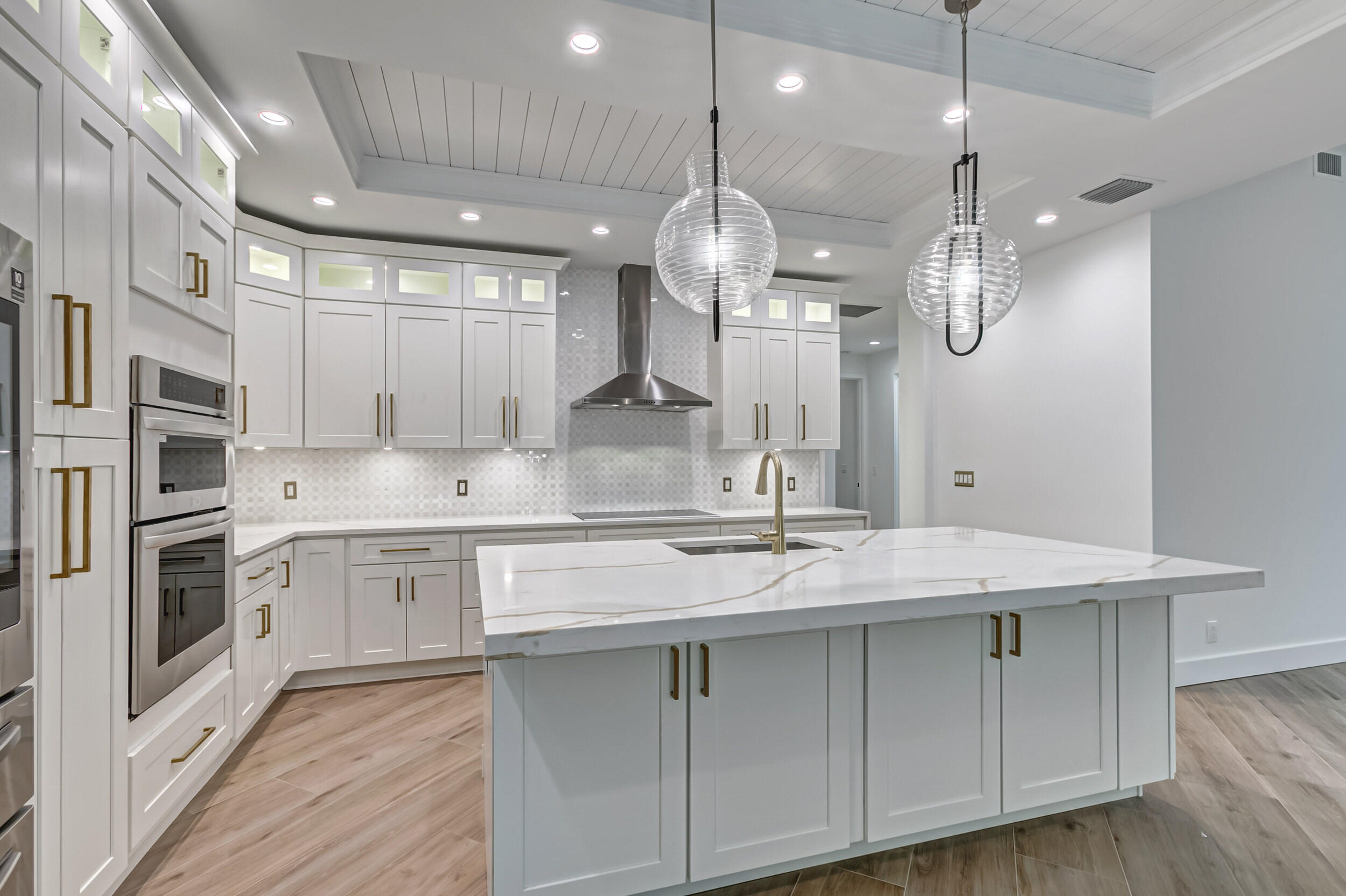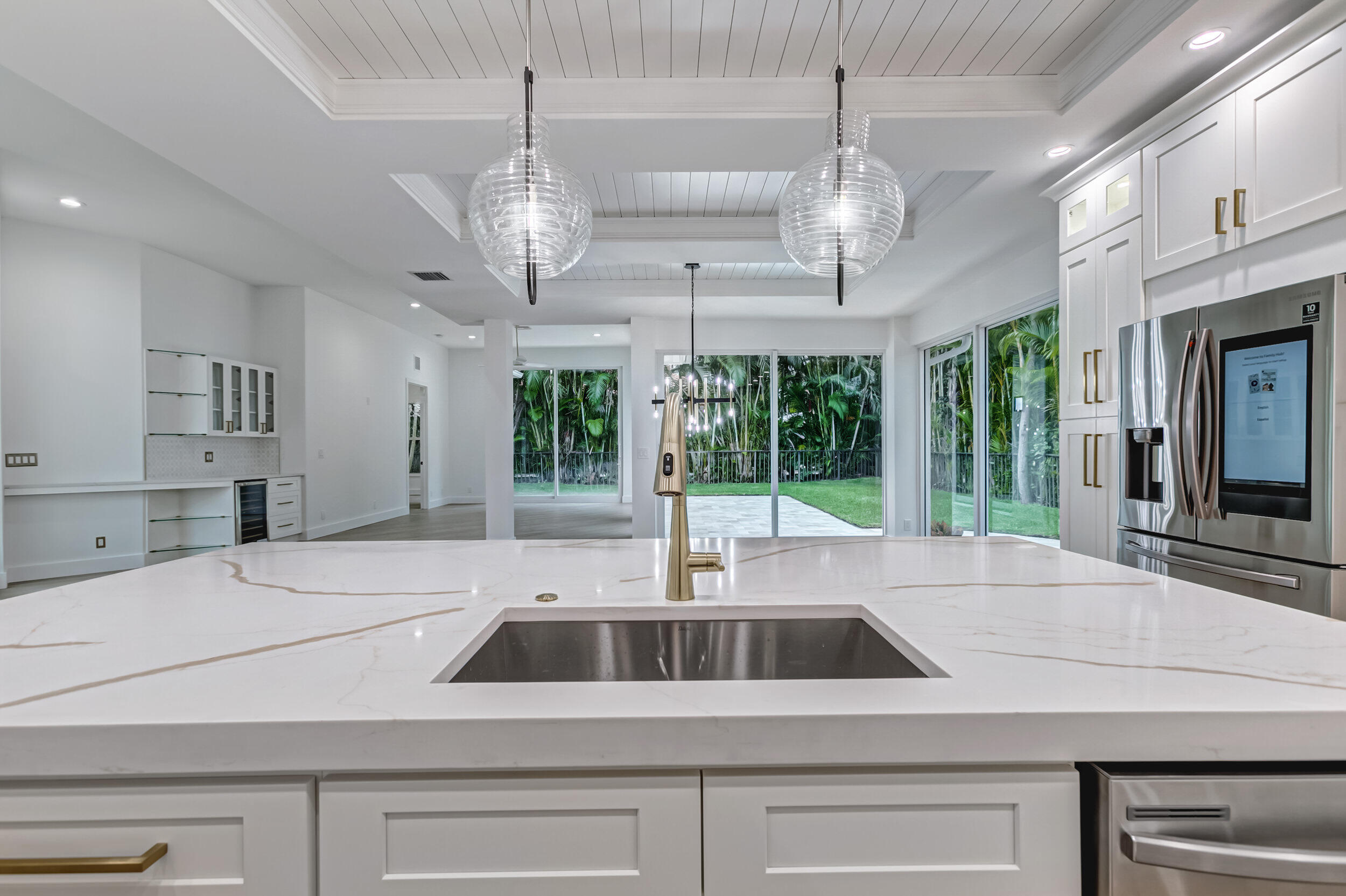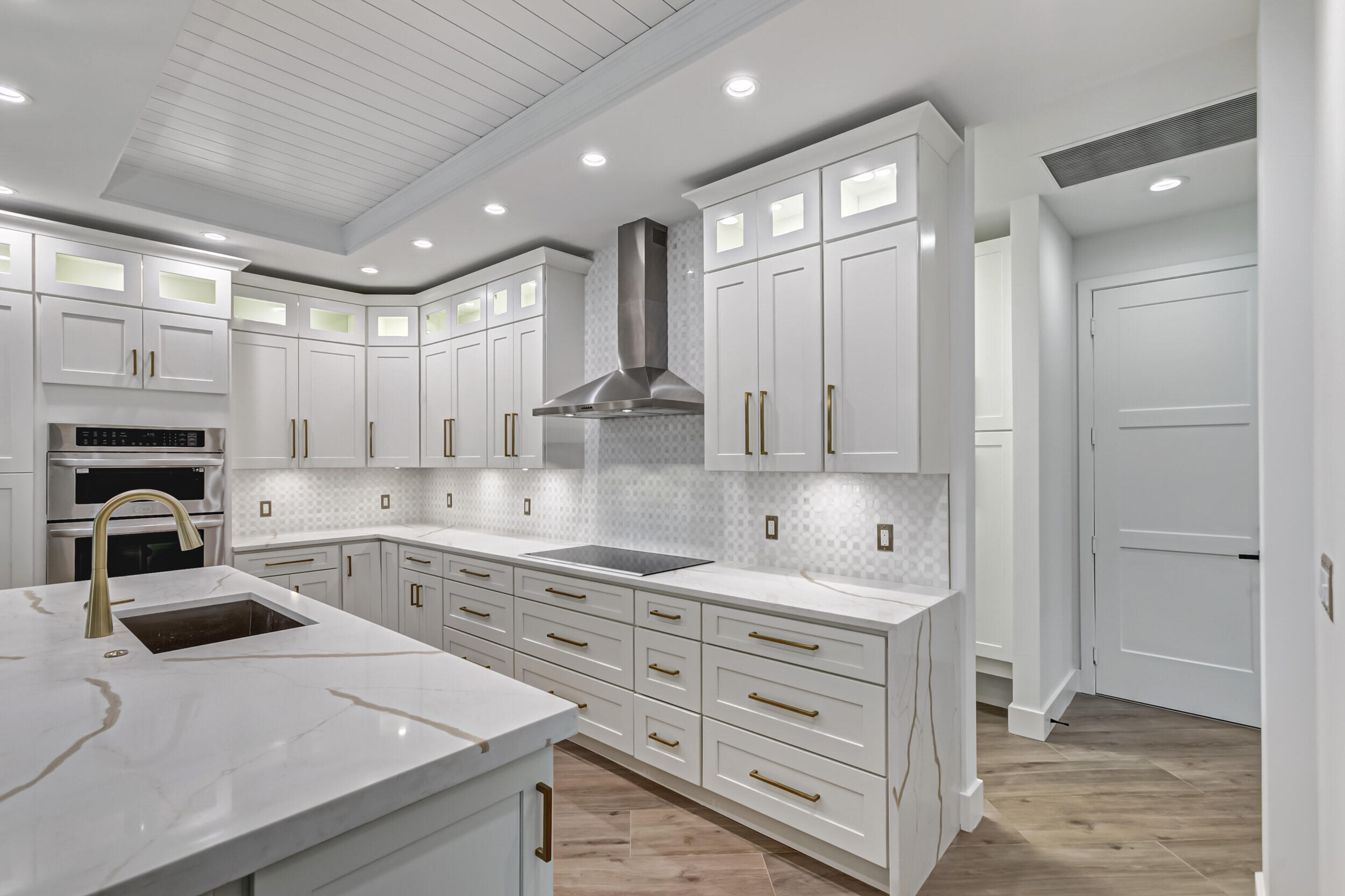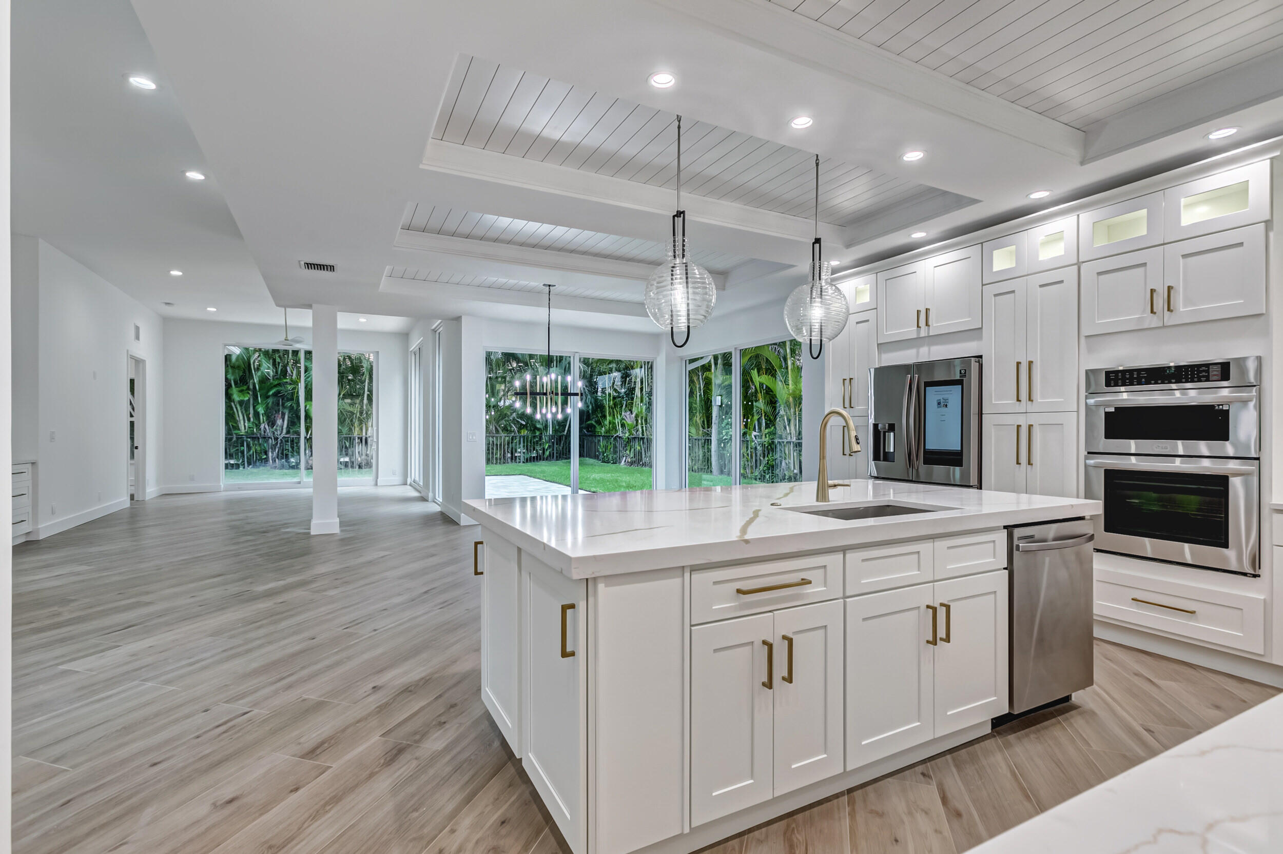 Masterfully designed, this exquisite home has been COMPLETELY renovated with impeccable craftsmanship throughout every detail. Privately nestled in the exclusive enclave community of REGENTS PLACE, this single-story residence is ideal for today's contemporary lifestyle. This reimagined home was enlarged to allow for nearly 2,100 SF and features 3 bedrooms including incredible master suite, 2 full bathrooms plus powder room, 2 car garage, separate living and dining rooms, expansive kitchen surrounded by all new impact windows and doors. From the moment you enter through your private gate, this inviting home feels like your own exclusive paradise. Designed with precision and perfection, this exquisite open floor plan is adorned with soaring ceilings, stunning Woodville natural tile flooring,