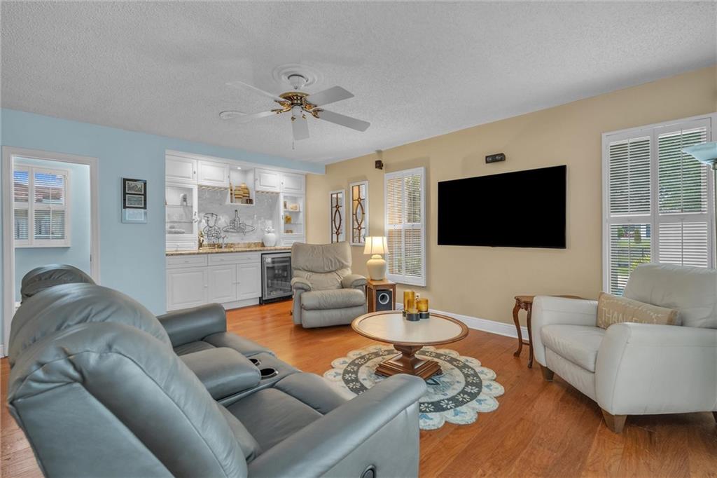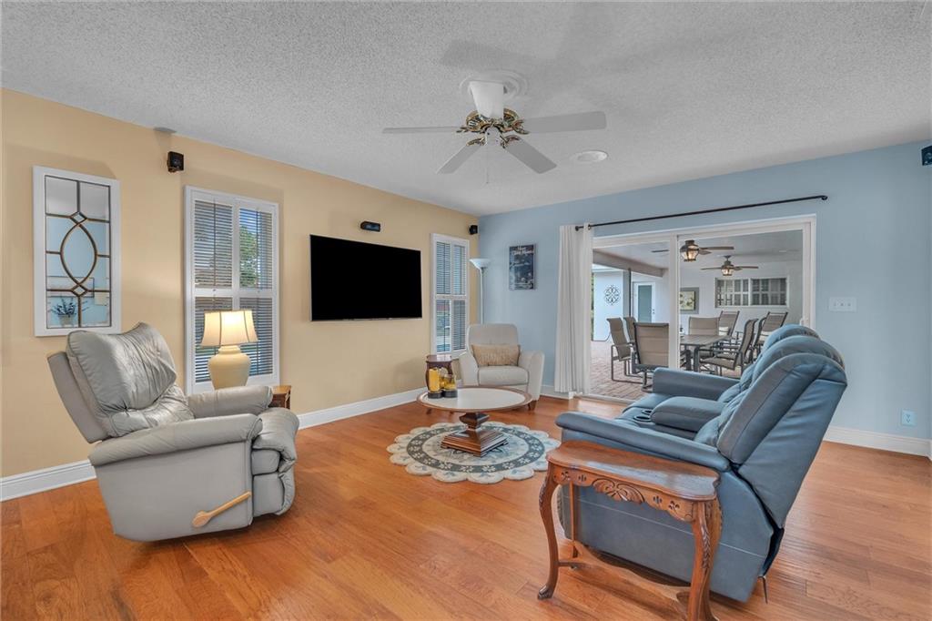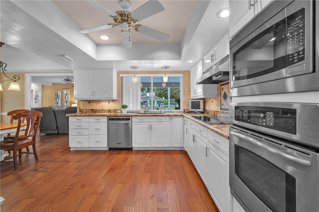 Must See, Move-In Ready, Well-Maintained, Waterfront Home in Guard Gated El Dorado Estates! The backyard offers Florida living at its finest - large, covered patio, extended paver pool deck, green space, seawall, fenced & private dock w bench seating situated on a wide canal leading to lake access. Updated interior offers tile/wood floors, crown molding, custom window treatments & plantation shutters. Eat-in kitchen has granite countertops, tile backsplash & SS appliances. A custom wet bar with wine cooler is perfect for entertaining. Add'l Features include New Roof (2018), impact windows/doors, & freshly painted exterior. Excellent location offers quick access to downtown, shopping, all major highways, air & seaports. Community amenities: clubhouse, playground, volleyball & tennis court.