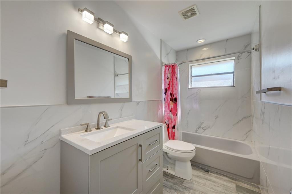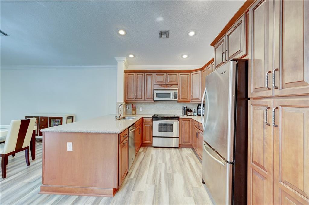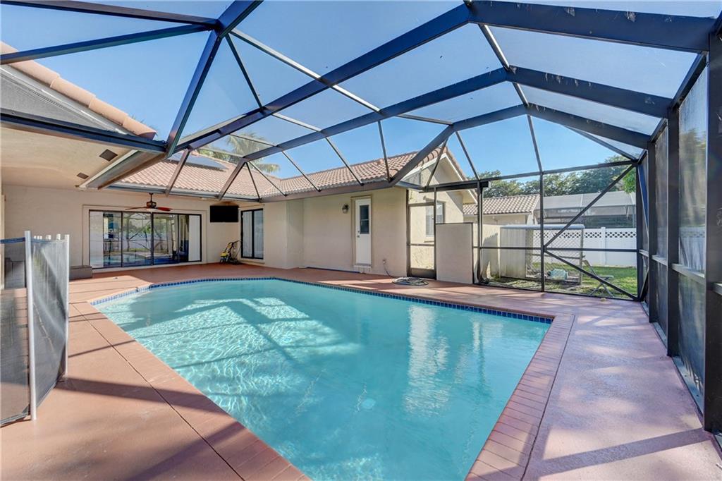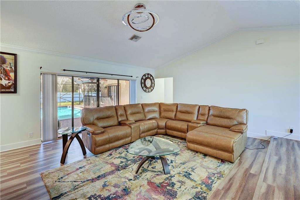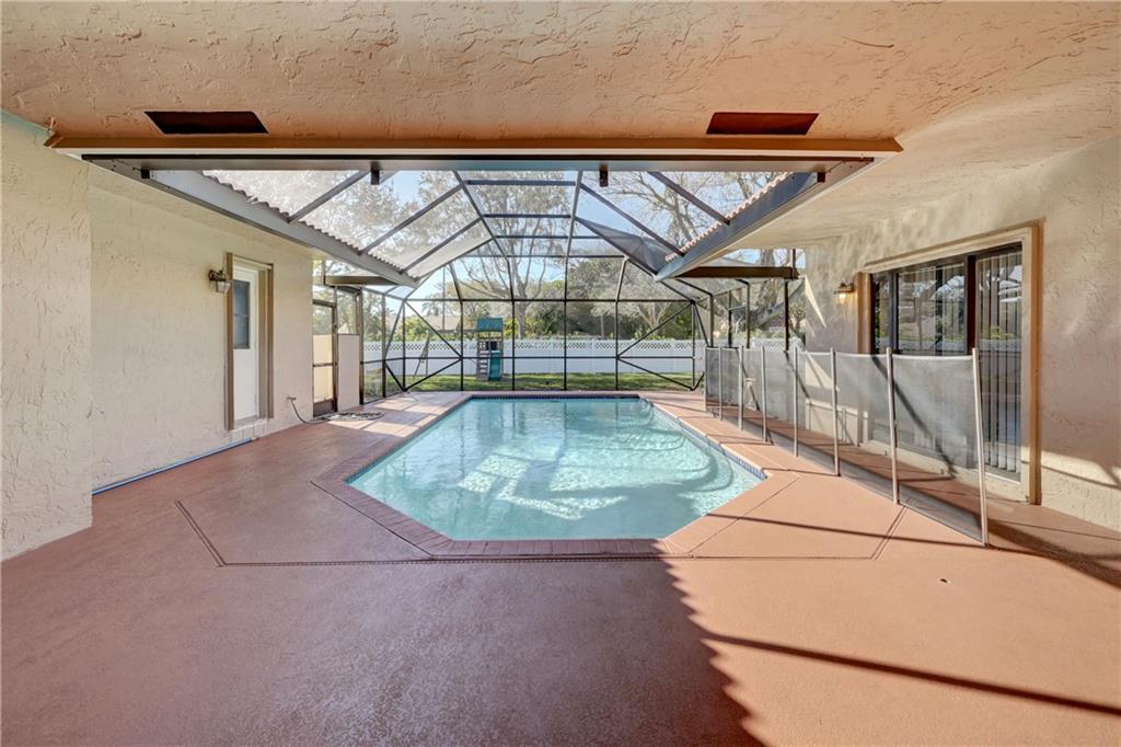 Exceptional Pool Home nestled on a large lot in the community of Pine Ridge. This model highlights an open floor plan showcasing 4BR's, a den & 2 BTH's. The beautifully remodeled kitchen features impeccable stone tops & SS appliances. Both BTHR's have been tastefully updated w/ new vanities, stunning tile, a glass enclosed shower & roman tub. The home is accented with dazzling new lighting, new vinyl wood flooring, & crown molding. For peace of mind during storm season, the home has Accordion Shutters throughout. Enjoy privacy in the newly fenced backyard and take a dip in the screened in pool. Solar Panels installed to save on utilities, and a circular driveway large enough for all your vehicles.