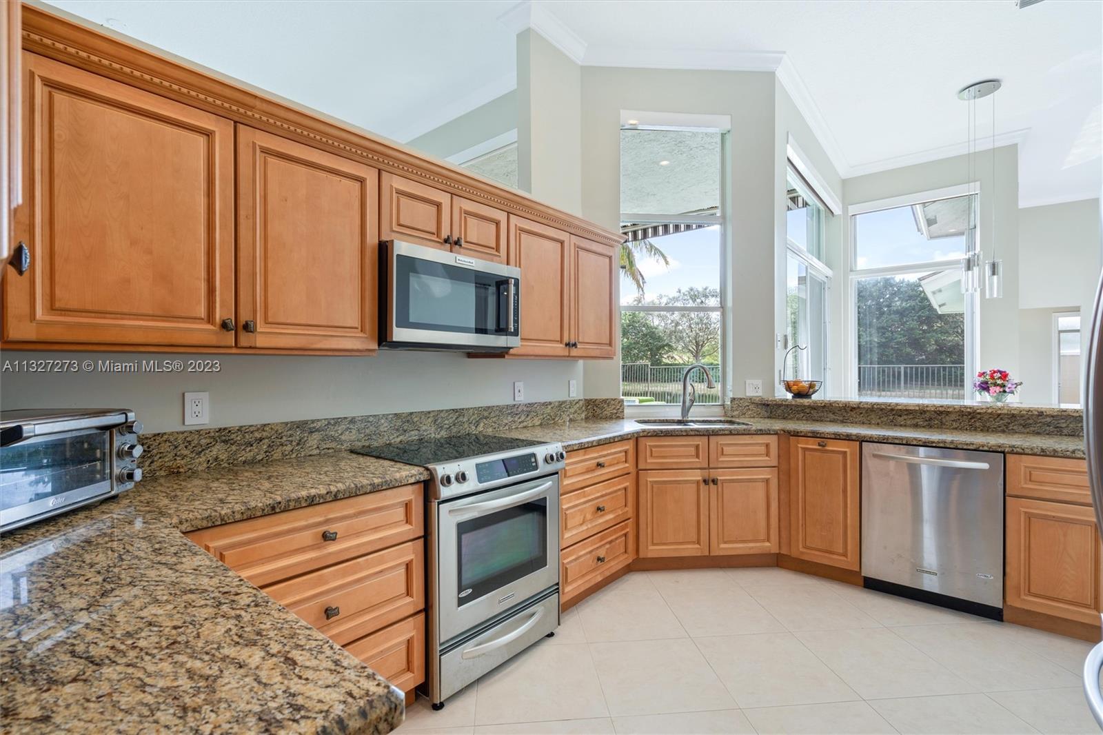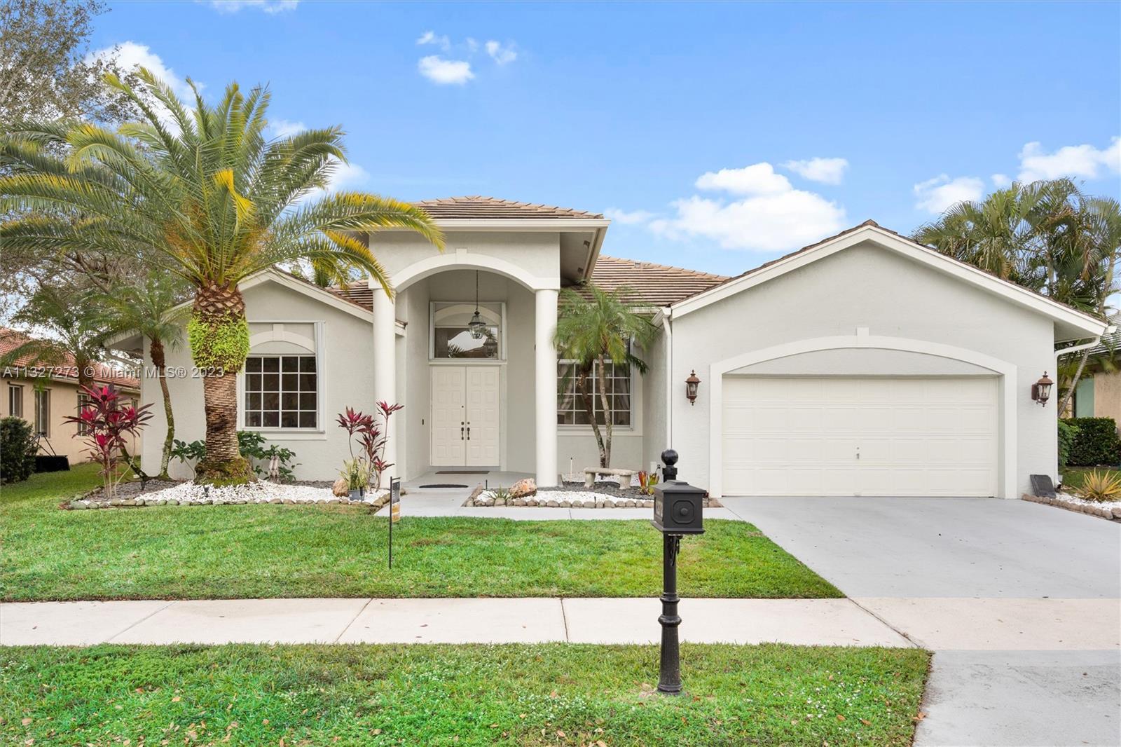 New ROOF is to be completed prior to closing. This beautiful one-story home is located in the heart of Weston, The Islands. The home sits on a lakefront and features a heated swimming pool with a spa, and salt chlorination, perfect for enjoying the outdoor views. It includes 5 bedrooms and 3 full baths with a three-way split floor plan. The kitchen has been updated with granite counters, wood cabinets, and stainless-steel appliances, the bathrooms have also been tastefully updated. Bedrooms feature engineered wood floors and accordion shutters throughout the home. The Island is a smaller, high-end community, surrounded by a panoramic lake and is within walking distance of Weston Town Center restaurants and shops. The backyard fence can be extended to the property line.