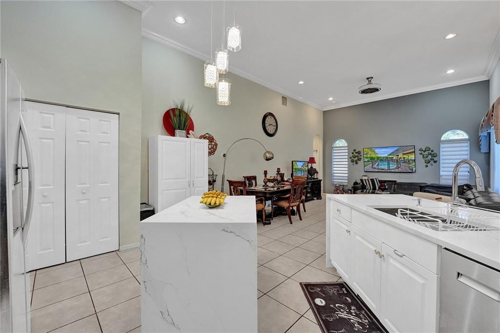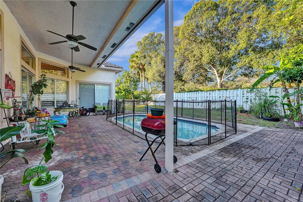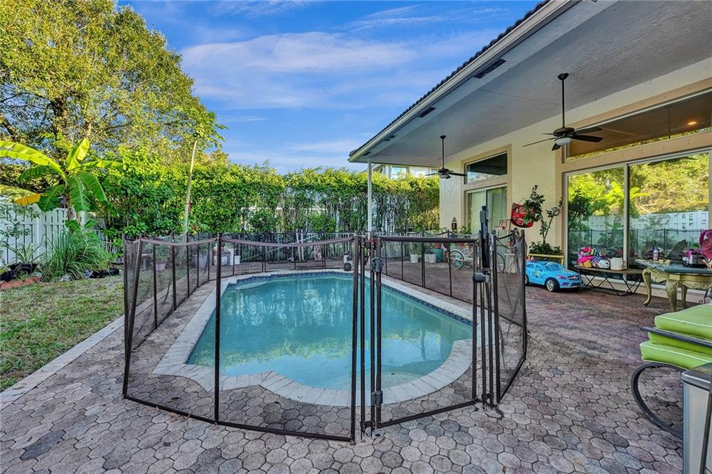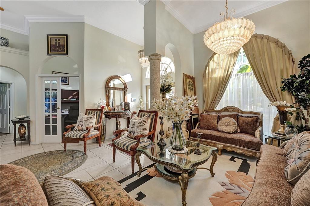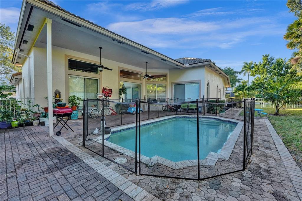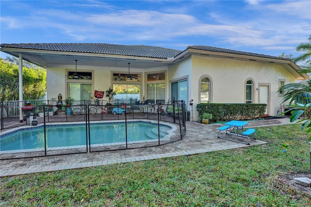 Rarely available Windsor Bay Coral Springs gated community triple split home. There are 4 bedrooms, plus den-office, and 3 full baths renovated in 2022. Updated kitchen with waterfall island countertop. The dining and formal living rooms are currently flipped to accomodate an extra large dining table as an option. The home features crown moldings, tray and volume ceilings, two jetted tubs in main bedroom and hall bath. The master suite has upgraded cabinetry, California closets. plantation shutters and an oversized shower and separate jacuzz tubi. Large family room and breakfast nook off the kitchen with sliders which open to the covered porch and pool with large pavers. The custom transitional shades and valance are exquisite. Dual zoned AC units.