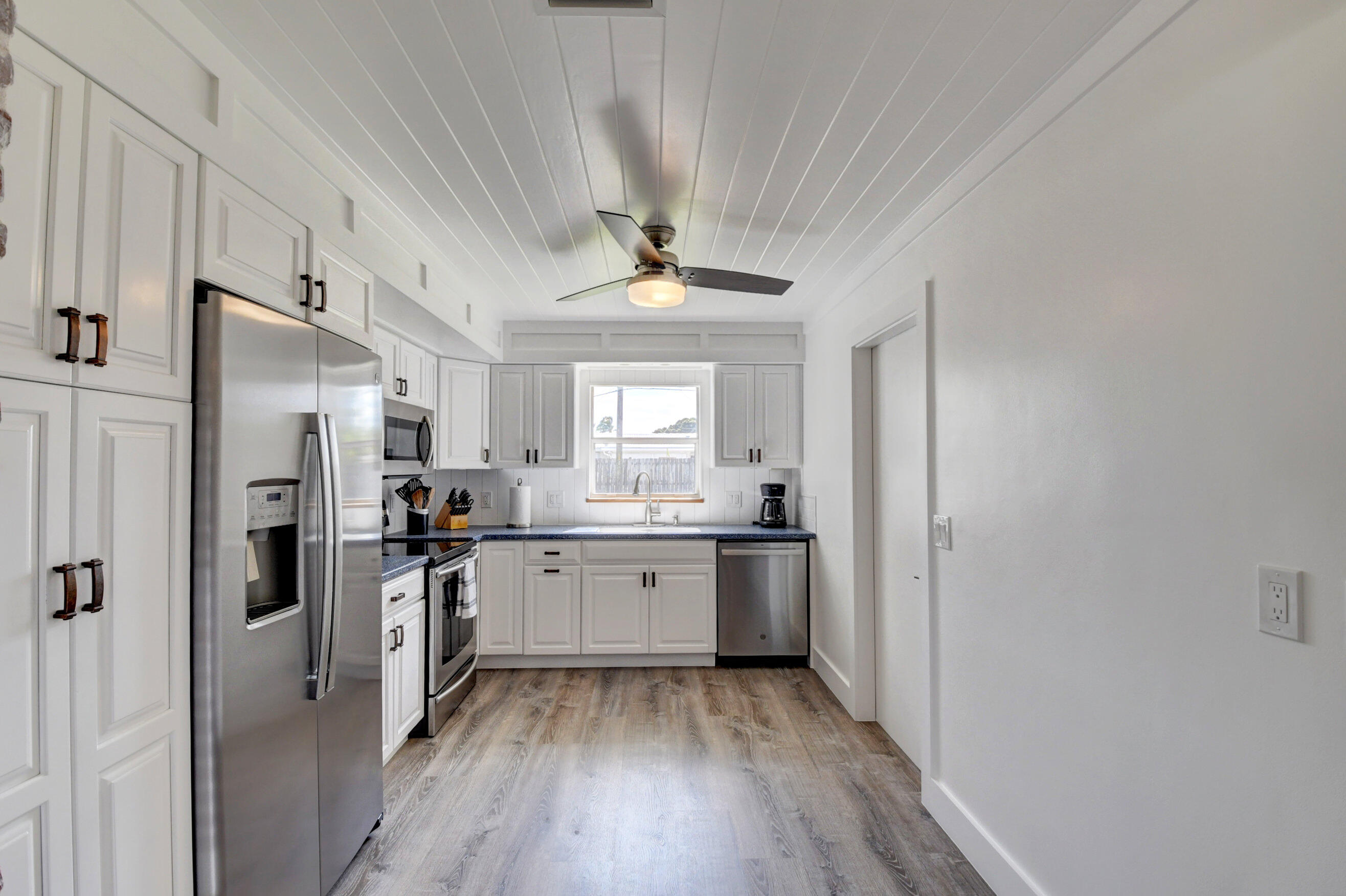 Now's your chance to own this charming pool home located in the heart of Boca - near downtown with close proximity to Mizner Park, FAU and the beaches! This home has been fully renovated with expert craftsmanship, quality finishing details and many custom upgrades. There is a lot of natural light flowing through the home while the open floor plan allows for easy entertaining whether in the living room, dining room or sunroom. The kitchen features white cabinetry, Corian counters and stainless appliances with views of the back yard. The primary bedroom features 2 barn-style doors for the custom-designed walk-in closet and ensuite bath that is equipped with a custom fabricated vanity and walk-in shower. The hall bathroom has similar finishes. Other interior features include luxury vinyl