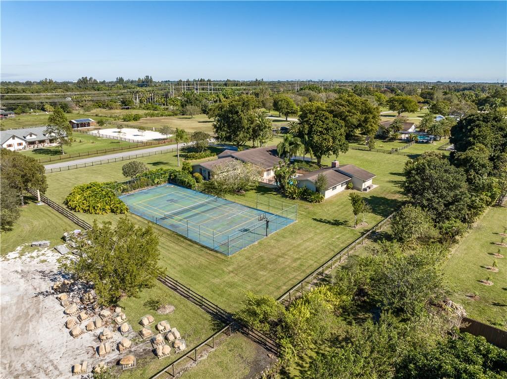 First time on market in Rolling Oaks! 4BR/3.5BA home (incl. guest house) spans 2.33 acres and is an absolute gem. True Southwest Ranches splendor with inviting long drive, fruit trees (avocado, banana, fig, macadamia, seedless mulberry, mango). Interior is traditional ranch-style home featuring wood-beam ceilings, vinyl and tile flooring, wet bar, open kitchen with Thermador appliances, in-wall central vac. Fully gated and fenced, the home is meant for entertaining family and friends and boasts pool, tennis, basketball, and a 1BR/1BA guest house. It fully embraces the outdoor lifestyle with built-in brick grill kitchen, perfect for all celebrations. 2-car garage with Tesla charging station complete the offering. A wonderful family home. Easy to show. Show and sell!
