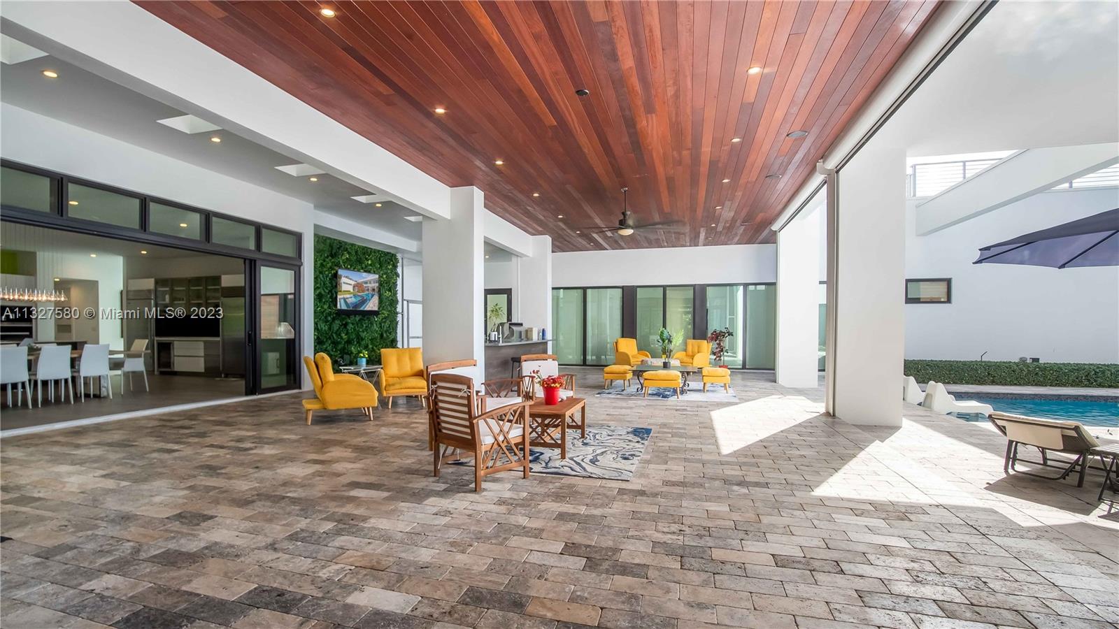 Entertainers delight with nothing left to be desired. Acre of private lakefront property, fully fenced with a heated salt pool, raised spa, and beach entry. Outdoor summer kitchen w/ marble patio w/ electric screens. Lavish in your private 1st-floor owner's suite complete with exercise room/yoga studio, office, and luxurious bath w/ vessel tub, oversized shower, and windows on the water. All additional bedrooms are ensuite, boasting designer materials. Separate guest house with 2 bedrooms, living room, kitchen, laundry, and a 2-car garage. Get ready to entertain! Additional game room/loft on the second level and access to rooftop terraces. European kitchen w/ the finest of amenities. Onyx wall, dual fireplace, full-impact protection, Savant smart home, exterior lighting, and modern design.