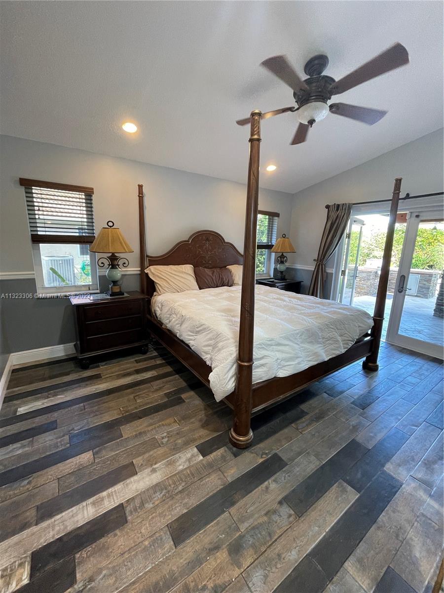 Great price for this gorgeous 4 bedroom, 3 bath pool home with 2 car garage. Triple slit floor plan in highly desirable Forest Ridge Community. Master bedrooms with built in office. En suite with glass enclosed steam shower, double sinks, granite counter tops, private water closet. Second master, totally private with bathroom separated by beautiful barn door. All bedrooms have built in closets. Revo camera and monitoring system throughout inside and outside of the house. Plantation shutters in 3 bedrooms. Granite countertops throughout the house. Tile and wood floors throughout the house. Great family neighborhood and school district. Community pool, tennis court and basketball court with walking trails. Convenient near shopping and major highways