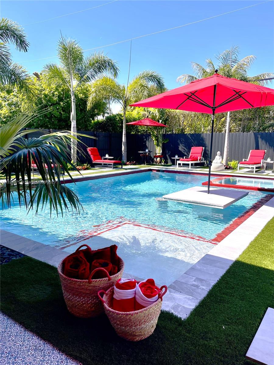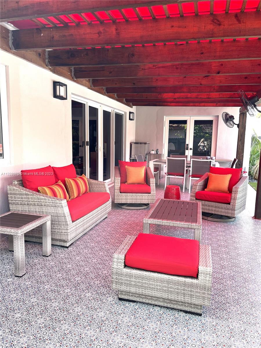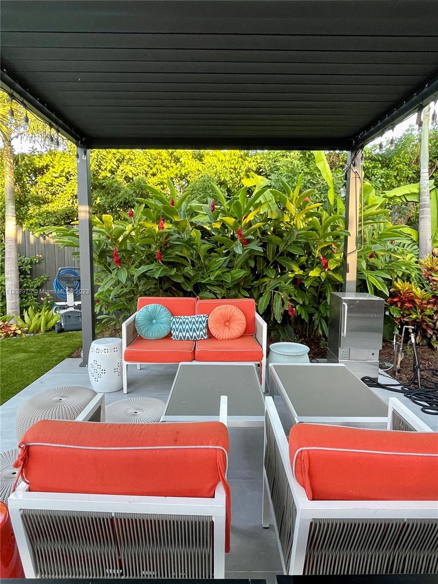 This magnificent smart home features a delightful Grand Room integrated floorplan, which includes a living room, a dining room, a family room, and a custom-built kitchen with an island, bar, and custom-designed appliances, all nestled between the three bedrooms and the beautifully manicured front and back yards. The Grand Room and Master Bedroom open up to a lovely outdoor terrace that leads to the pool area and outdoor lounge in the backyard. Both front and backyards are directly interconnected by side landscaped private green alleyways. This entire smart home is controlled by safe digital door locks, centralized lighting & AC systems, and impact windows for your protection. THE HOME HAS PLANS FOR A SECOND FLOOR!