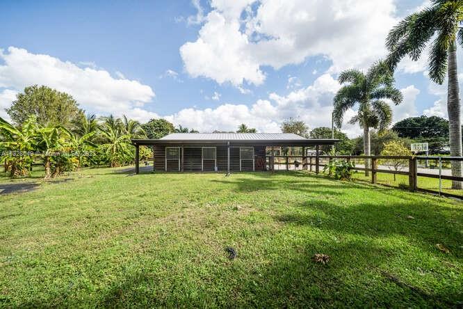 CASH ONLY. Lots of potential.This 5 bedroom 2 1/2 bath home sits on over an acre in a desirable Davie neighborhood, with fruit trees,pool,3 stall horse barn with rubber mats and a finished room with a/c and solar,private gates, on a cul de sac street with country charm but close to all amenities.The main house has a new 1/2 bath,kitchen and family room with view of pool, 2 fireplaces,2 newer a/c units with "I wave" on one,all impact glass windows and doors,solar water heater,L shaped porch with view of yard and access to the pool. Per seller,the unfinished structure has passed all city inspections,one column on porch may not be structural sound buyers responsibility to verify. Open permits may or may not exist, Buyer to close with Gregory B Taylor Title and sign "hold harmless" addendum.