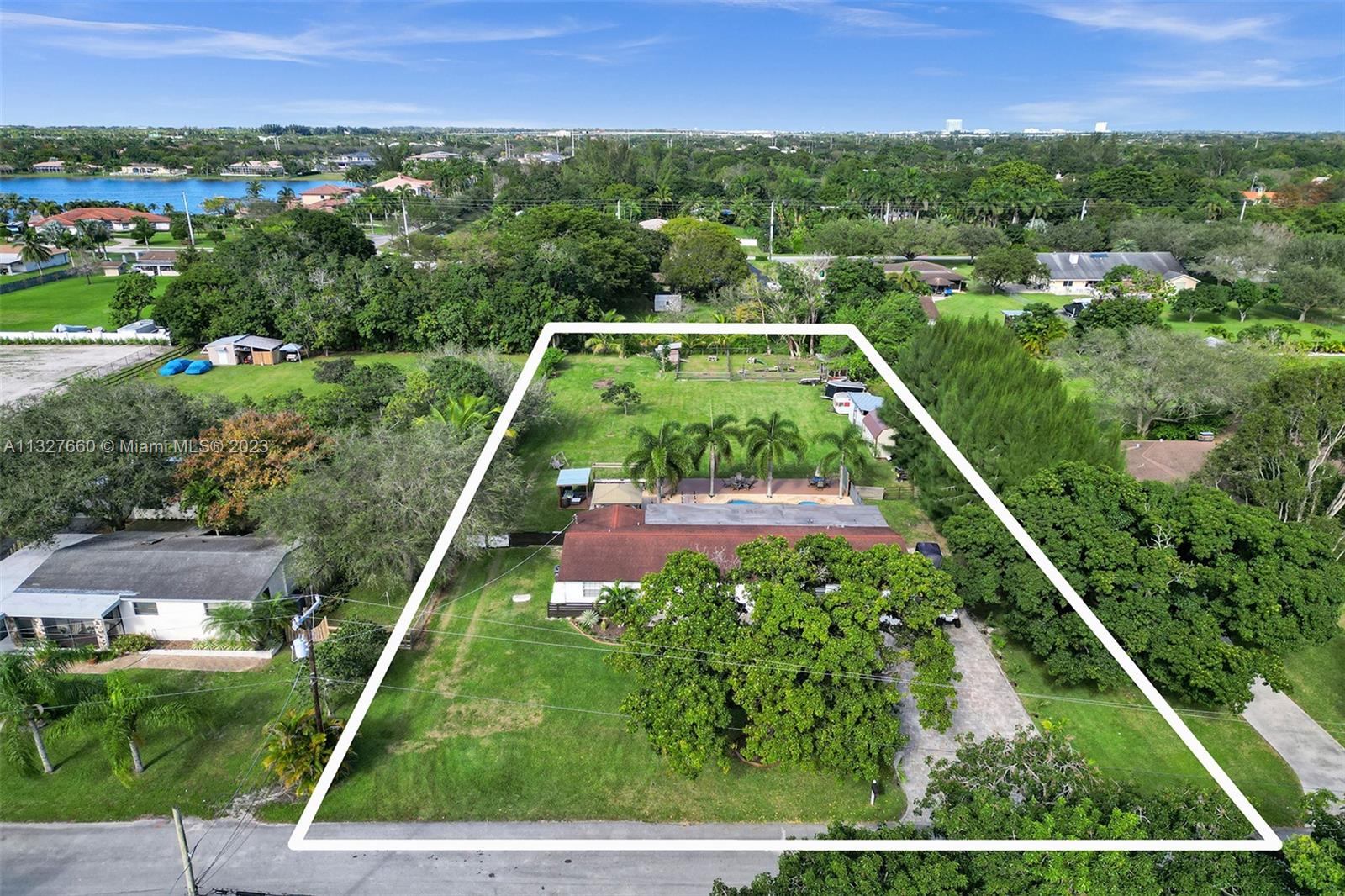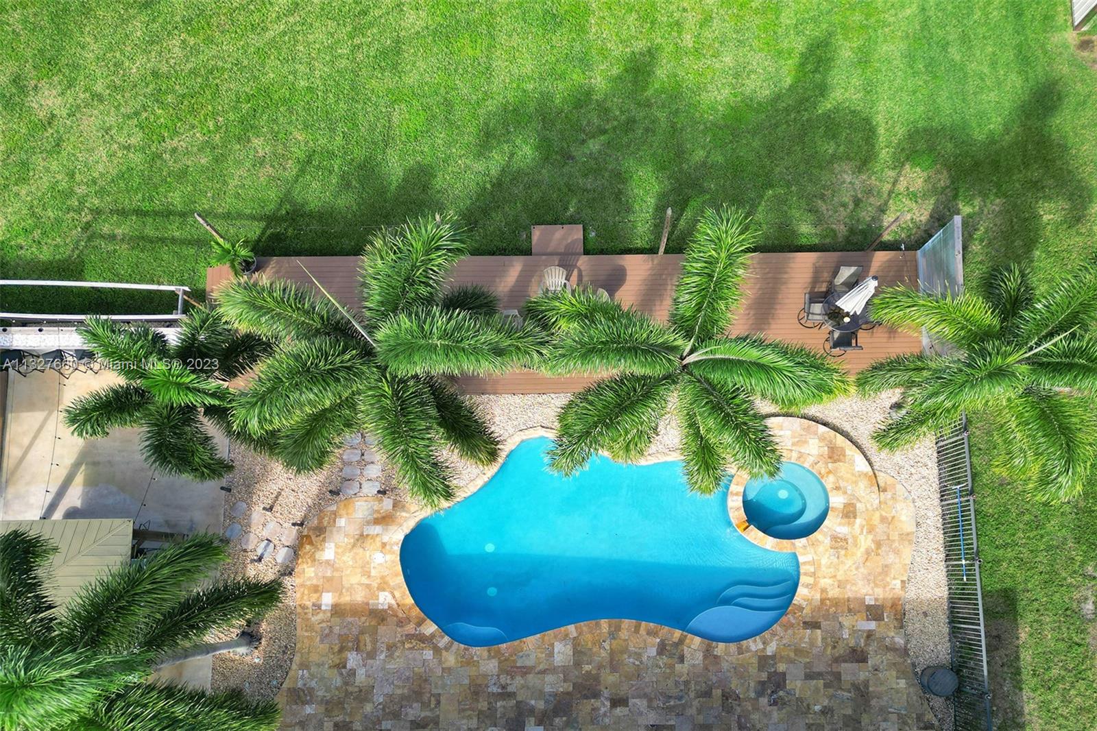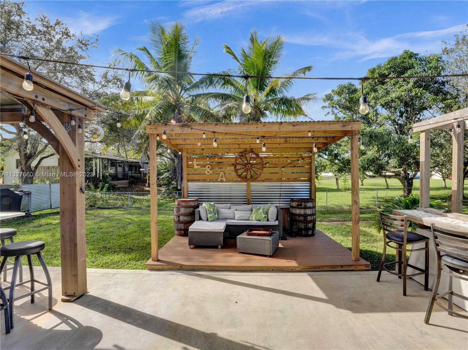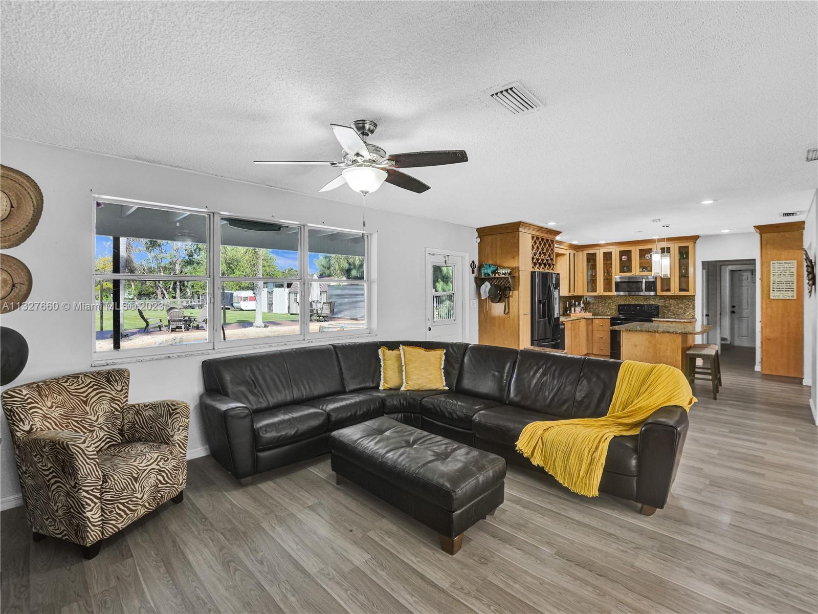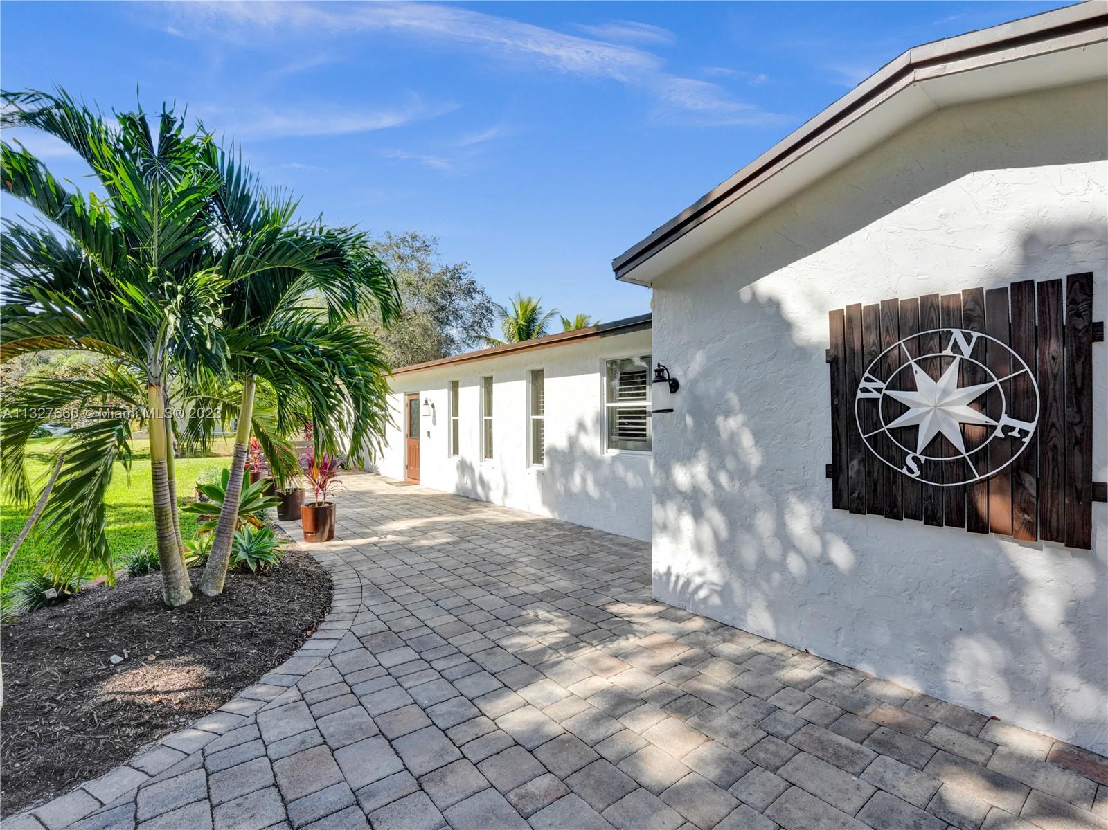 This Tastefully upgraded open floor plan suits most Buyers needs from inside and out. There are 2 Primary bedrooms and one is perfect as a Mother-in-Law suite that has a private side entrance. The backyard is your own serene oasis which features a free form Saltwater pool with chlorinator outlined with travertine marble pavers, a large deck leading to the Free-Standing Bar area and platform for entertainment. New flooring 2022. Situated on over 38,000sf with 2 barns in back which was previously used for Jumping goats. NO HOA & Plenty of storage area with 2 large sheds and ample room on the side to store all your toys (RV, Jet skis, Golfcart, Boat, etc). Ideal for any large gathering with open green space and covered patio. Minutes to Sawgrass Mills Outlet mall & All Major highways.