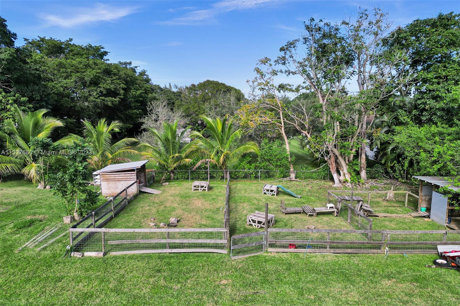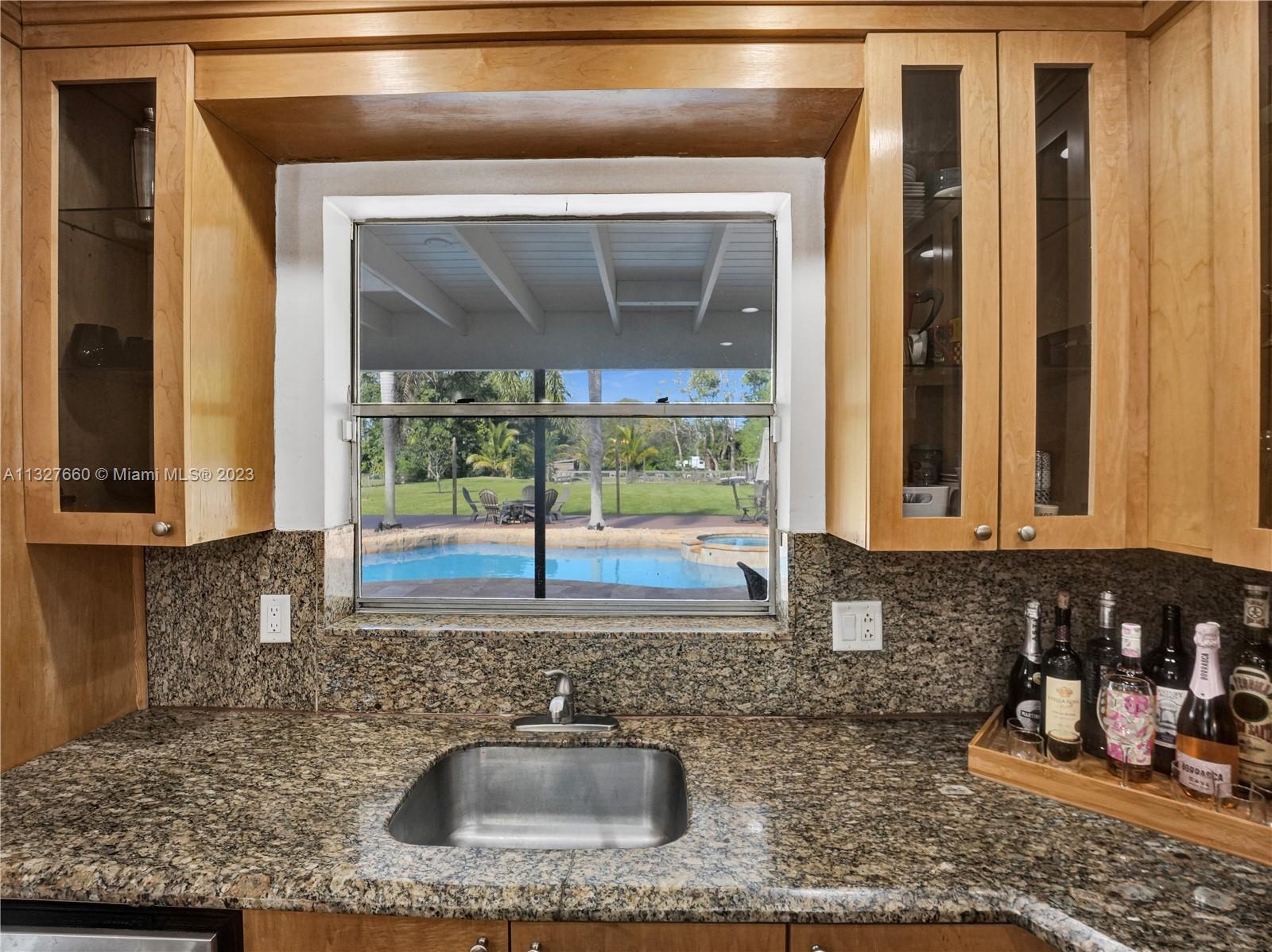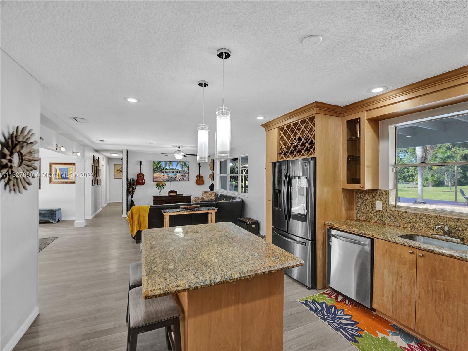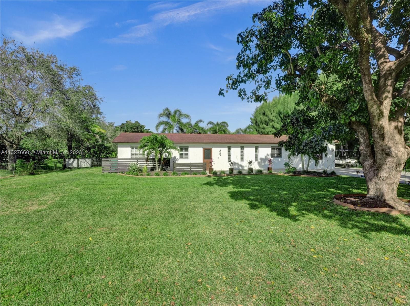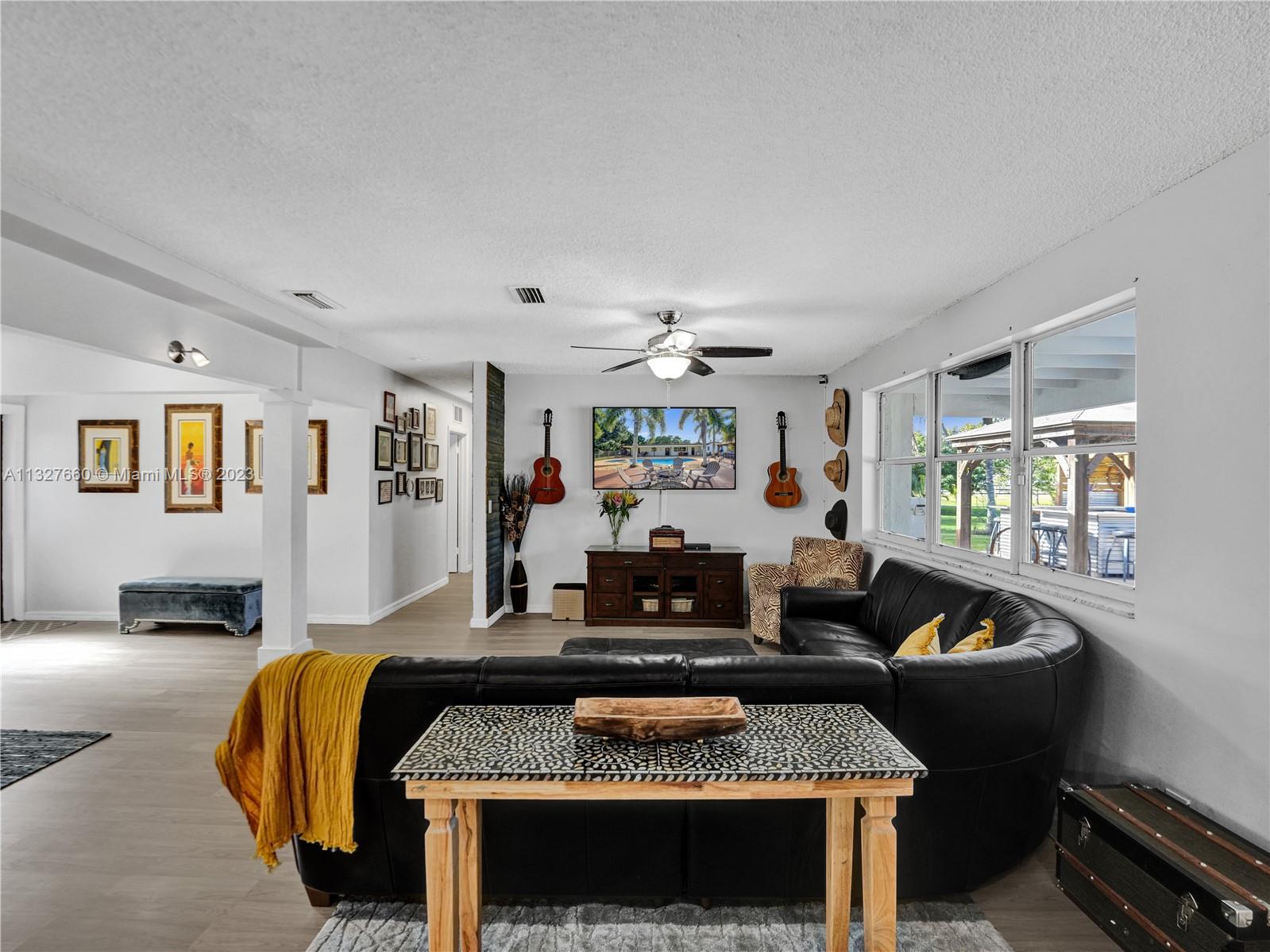 This Tastefully upgraded open floor plan suits most Buyers needs from inside and out. There are 2 Primary bedrooms and one is perfect as a Mother-in-Law suite that has a private side entrance. The backyard is your own serene oasis which features a free form Saltwater pool with chlorinator outlined with travertine marble pavers, a large deck leading to the Free-Standing Bar area and platform for entertainment. New flooring 2022. Situated on over 38,000sf with 2 barns in back which was previously used for Jumping goats. NO HOA & Plenty of storage area with 2 large sheds and ample room on the side to store all your toys (RV, Jet skis, Golfcart, Boat, etc). Ideal for any large gathering with open green space and covered patio. Minutes to Sawgrass Mills Outlet mall & All Major highways.
