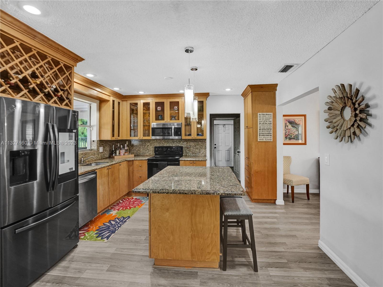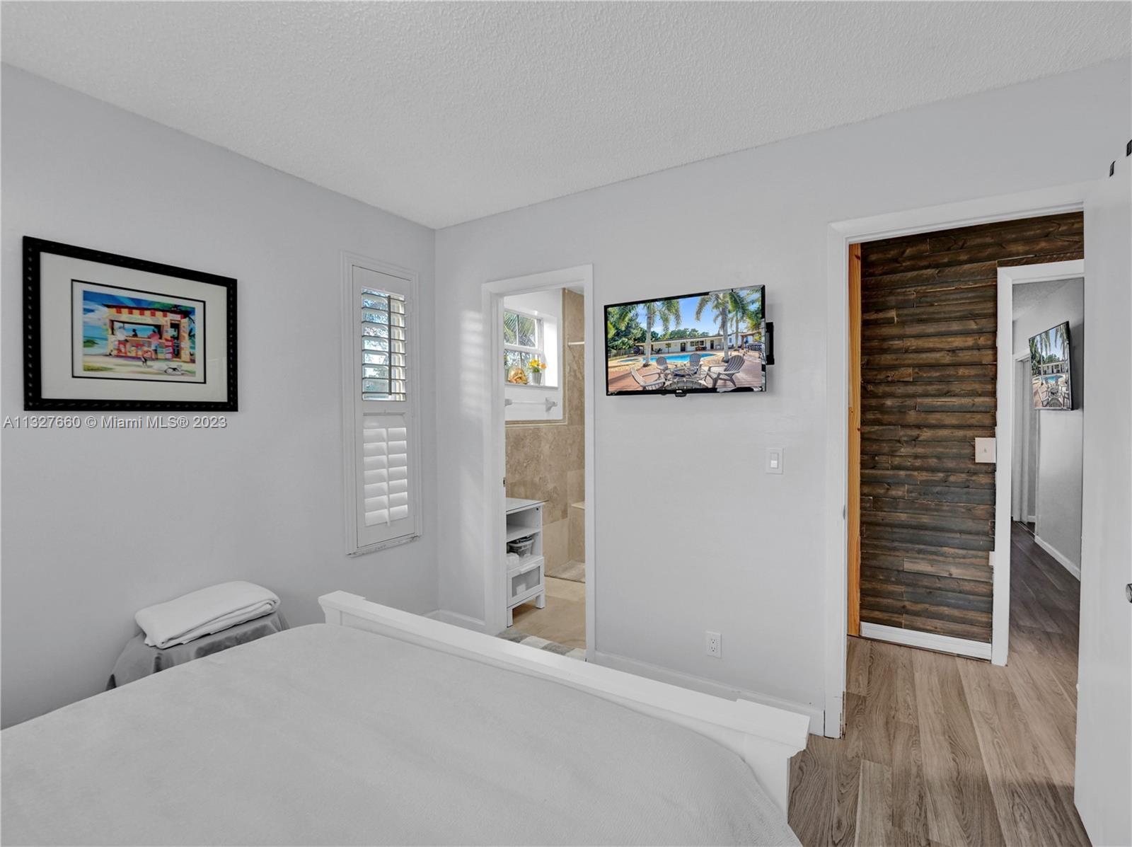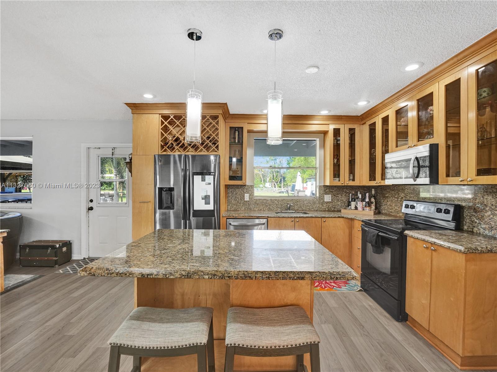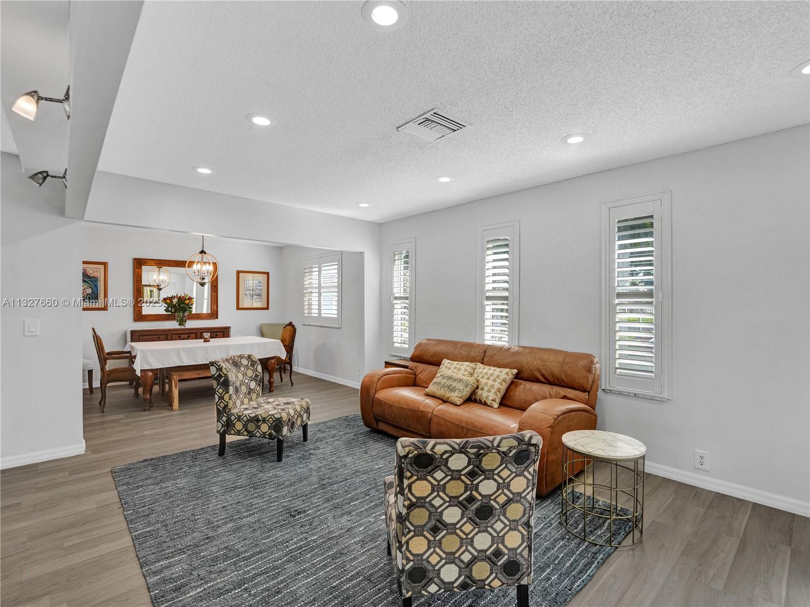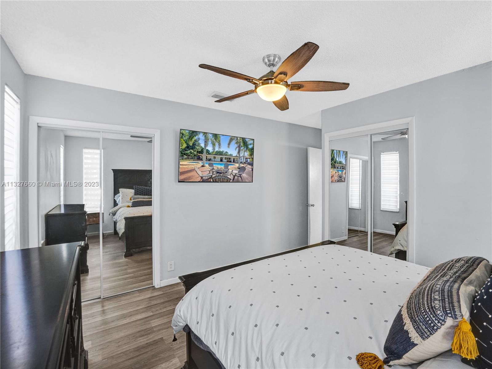 This Tastefully upgraded open floor plan suits most Buyers needs from inside and out. There are 2 Primary bedrooms and one is perfect as a Mother-in-Law suite that has a private side entrance. The backyard is your own serene oasis which features a free form Saltwater pool with chlorinator outlined with travertine marble pavers, a large deck leading to the Free-Standing Bar area and platform for entertainment. New flooring 2022. Situated on over 38,000sf with 2 barns in back which was previously used for Jumping goats. NO HOA & Plenty of storage area with 2 large sheds and ample room on the side to store all your toys (RV, Jet skis, Golfcart, Boat, etc). Ideal for any large gathering with open green space and covered patio. Minutes to Sawgrass Mills Outlet mall & All Major highways.