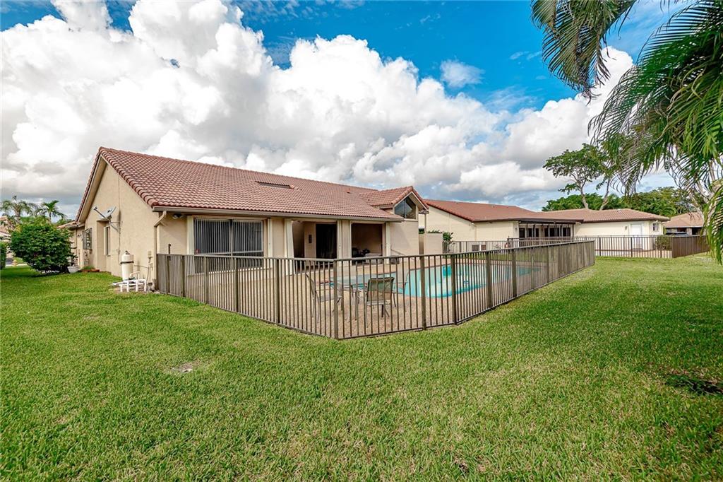 BEAUTIFUL HOME WITH 4 BEDROOMS, 2 1/2 BATHROOMS, 2 CAR GARAGE WITH OVER 3,000+ S.F. IN SIZE. FEATURES KITCHEN WITH GRANITE COUNTER TOPS, BACKSPLASH, STAINLESS STEEL APPLIANCES & PENDANT LIGHTS. STACKED BEDROOM FLOOR PLAN. VAULTED CEILING. HUGE 19X14 MASTER BEDROOM WITH SPACIOUS WALK IN CLOSET. OVERSIZED MASTER BATH WITH DOUBLE SINKS, SEPARATE TUB & SHOWER WITH WINDOWS FOR SUNLIGHT. CABANA DOOR. GRANITE COUNTERTOPS IN GUEST BATHROOM. HURRICANE ACCORDION SHUTTERS. BARREL TILE ROOF - 2006. A/C - 5 YEARS OLD. COVERED BACK PATIO TO RELAX OR BAR-B-QUE THAT LEADS TO 20K GALLON POOL & BACK YARD. PARTIAL WATER VIEW. CUL-D-SAC. DURBAN DESIGNER 7 LAYOUT. PARKS CLOSE BY. CLOSE TO MAJOR HIGHWAYS. 15- 2O MINUTES TO FORT LAUDRL INT'L AIRPORT & WHITE SAND BEACH. 15 MINUTES TO SAWGRASS MILLS MALL. NO HOA.