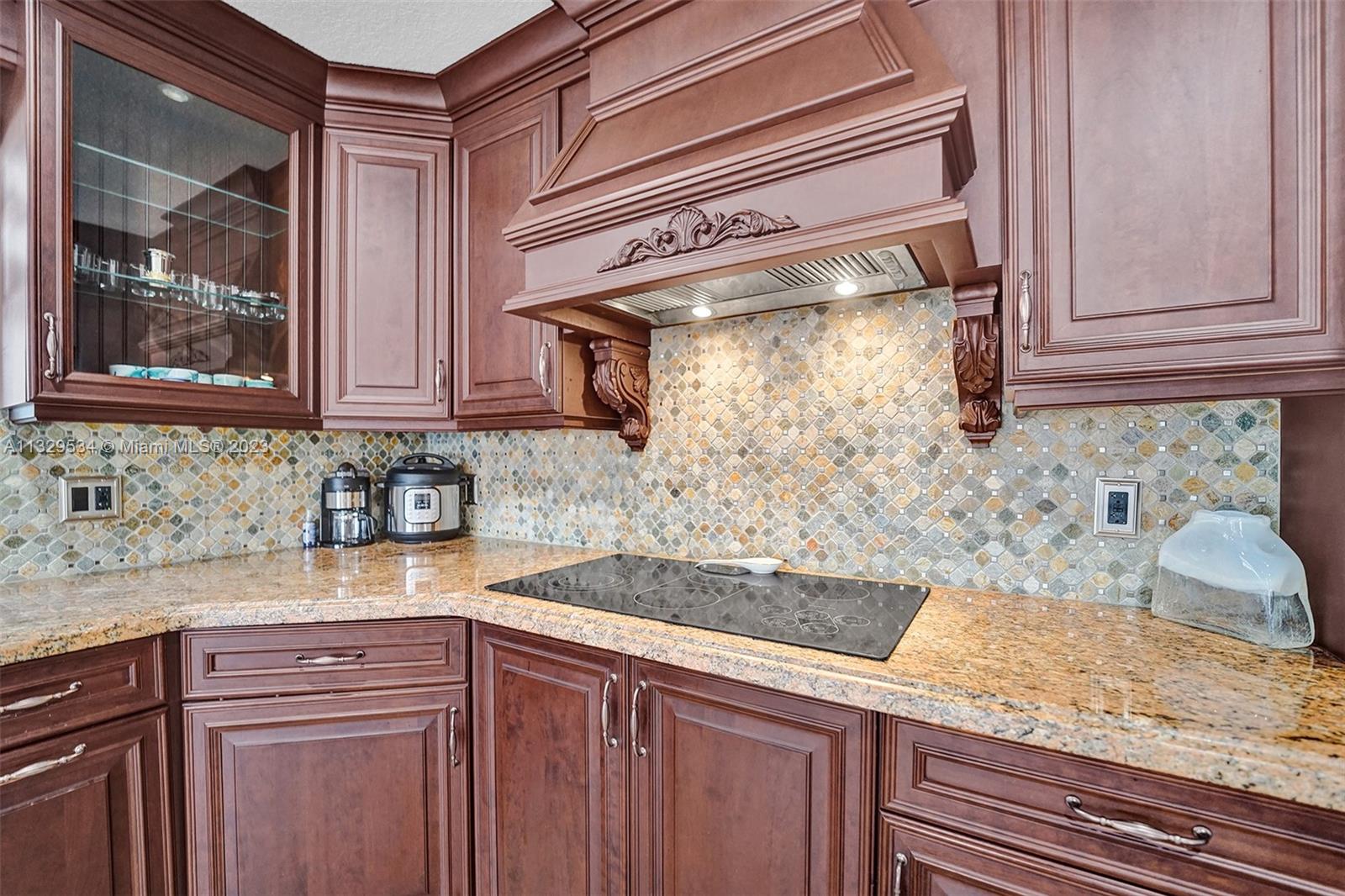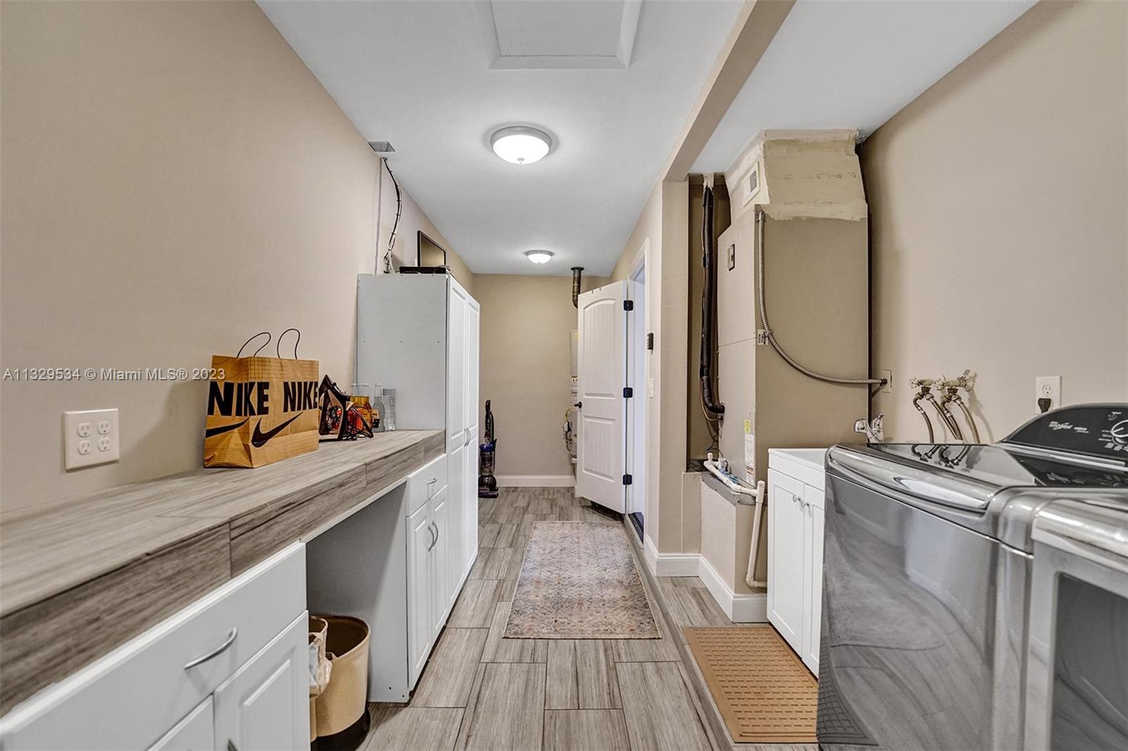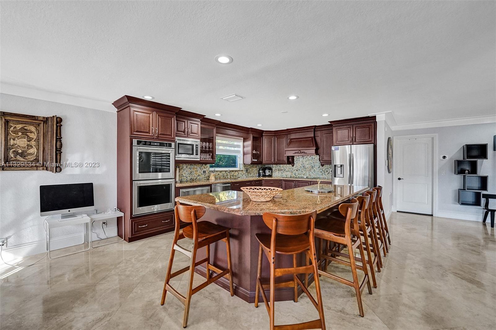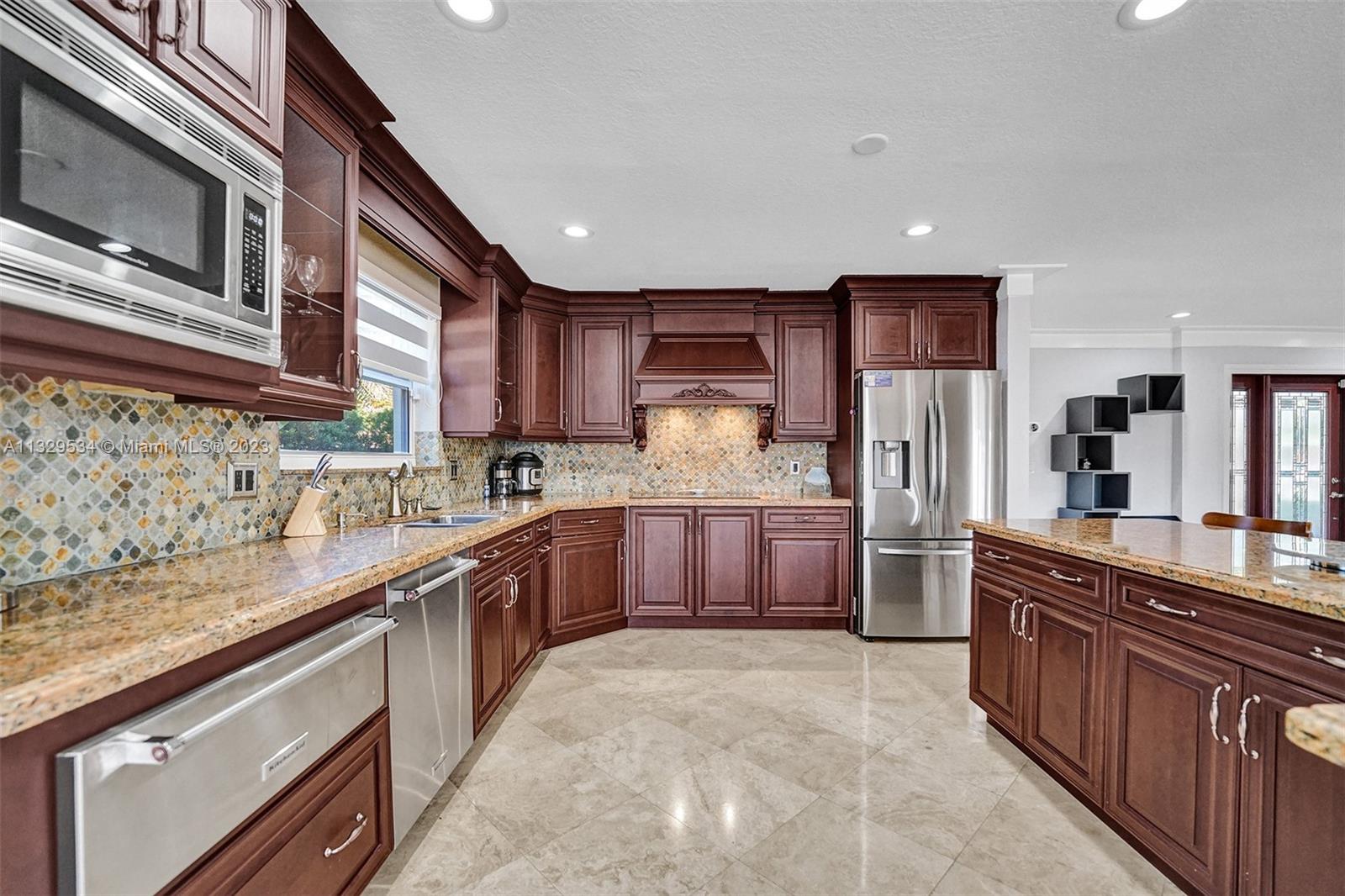Corner House, 2 car Garage, double lot. Designer house! White oak wall in LR, custom made Oak wood built in pantry in kitchen. Huge kitchen with island. Bathrooms has Italian custom built ins and tiles. House has solid wood doors. Custom made closet doors with wood built ins. Bedrooms, solid German sourced wood floors. All hurricane impacted and all windows have custom made blinds. Led lights through out the house. New appliances, extra fridge in garage. Warming draw, double oven. Amazing landscaped, fully fenced. Custom designed deep salt water heated pool with a nice deck. Huge lanai which is screened in. Gas yes, gas water heater. Generator hook up. Front circle drive way for all your cars and beautiful landscaping around the house. Patio in back is great for entertainment.